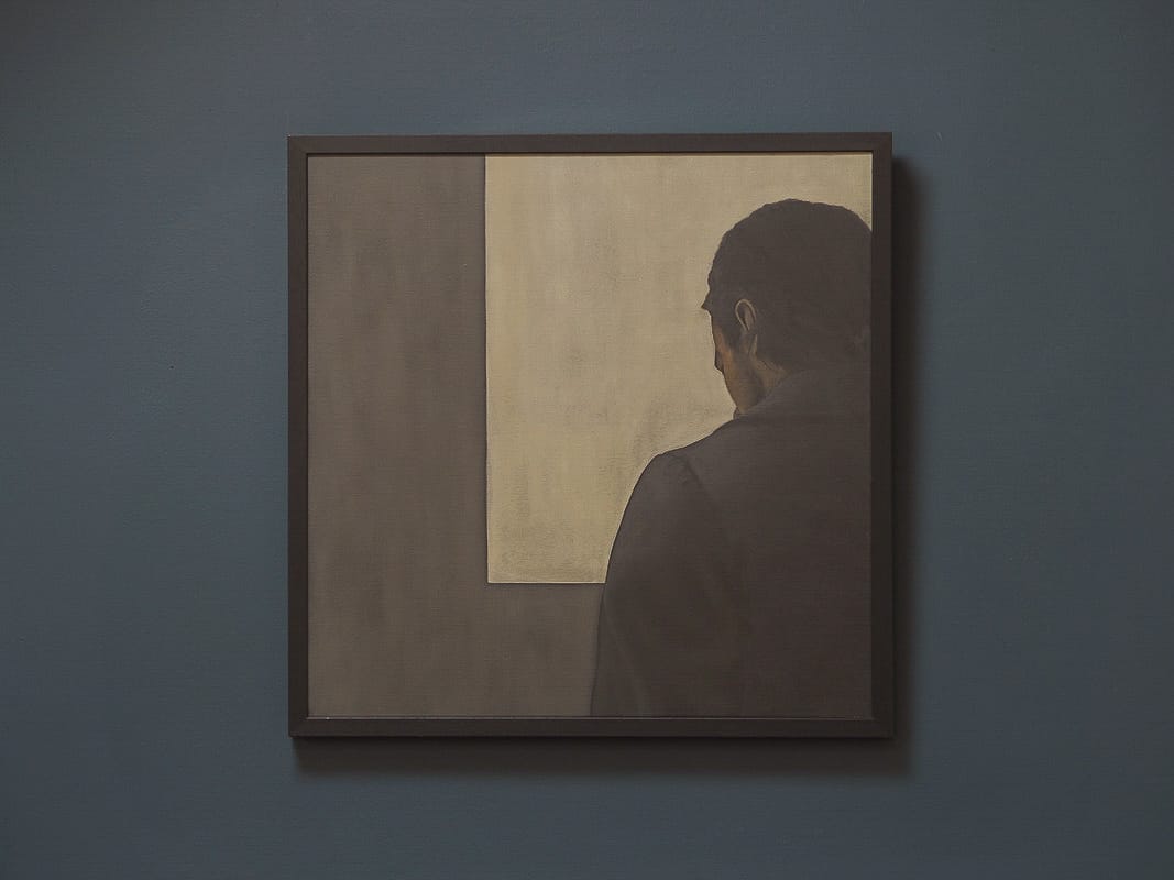• Oil on canvas portrait by Adam Pomeroy for Kilbaha Gallery contemporary Irish art original Irish art large piece framed fine detail brush strokes oil painting dark black canvas shadows