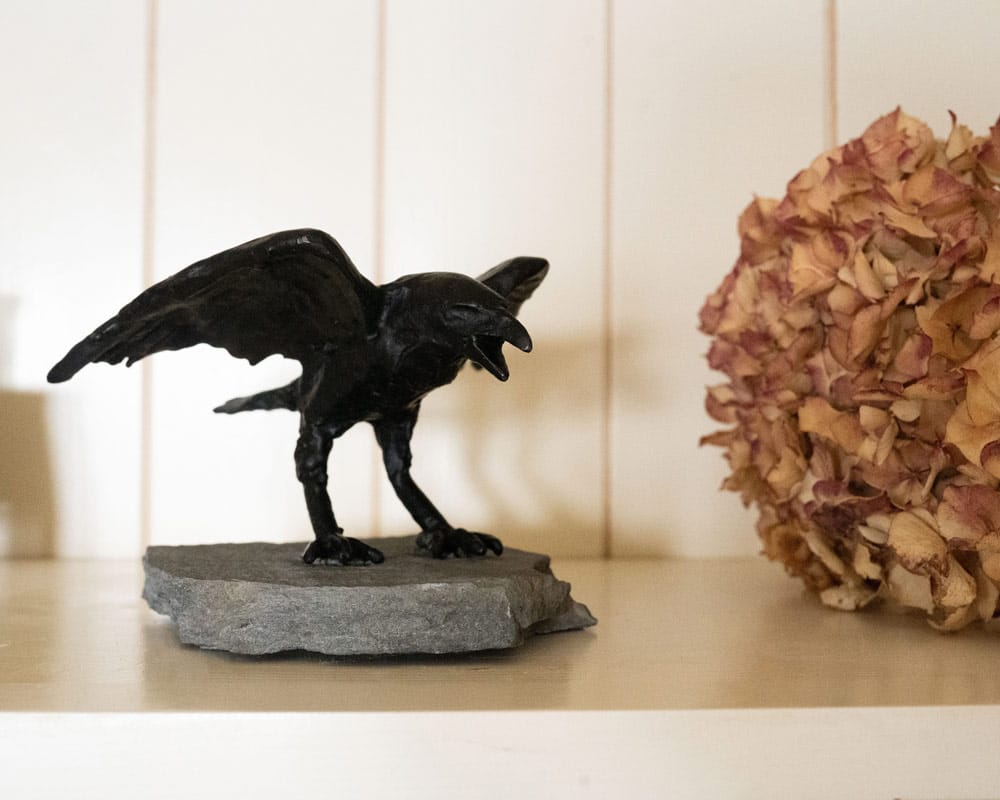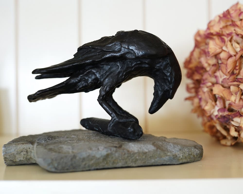 • Adam Pomeroy Bronze Raven Ireland Irish art original Irish art bronze editions beautiful sculpture bronze foundry Irish art original work sculptor Ireland Irish art statue gift exhibit interiors