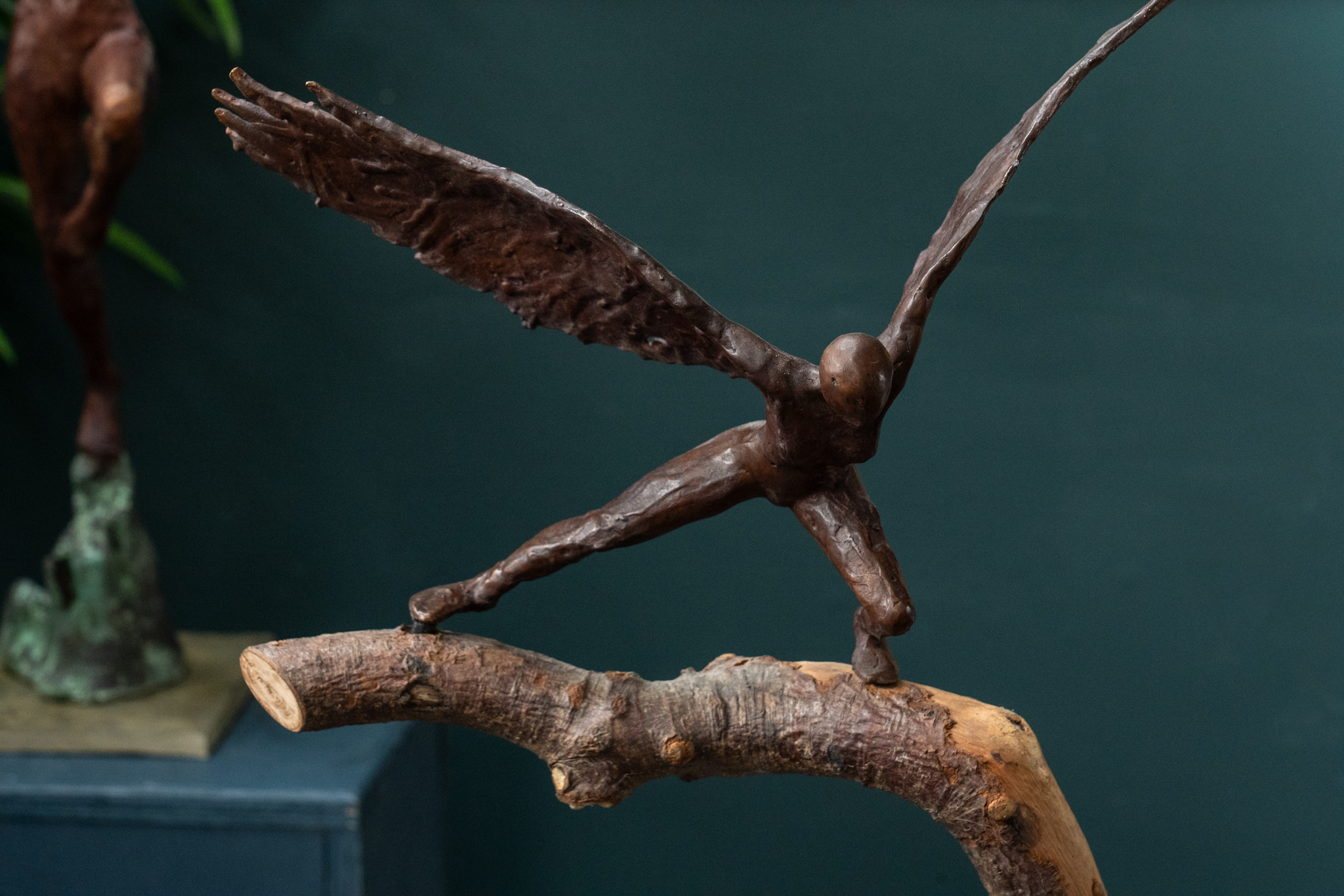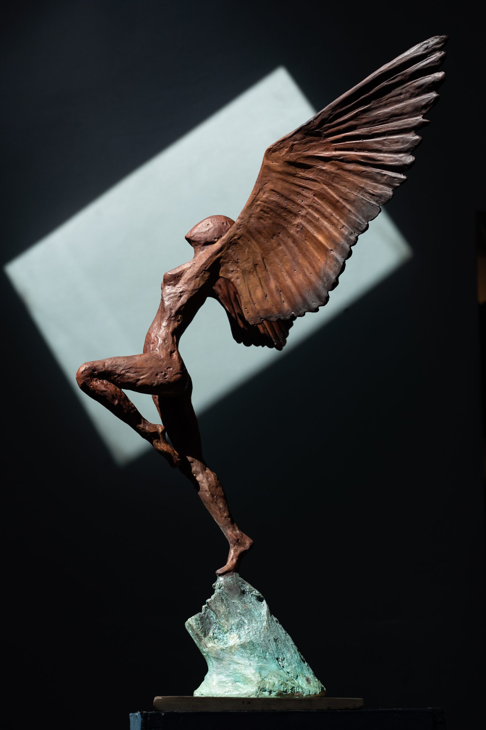 • Adam Pomeroy winged goddess bronze sculpture bronze statue contemporary sculptor Ireland Interiors Kilbaha Gallery Mythology Ireland wings wingspan empowering drama movement poise