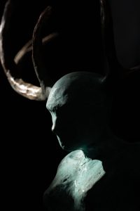 • Resistance II by Adam Pomeroy Bronze Sculpture green patina female figure with horns powerful empowering women strength Ireland Irish art Kilbaha Gallery