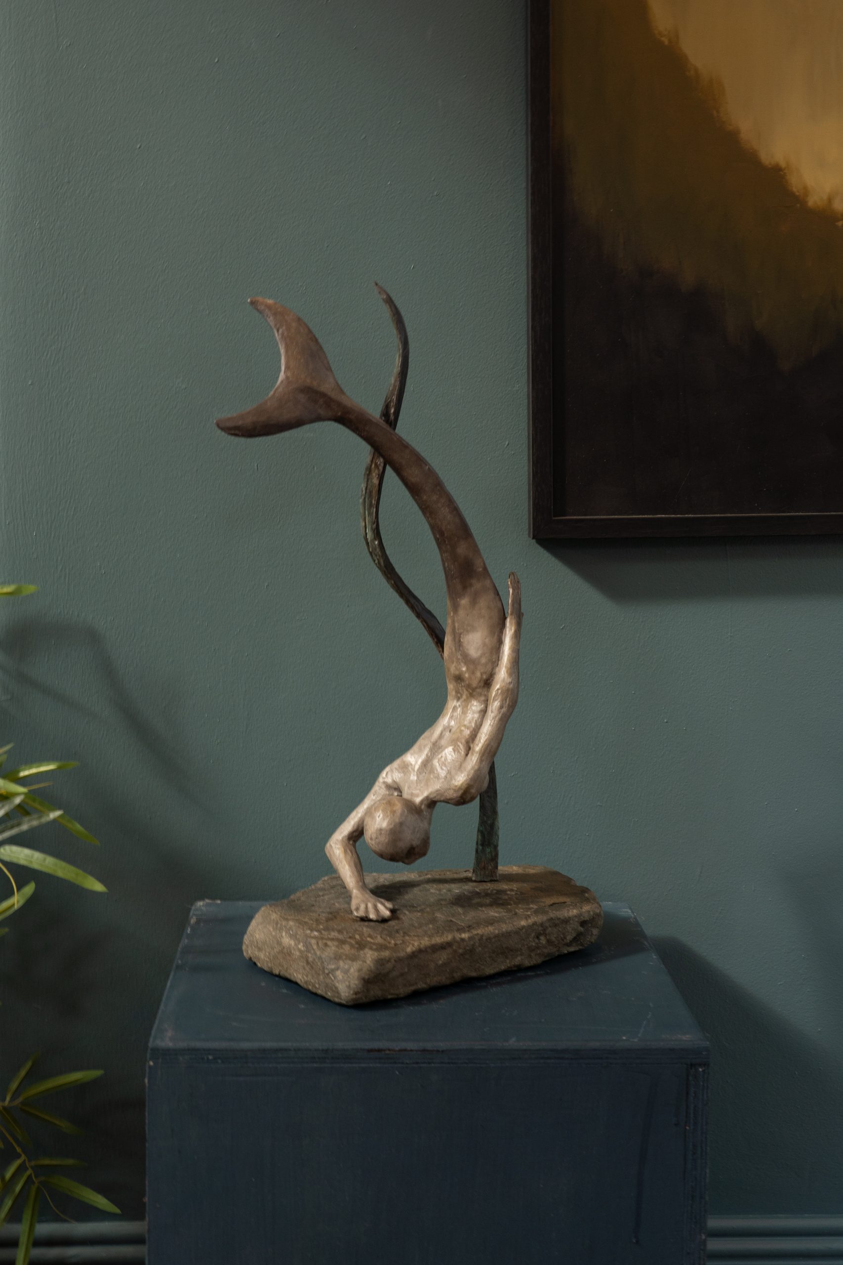 • Horned God by Adam Pomeroy Bronze Sculpture on Stone Base for Kilbaha Gallery Irish Art