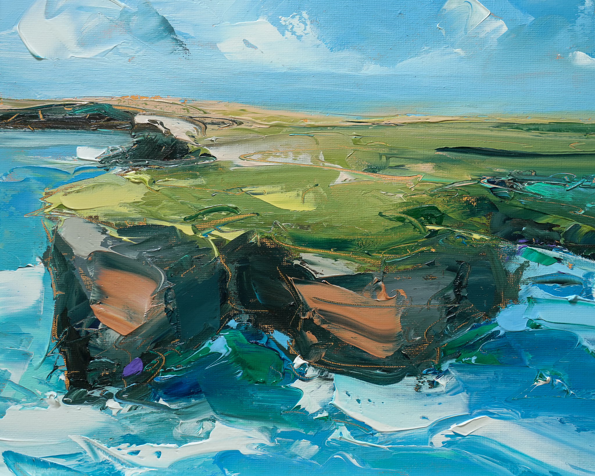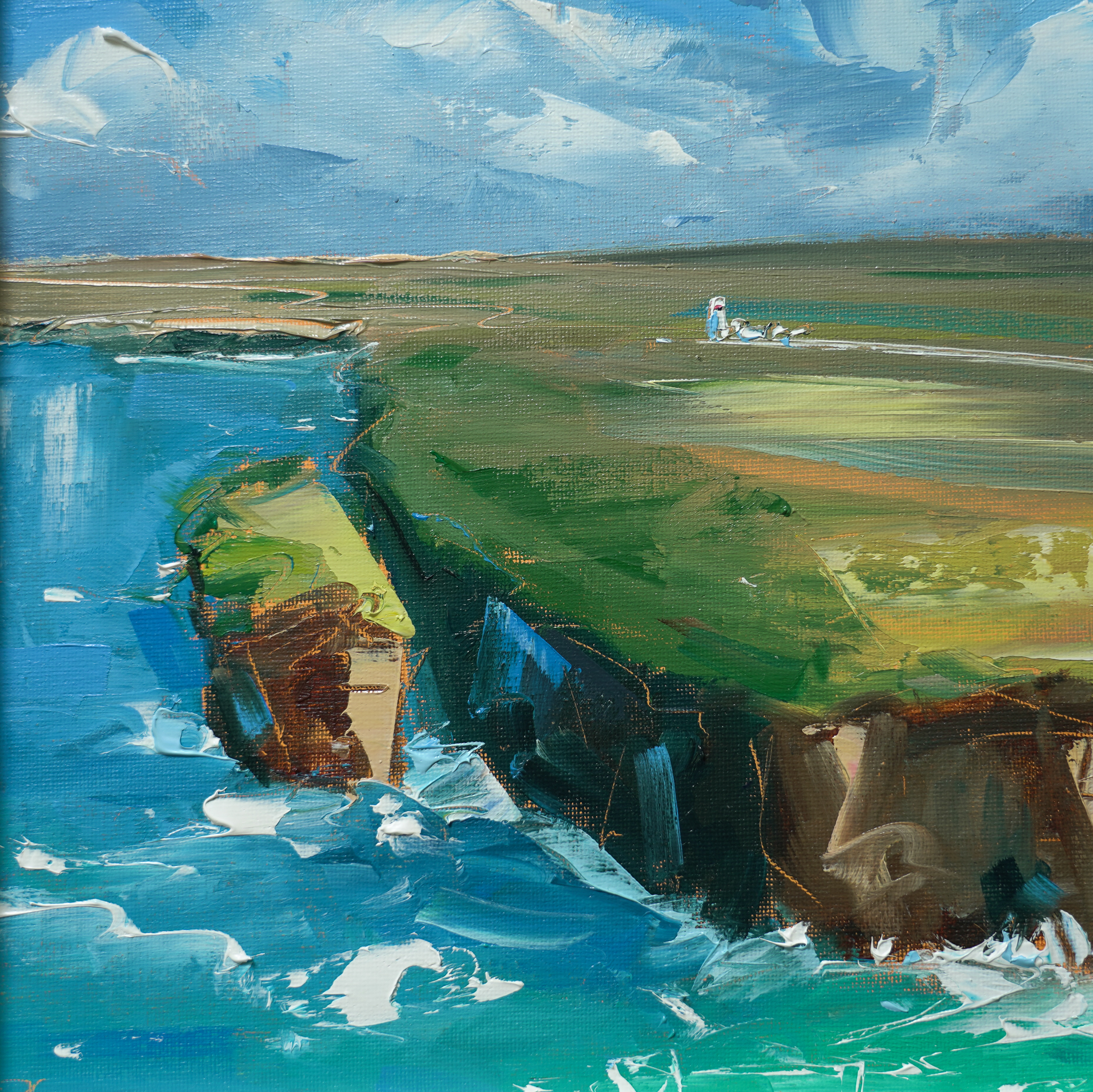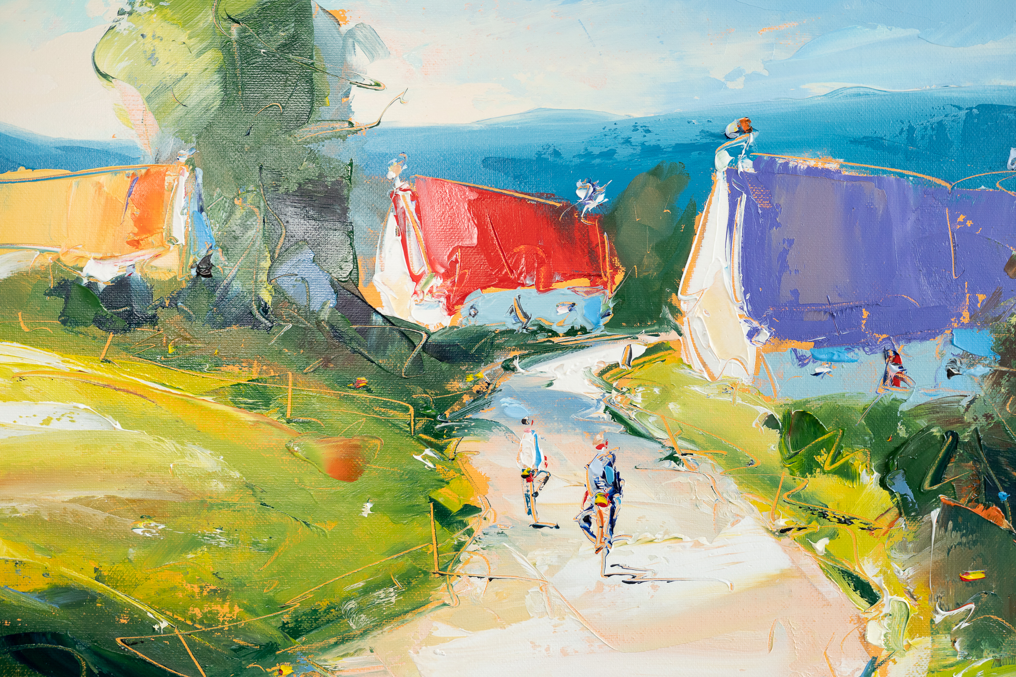 “My paintings are about movement and colour. I try to capture interesting scenes from around the country and accentuate the story through the use of strong vibrant colours. I like to compliment my palette choice with a deliberate and fluid application of paint with the knife in an attempt to capture the viewers eye. I will often experiment with colour on the canvas until arriving at a desired effect.”