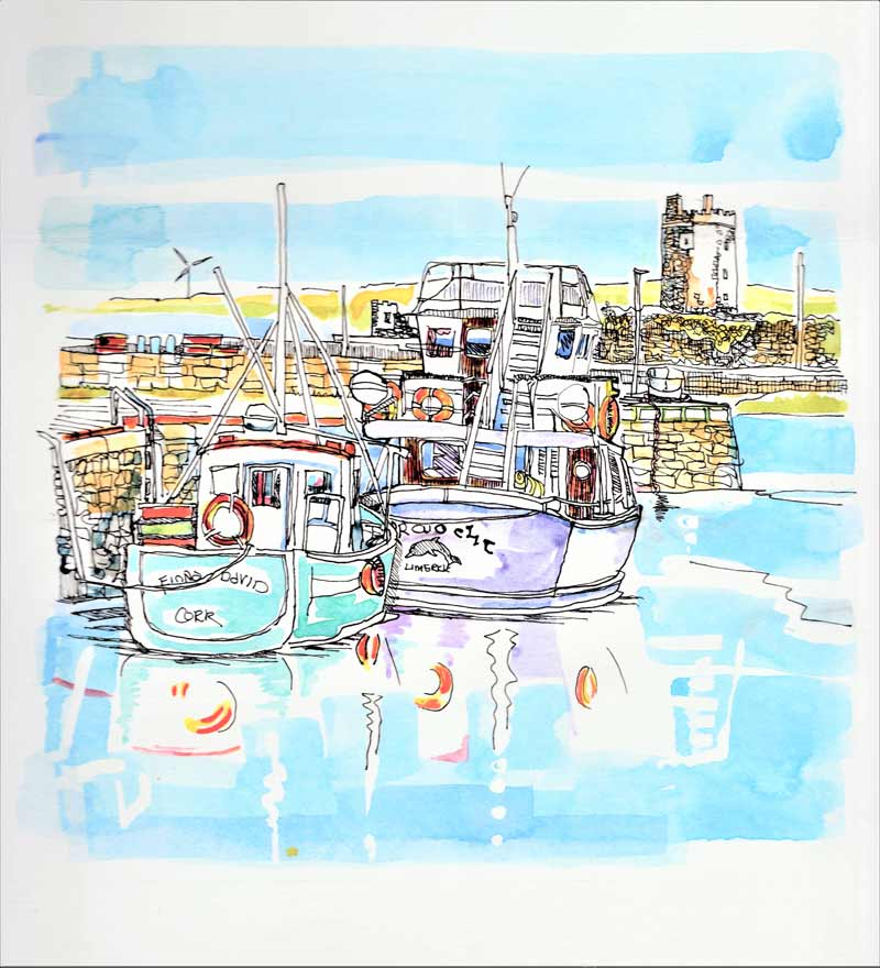 Ruth has maintained a loyal clientele for her original artworks and has become very well known indeed for her original pen & ink and watercolour paintings and her indeed her original acrylics – all of which represent the more traditional aspect of her artistic practice and her love of – and respect for – her surroundings in West Clare. .
