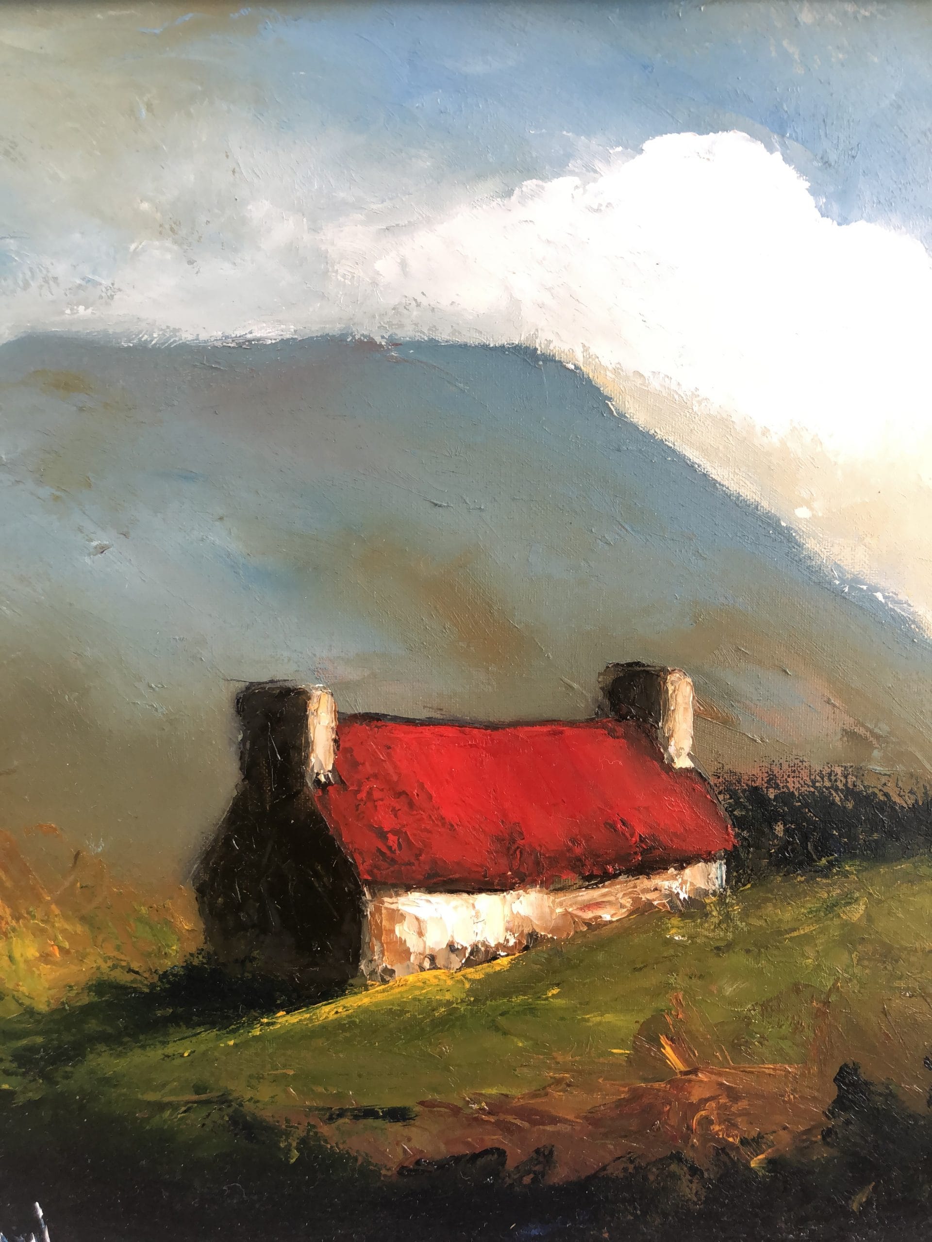 Internationally selling artist – highly collectable artwork – original art – Irish original art – Oil on Canvas – Achill Cottage – Padraig McCaul.