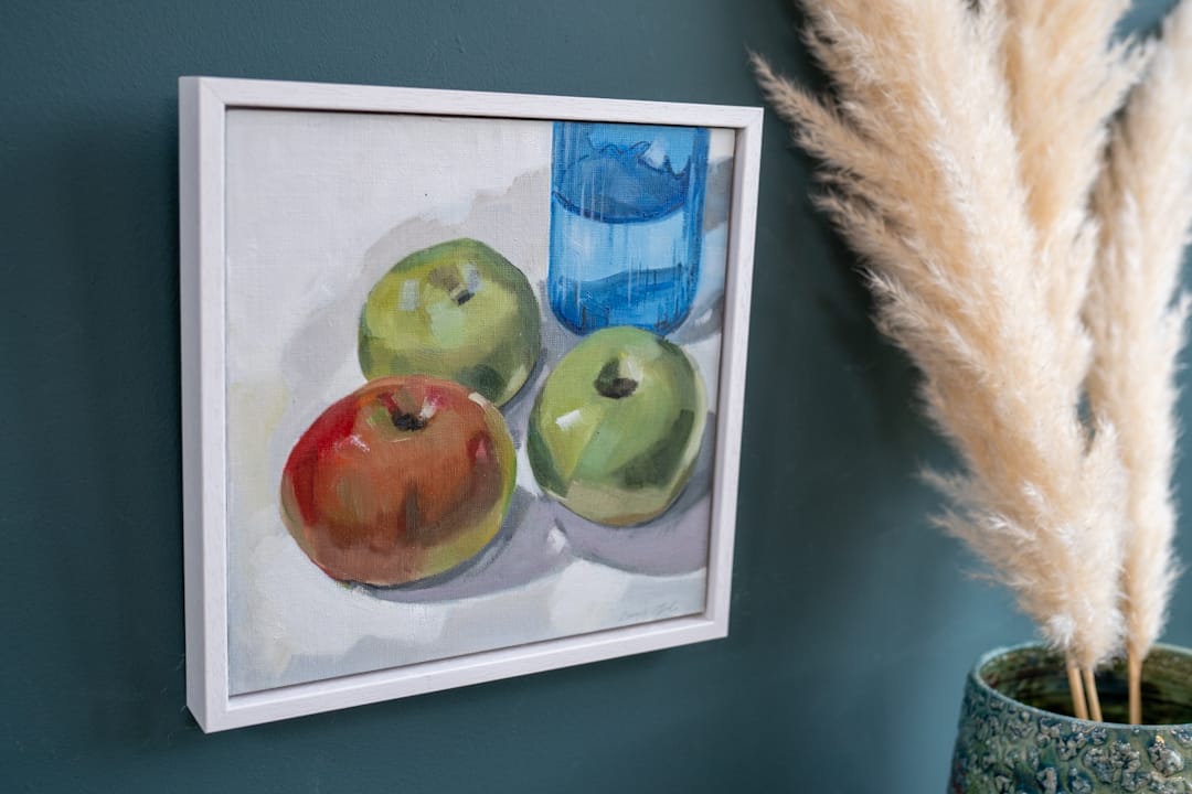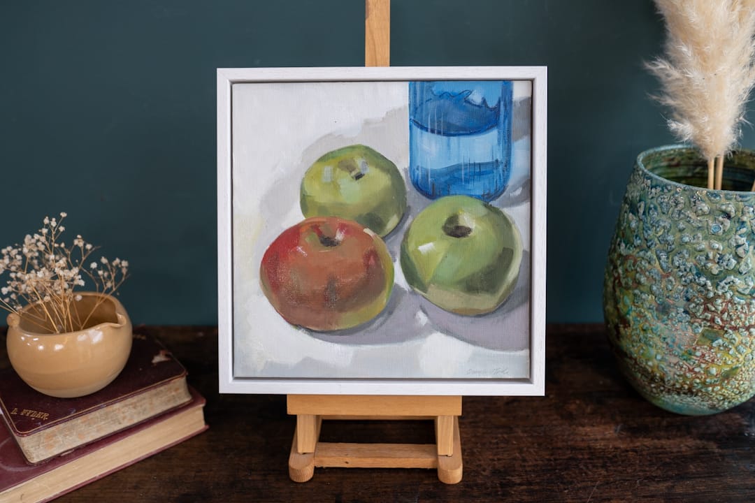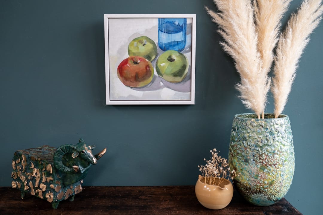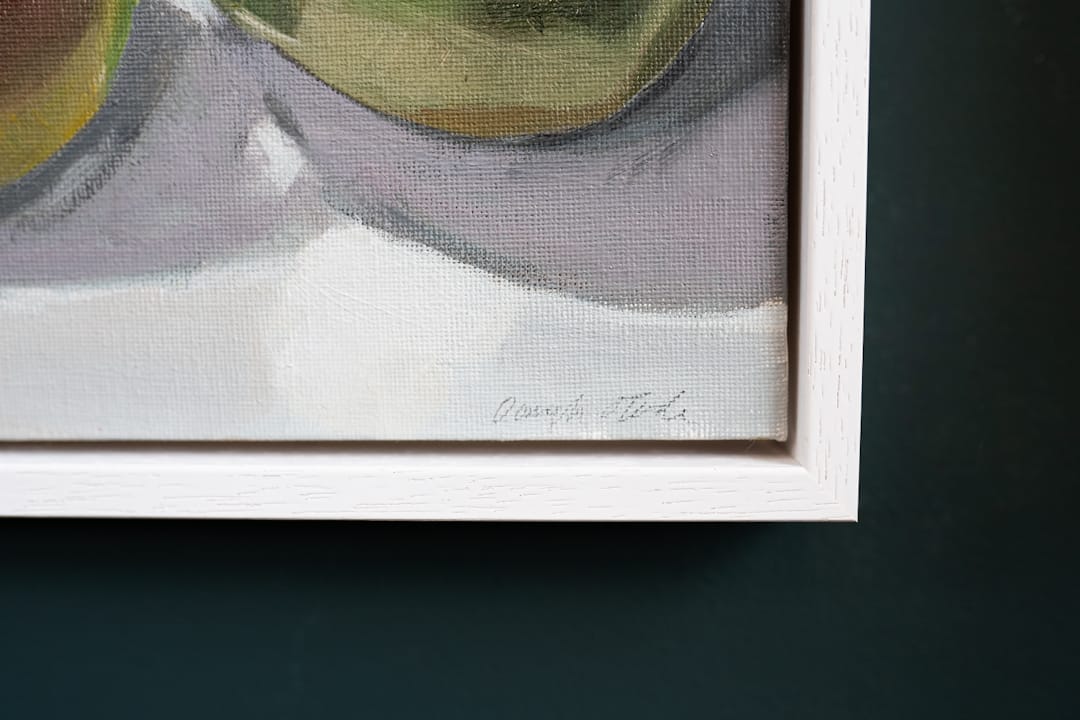 Another gorgeous still-life, original oil painting by the Dublin artist Oonagh O’ Toole. Achieving the most gorgeous light and shade and blocks of colour, Oonagh manages to bring the apples to life while the remain unmistakably a raw and original piece of art.