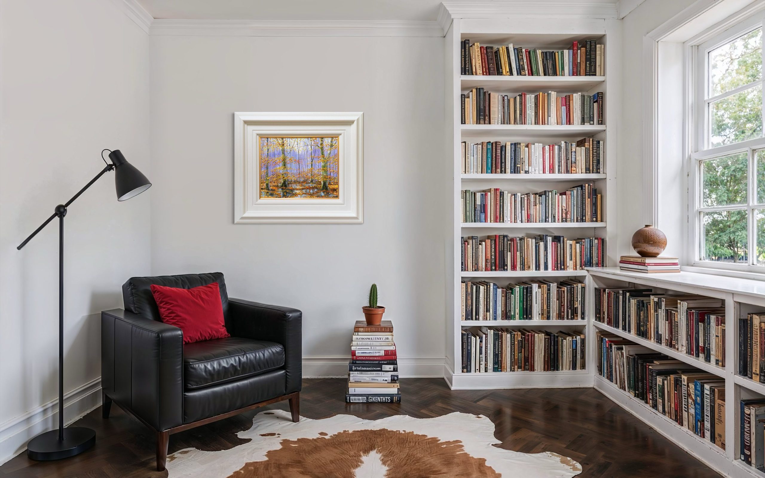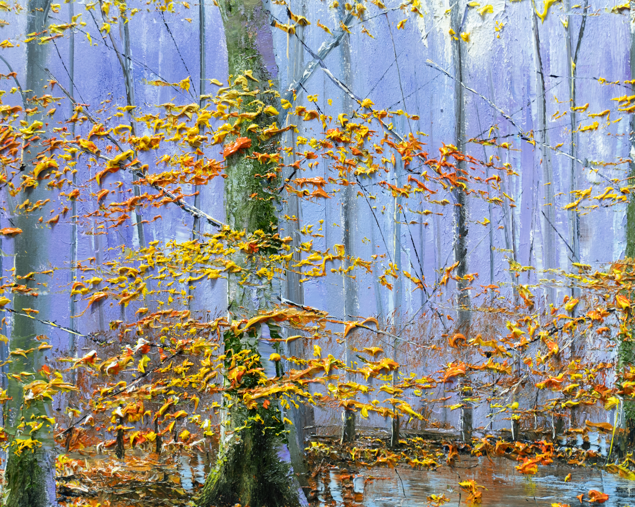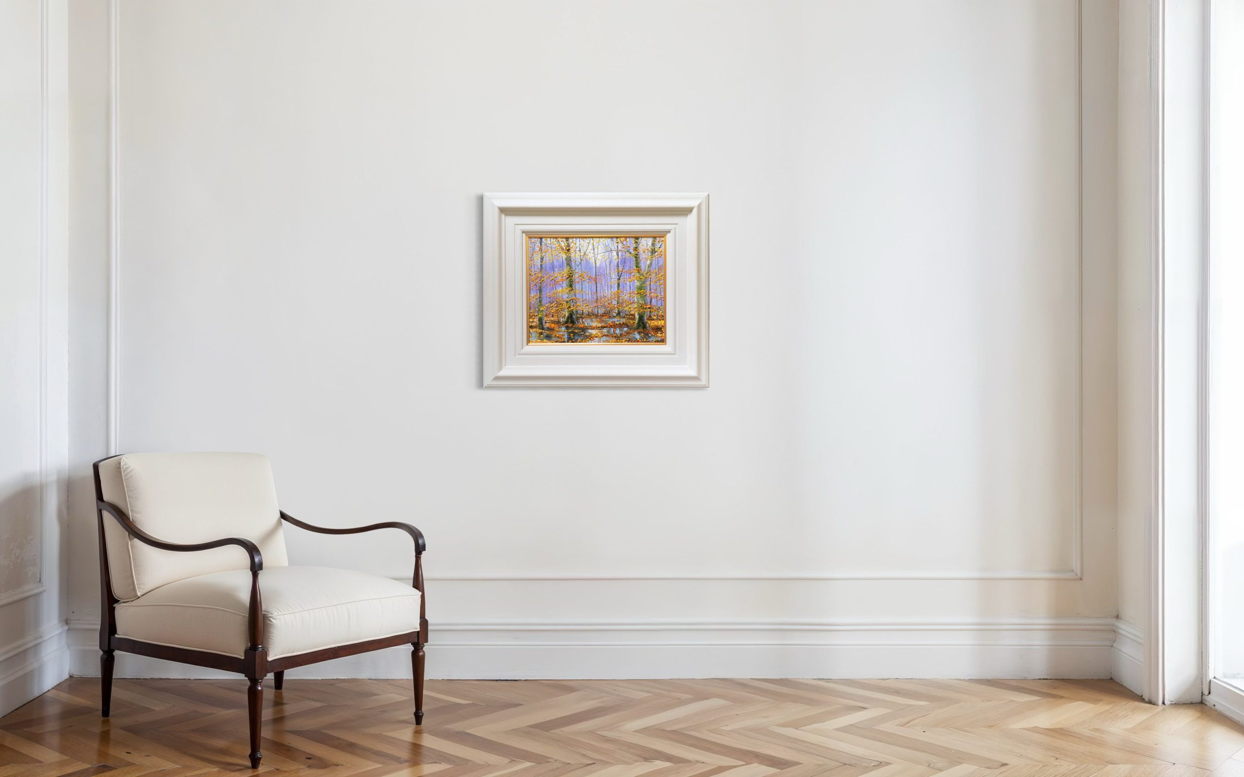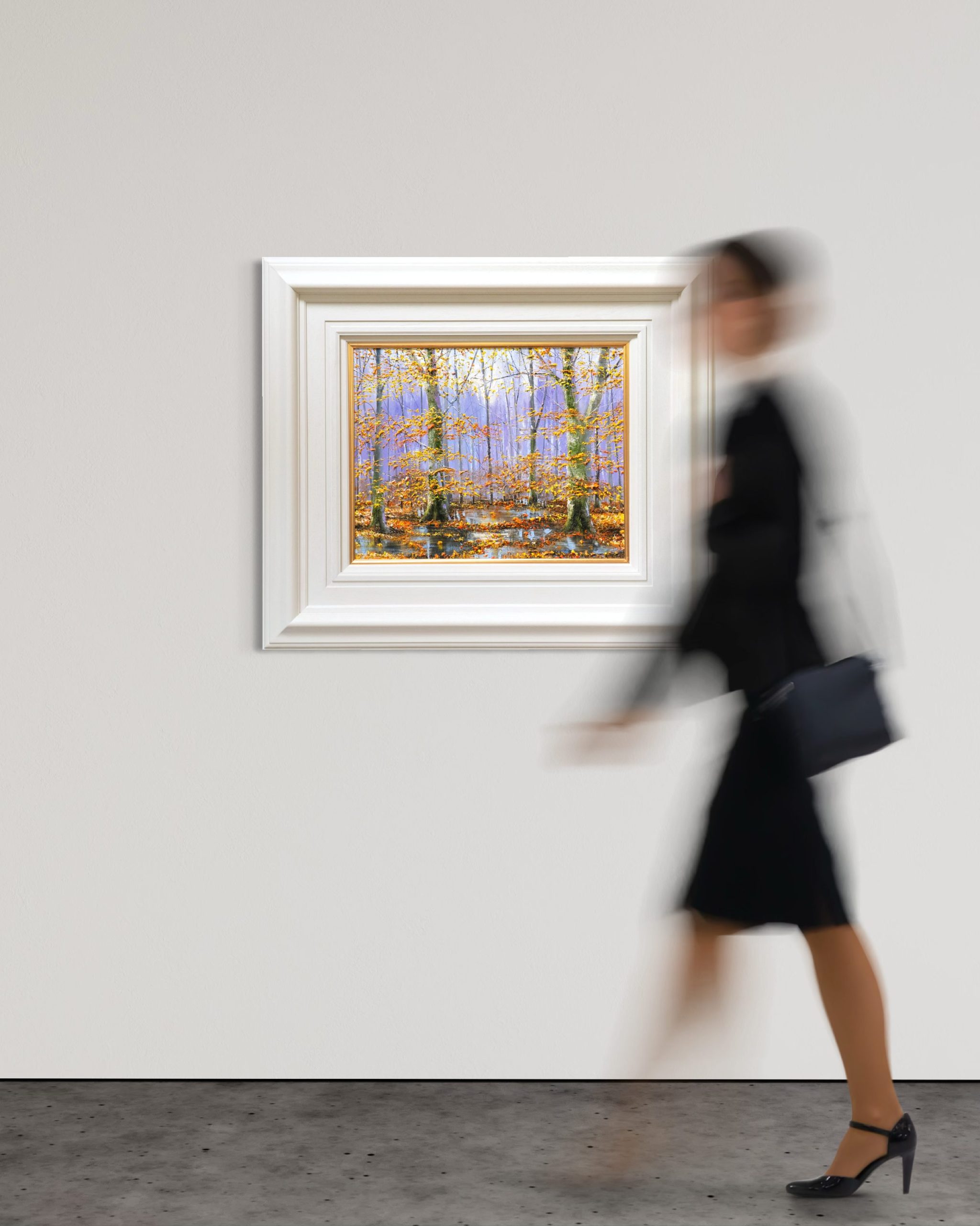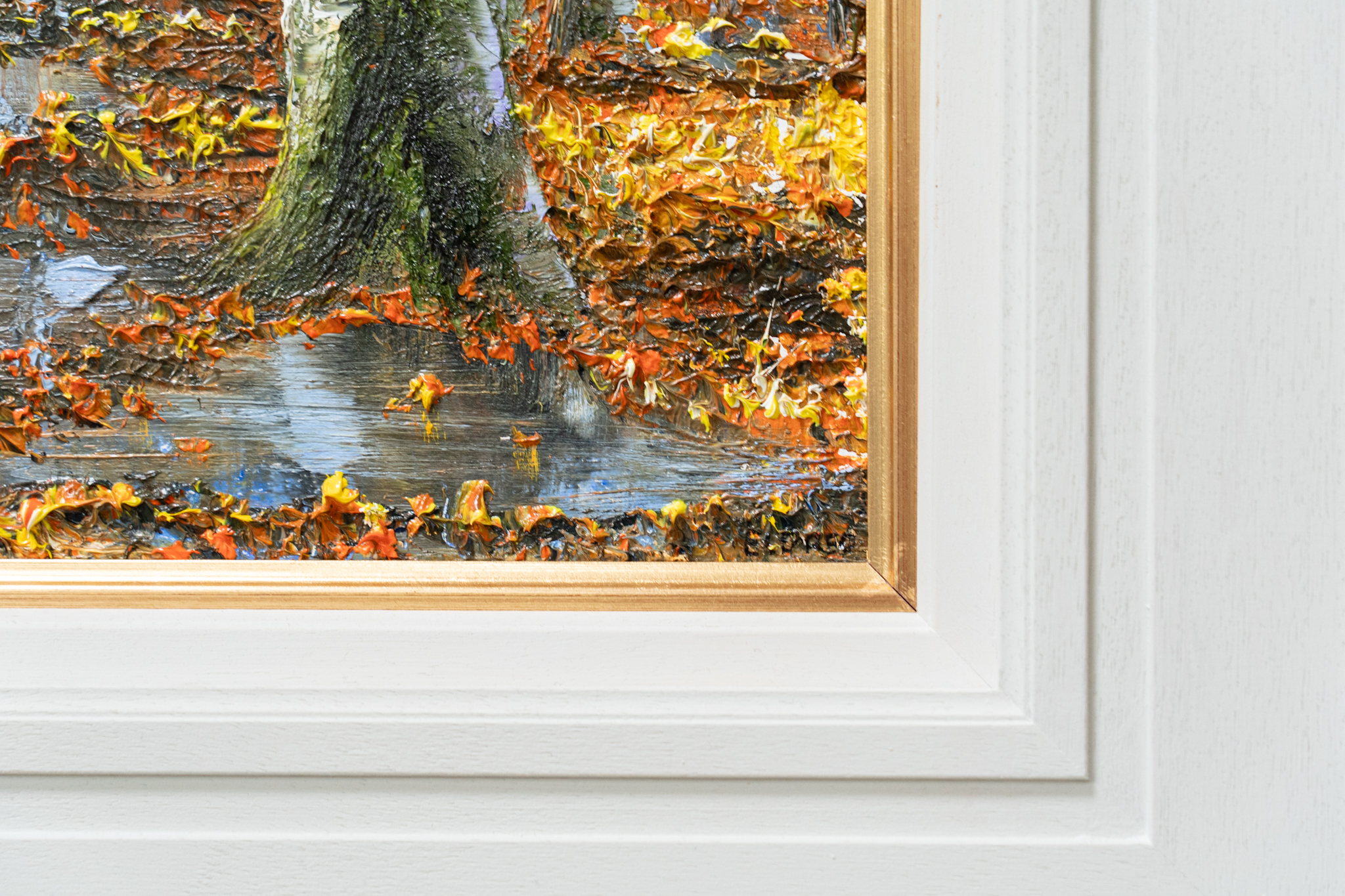 The beautiful, thick layers of oil, that form a part of the incredible journey of a Mark Eldred original, are raised and prominent as each and every element in the painting gets the same attention and the same love from this awesome artist. ‘Autumn Reflections’ is another striking Eldred original that quite literally takes your breath away. Majestically framed, this is a powerful piece that makes for a very striking addition to any space. This impressive painting, with its gorgeous and rich colour palette, really stands out. Like every Mark Eldred piece we have ever been lucky enough to be around, you could almost walk right into it, its so beautifully realistic, with its fabulous detail and incredible handling of colour.