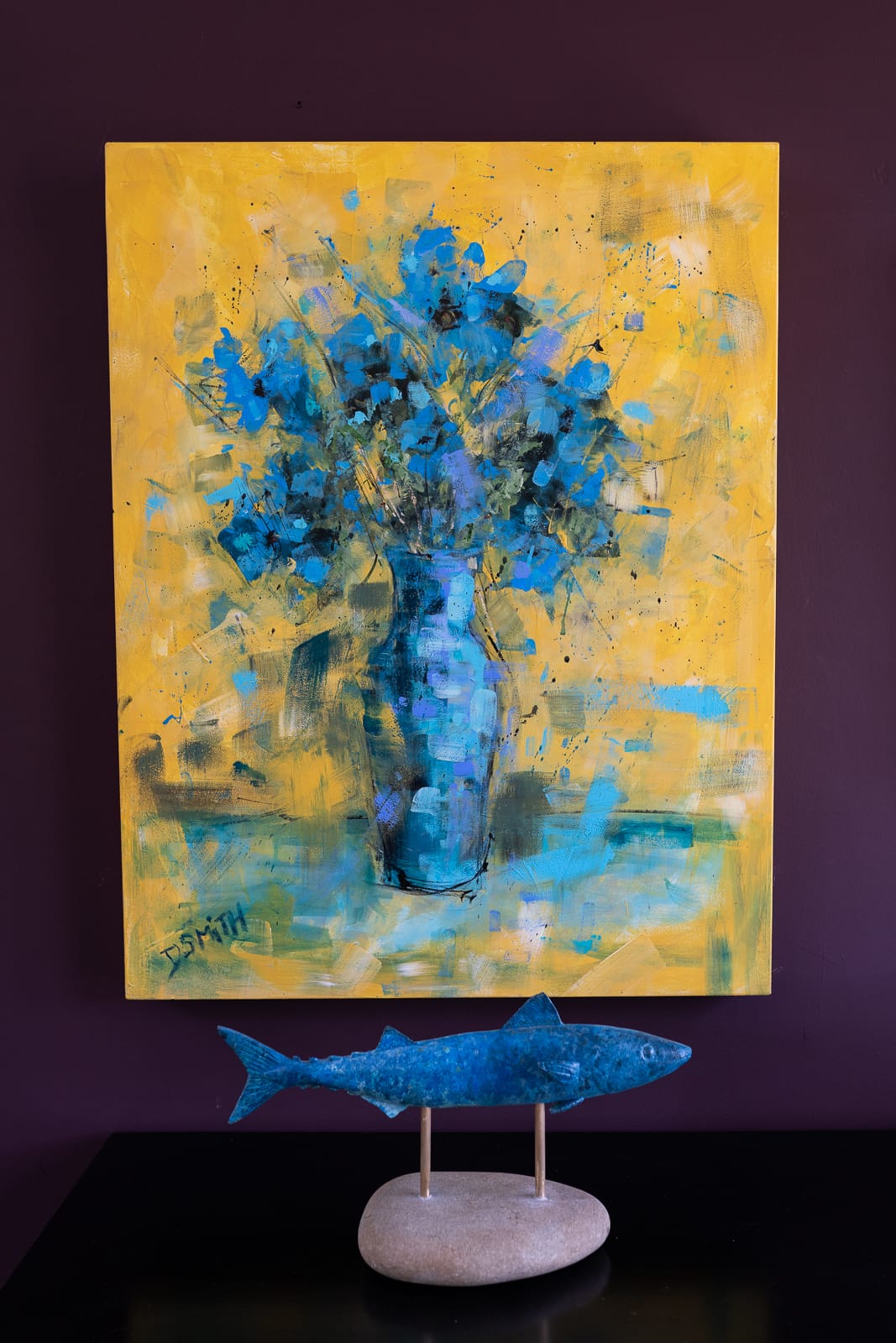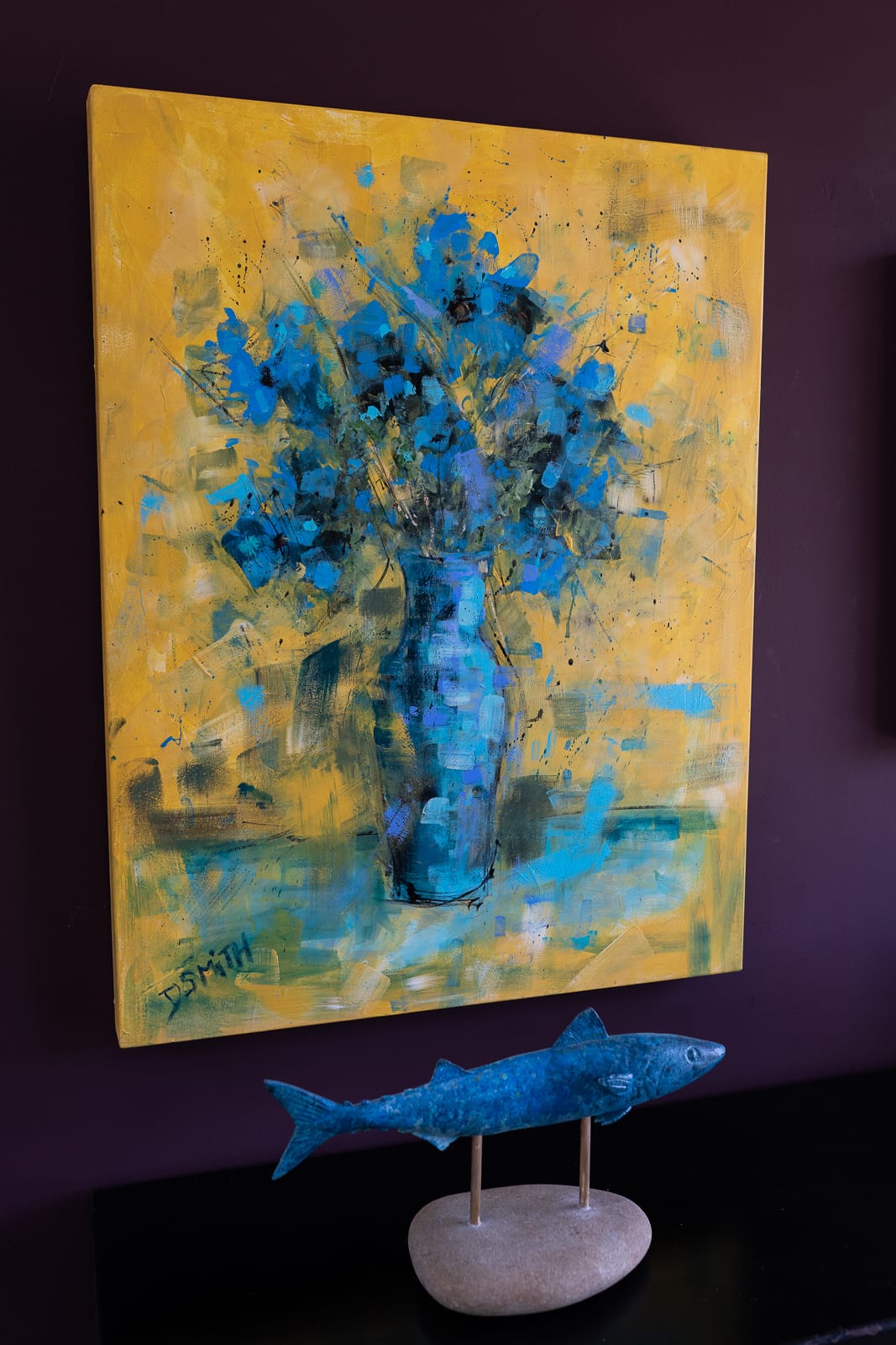 The immensely vivid, colourful and fun approach, on one hand, is wonderfully contemporary while at the same time, is a clear nod towards the styles of the old masters. The Blue Vase and Blue flowers, of course, on closer inspection, have many layers, variations and shades at work. Danny’s supreme knowledge of colour, placing the subject against this bright yellow backdrop, is simply amazing on any wall.