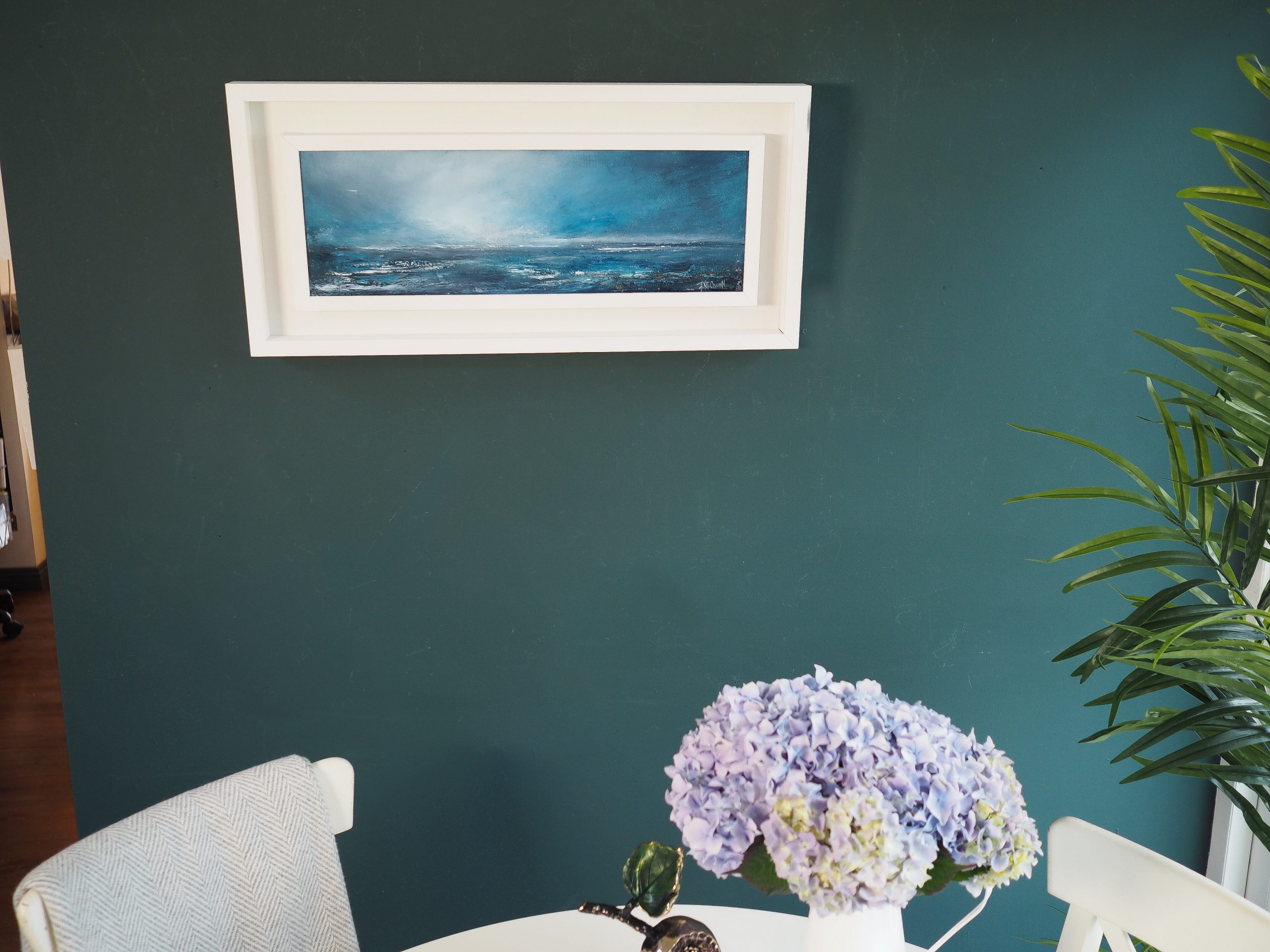 Her work is captivating and the calm each piece brings is quite special. It is extraordinary how a painting so powerful, with so much movement and depth and large crashing waves, can somehow bring calm and serenity to a space.
