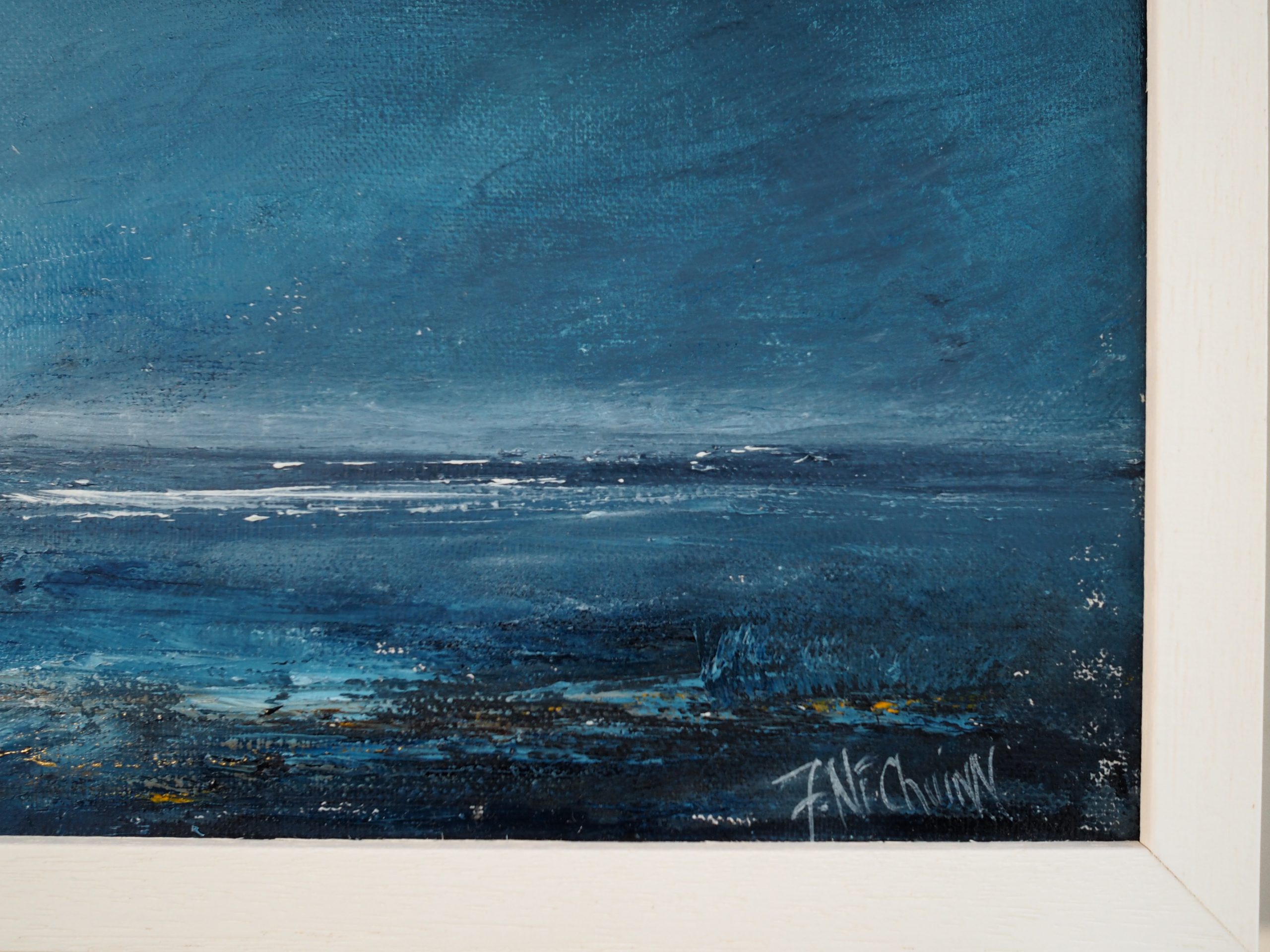 ‘Blue of the Night IV’ is one of the newest, superb collection of striking, moonlit seascapes by artist Fiona Ní Chuinn.