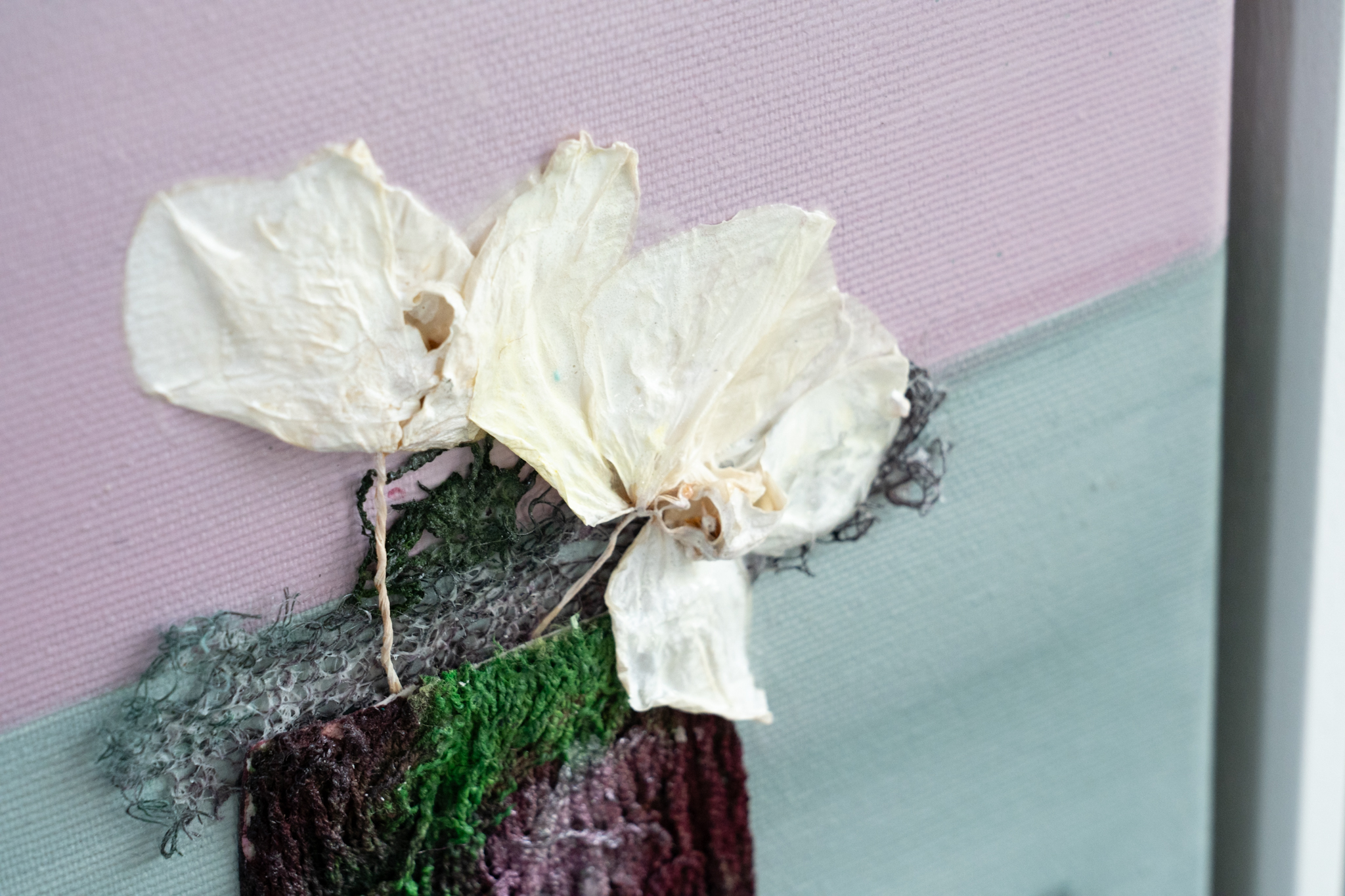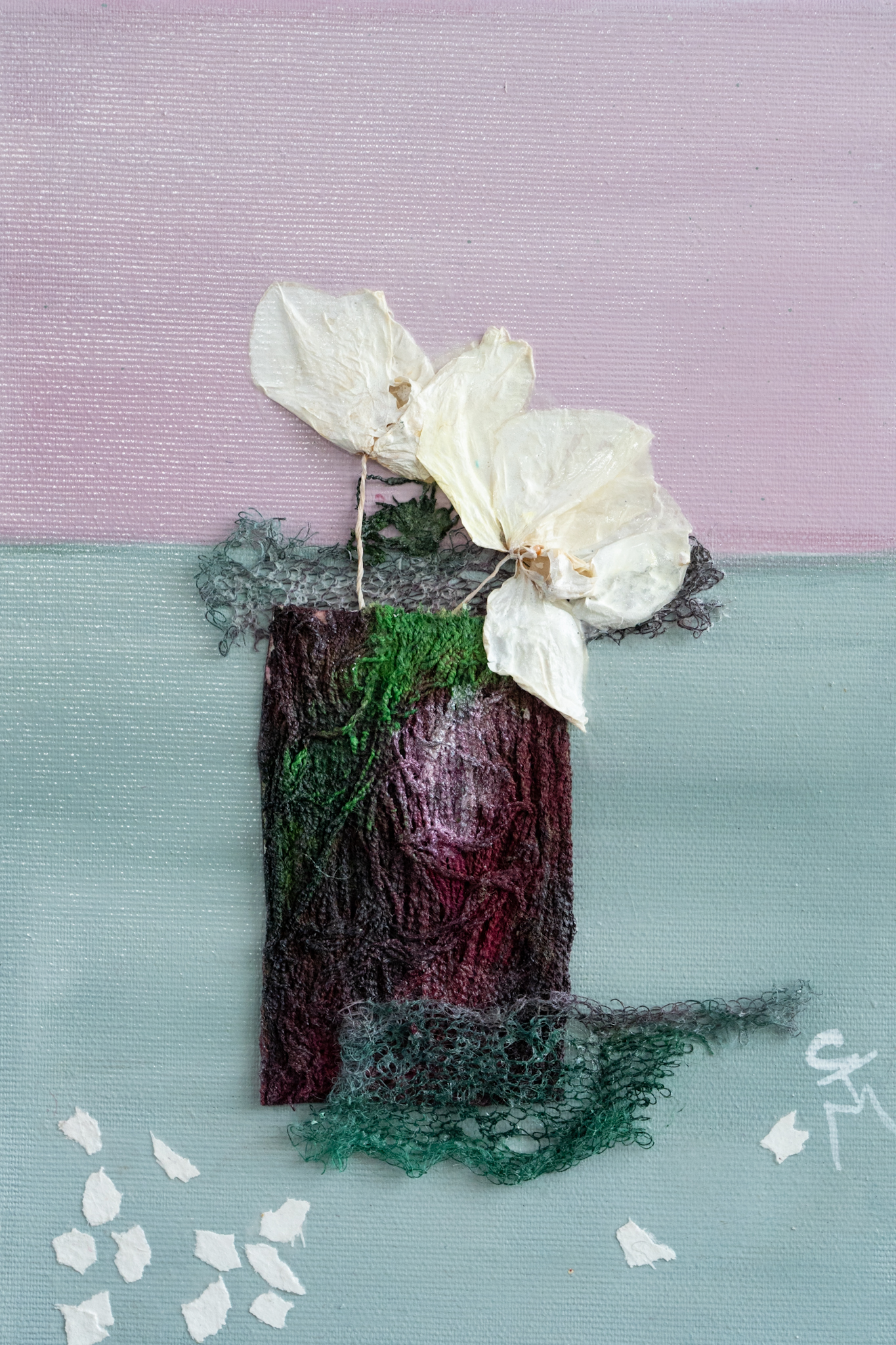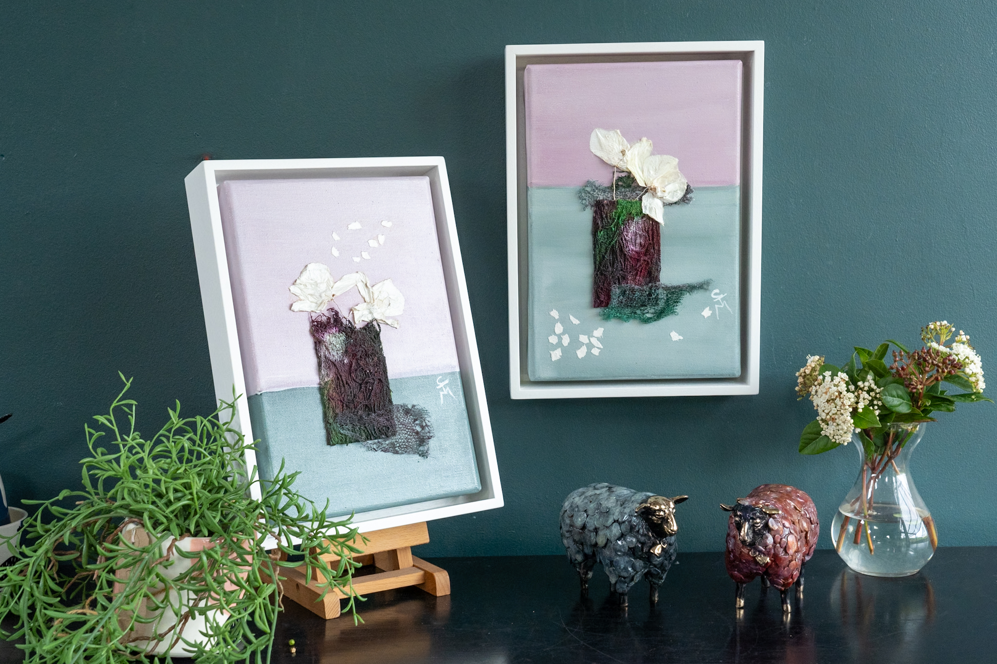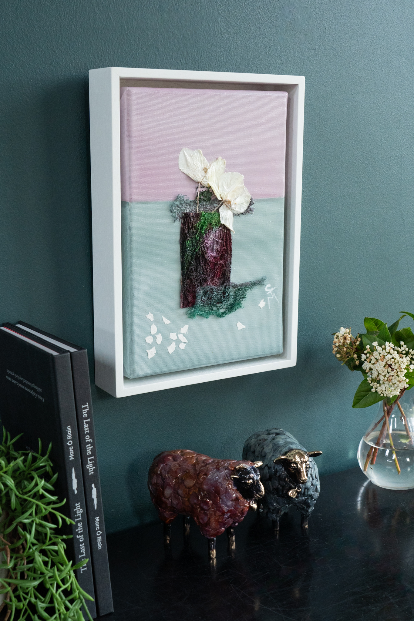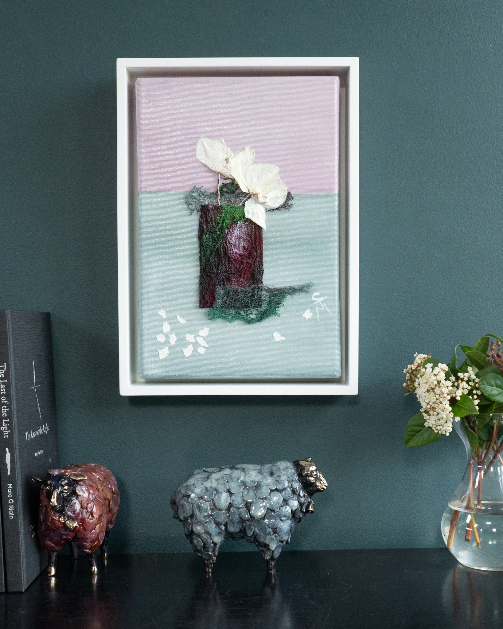 Carmel Madigan always manages to bring together the most lovely of colour arrangements and this piece is no different, focussing in on hues of deep purple, creams and baby pinks. This mixed media painting, is a gorgeous original work, in Carmel’s signature, style, encompassing, especially through her use of mixed media, all sorts of textural nods, from the vase, to the flowers and the table on which it stands. Carmel’s love of nature comes through in every piece of art she creates. This truly magical piece is part of a pair (Born Again Orchids I) and is such a beautiful and collectable piece to own!