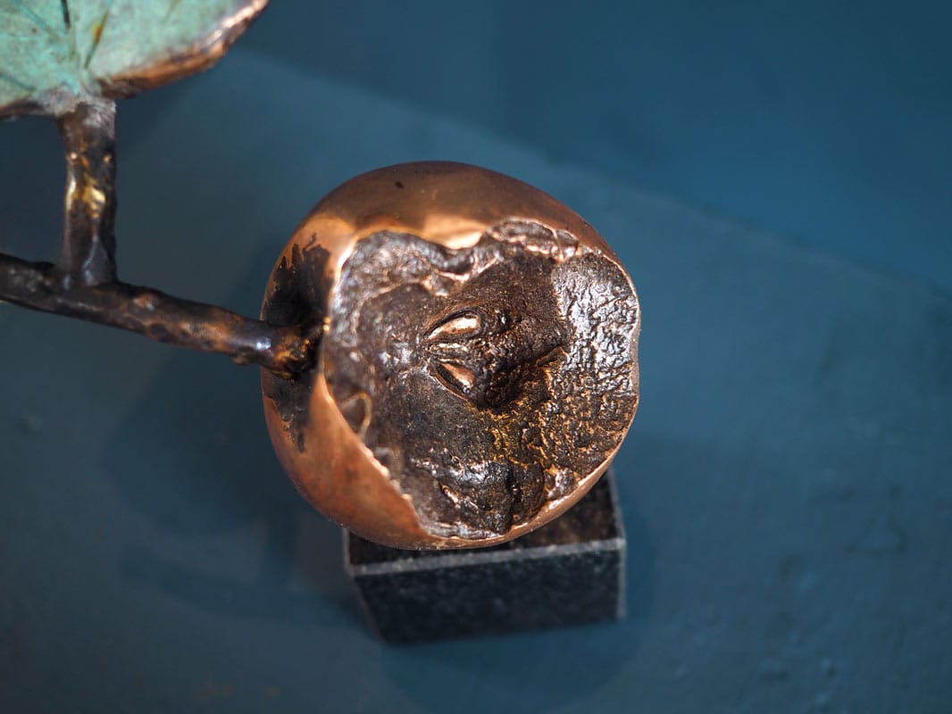 Cast in bronze, in a rustic brown bronze colour patina, this apple will make an interesting addition to one’s art collection, perhaps indeed sitting very well within a corporate collection, and is just a fantastic price to pay for a piece in bronze.