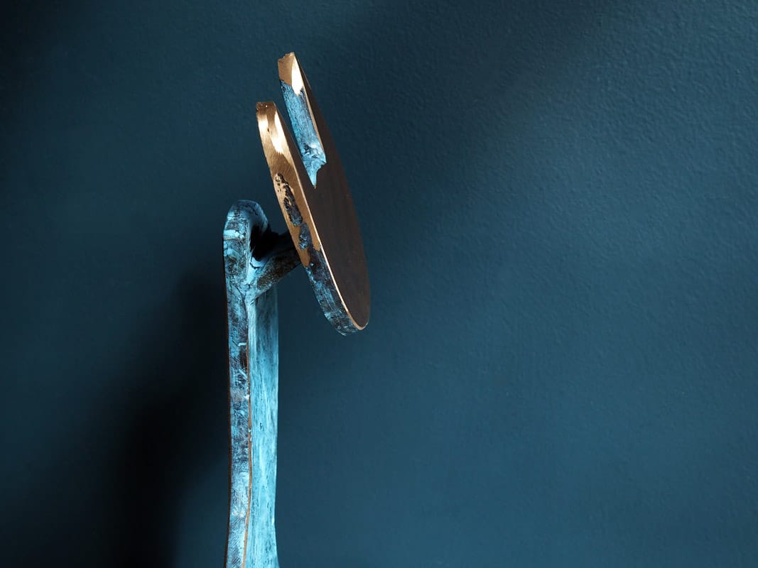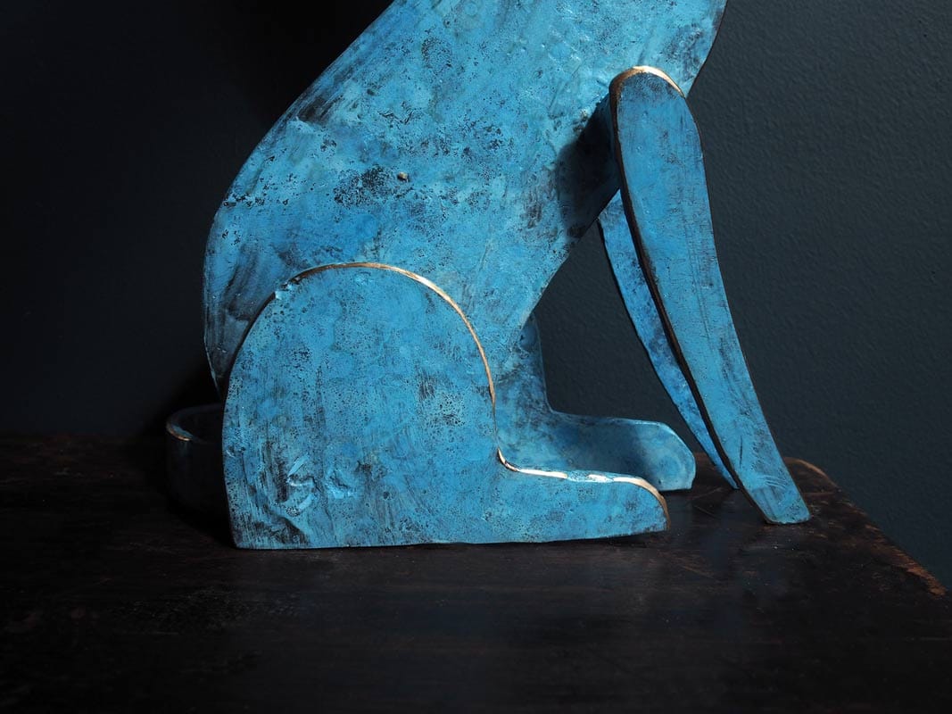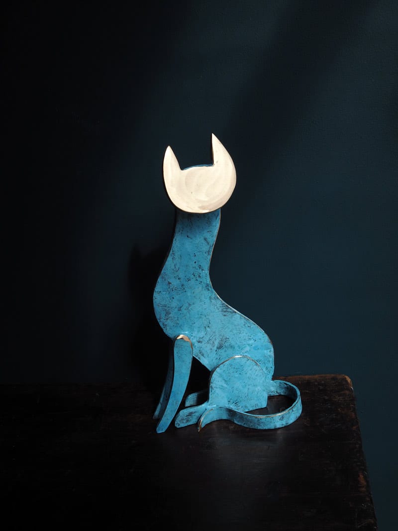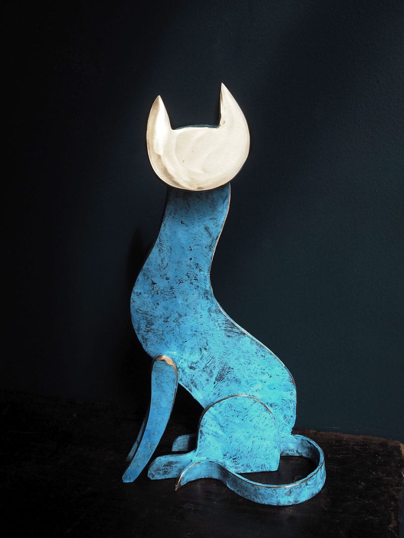 Happy and playful, but of course, like all cats, inherently suspicious and probably playing somewhat hard to get. This adorable piece is a new style of bronze cat by Connolly; patinated in layers of teals and darker greens for depth of colour and with a shined bronze face for striking impact.