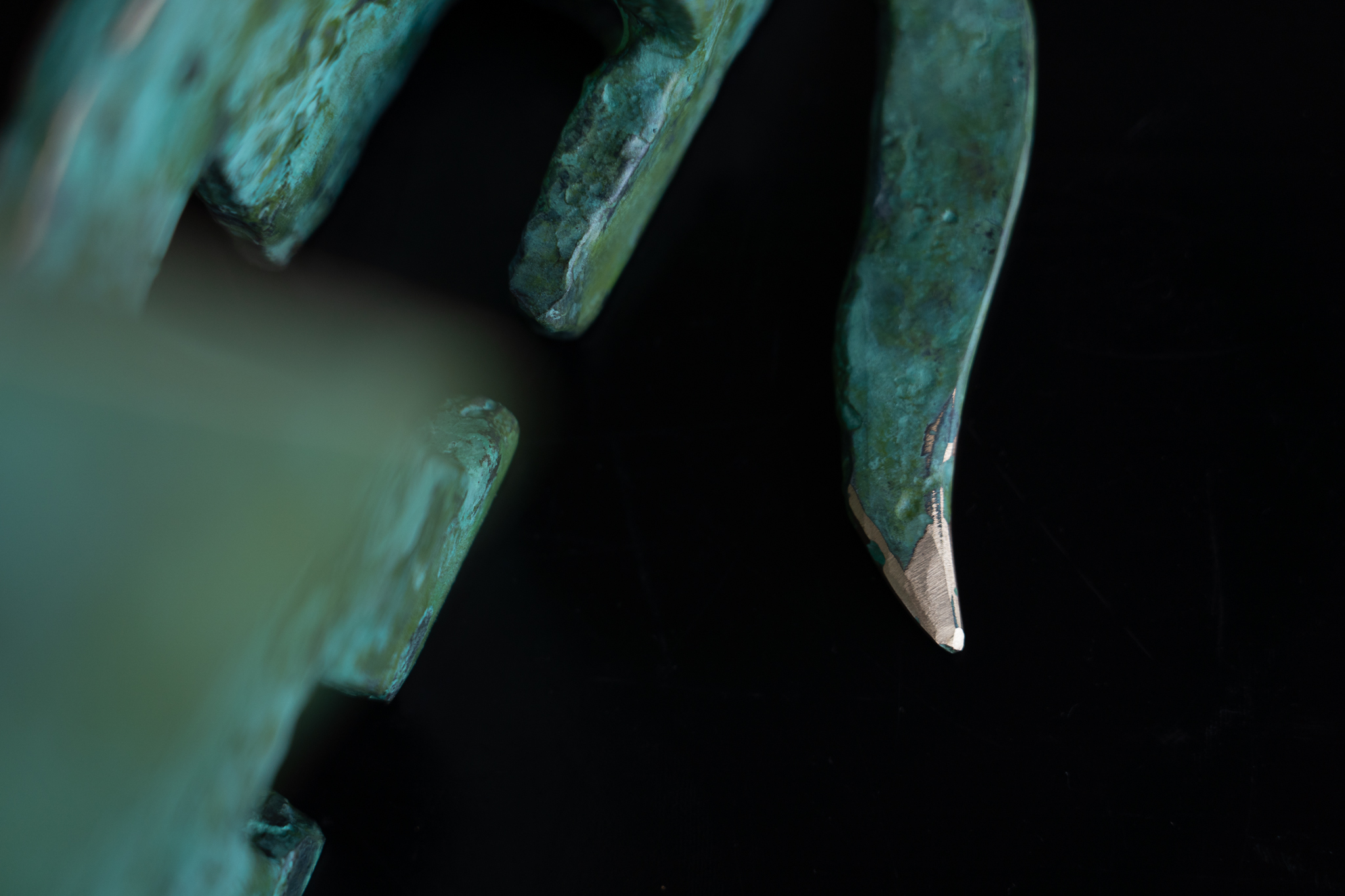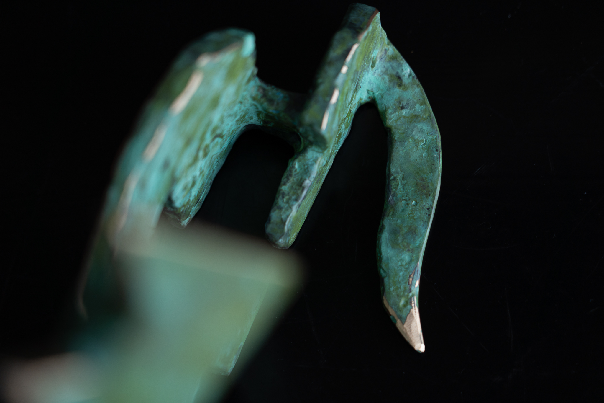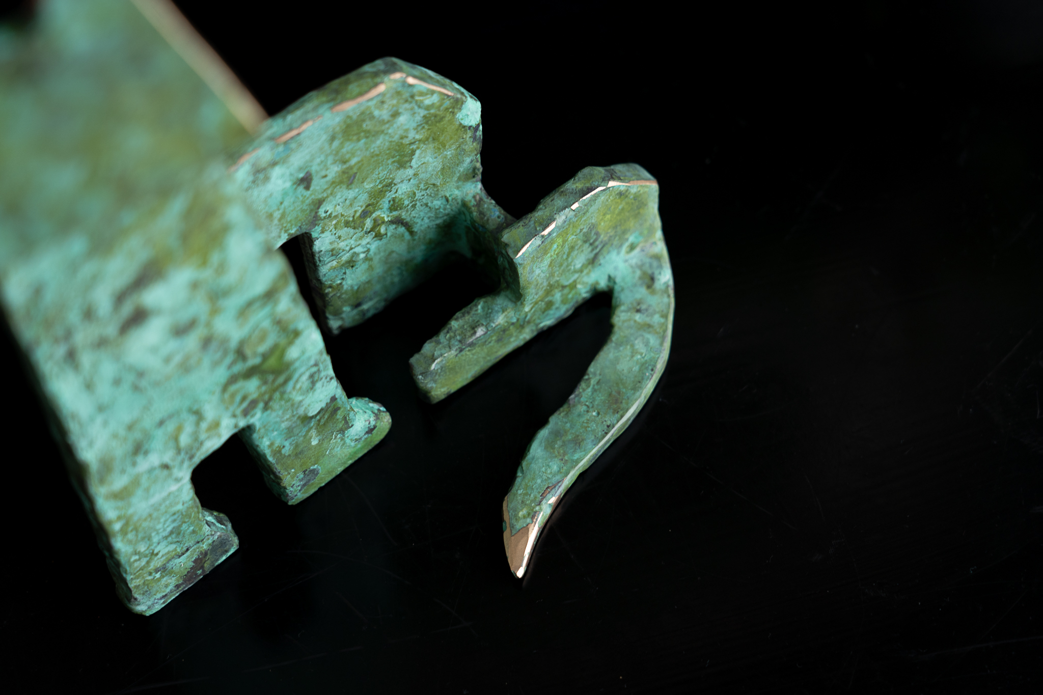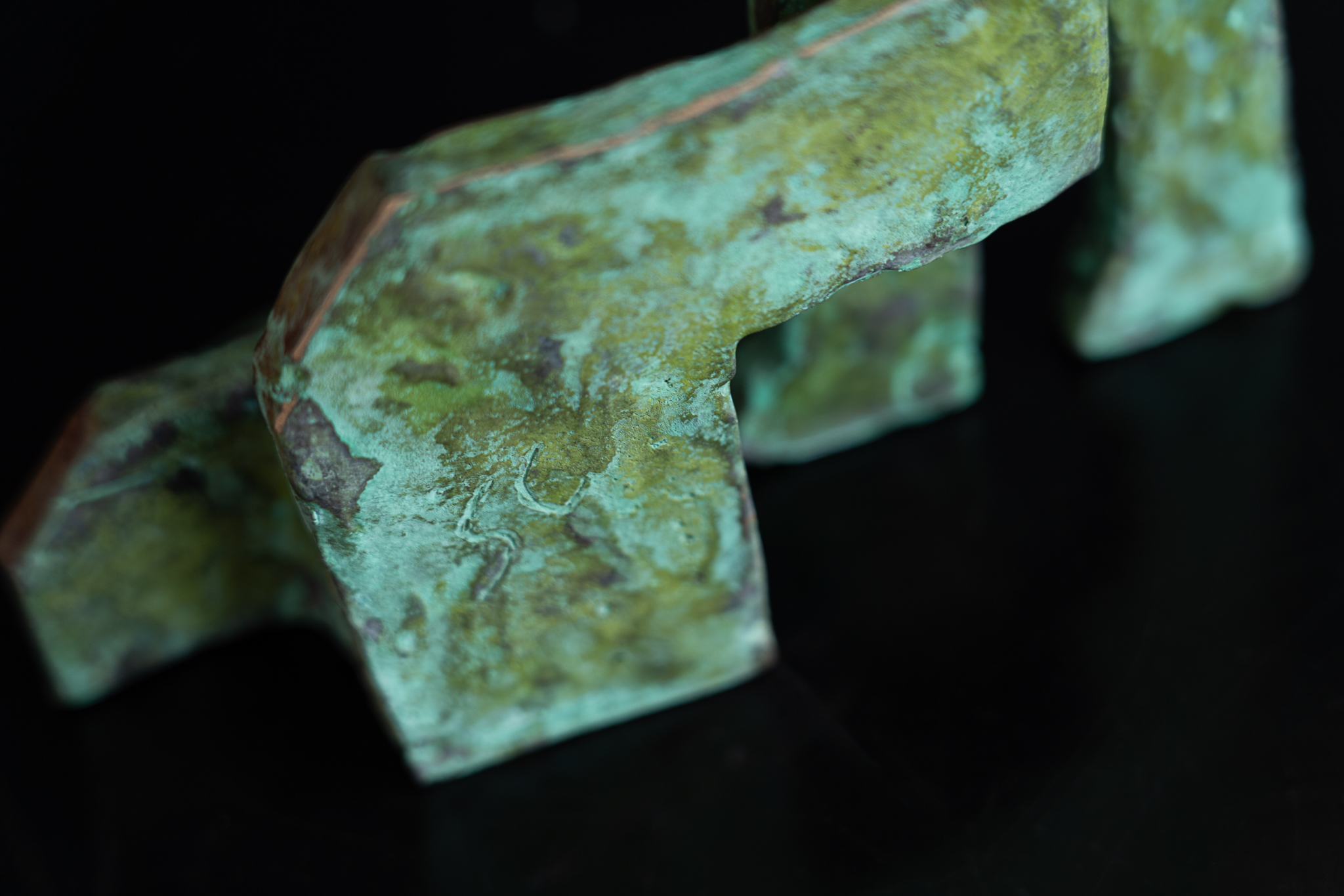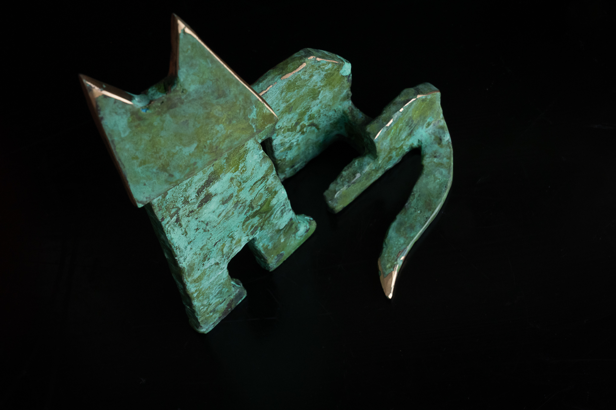 Seamus is one of Ireland’s leading bronze portrait sculptors. When not busy with commemorative life-size commissions, Seamus loves to focus on his stylized animal sculptures. One of his signature styles is this way of turning these two dimensional sculptural elements into what becomes an adorable three dimensional piece, full of personality and charm. A beautiful matte green in colour with layered patina that allows for some of the lighter colours beneath to peak through and highly polished bronze edges for that extra drama. Stunning.
