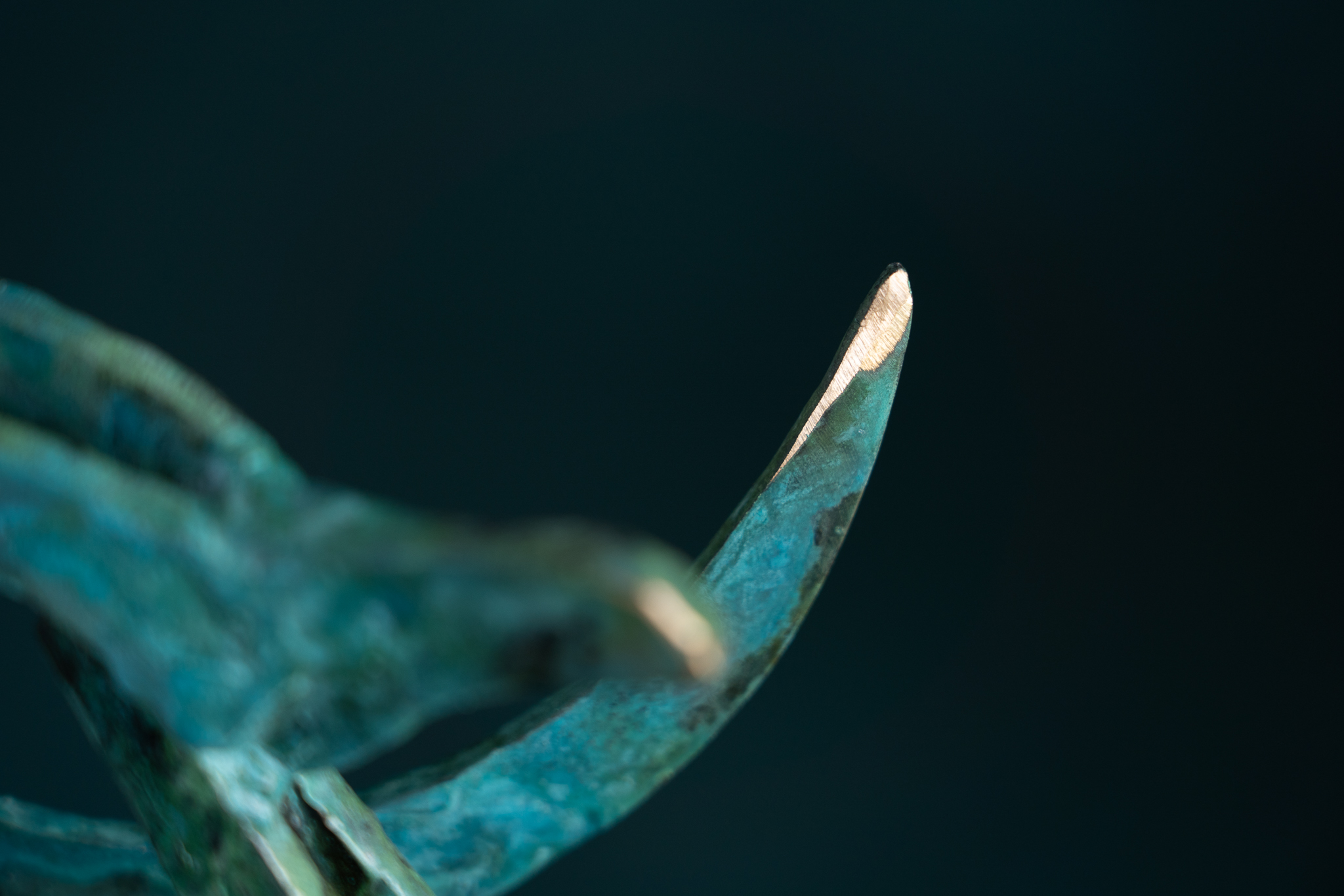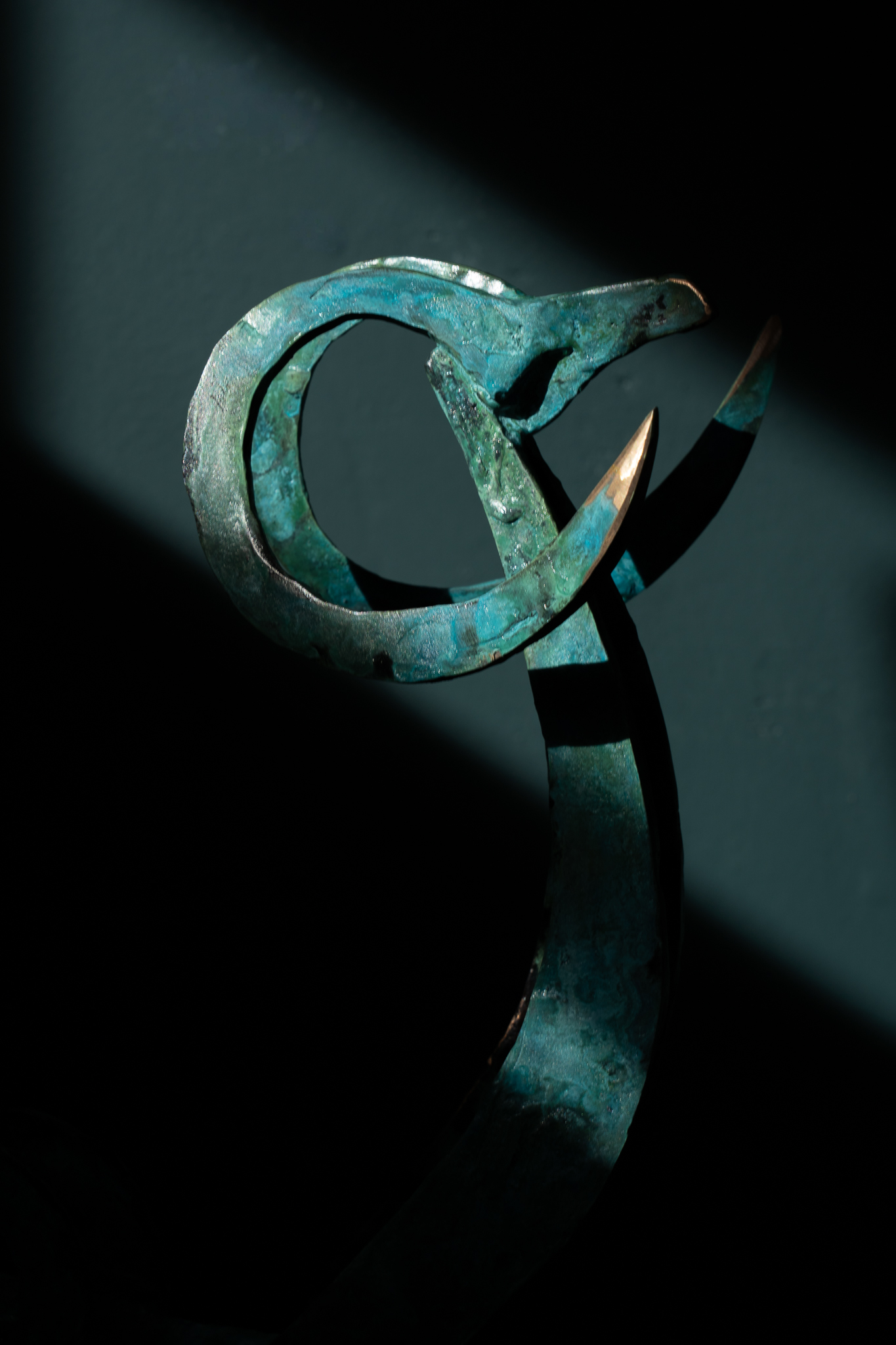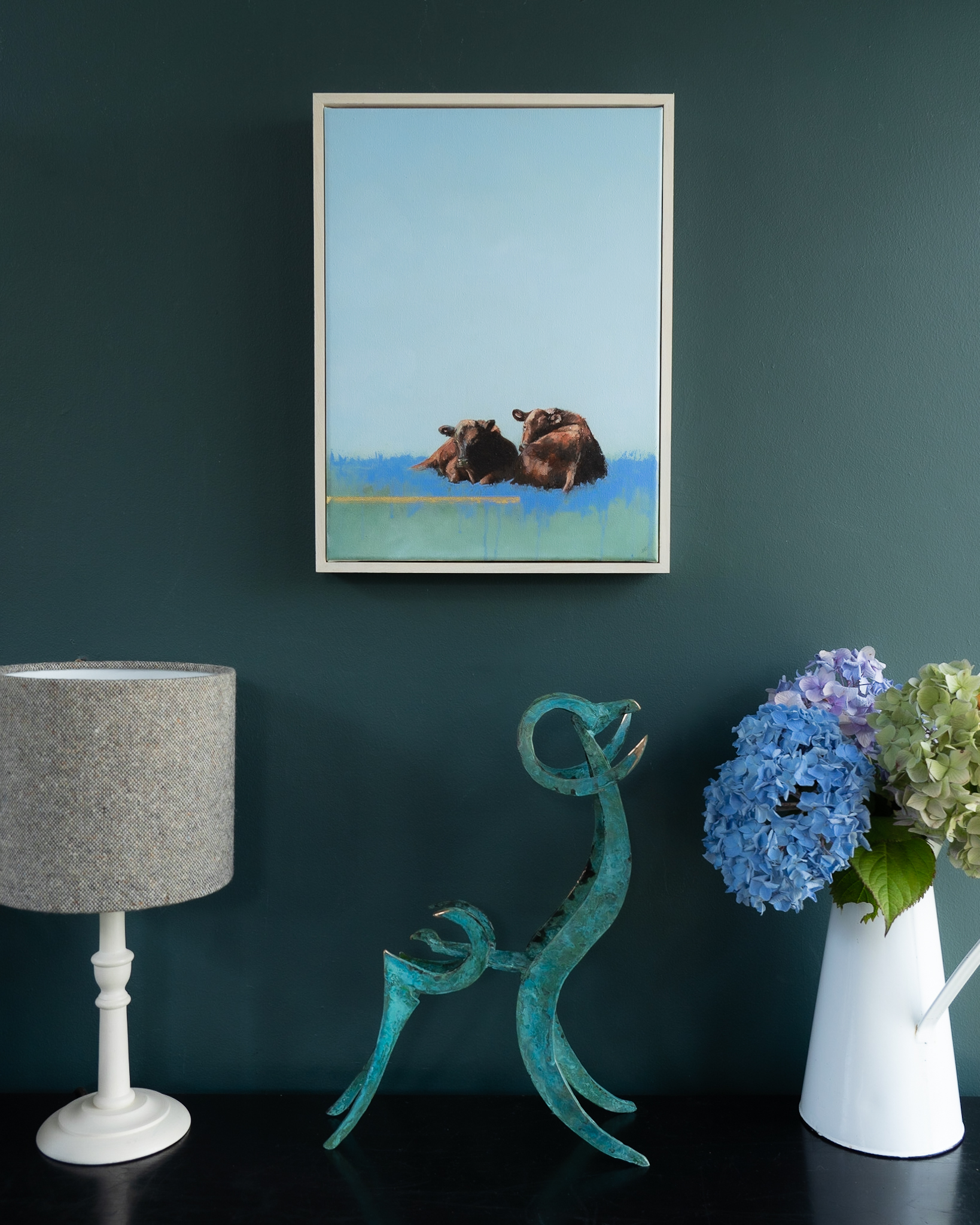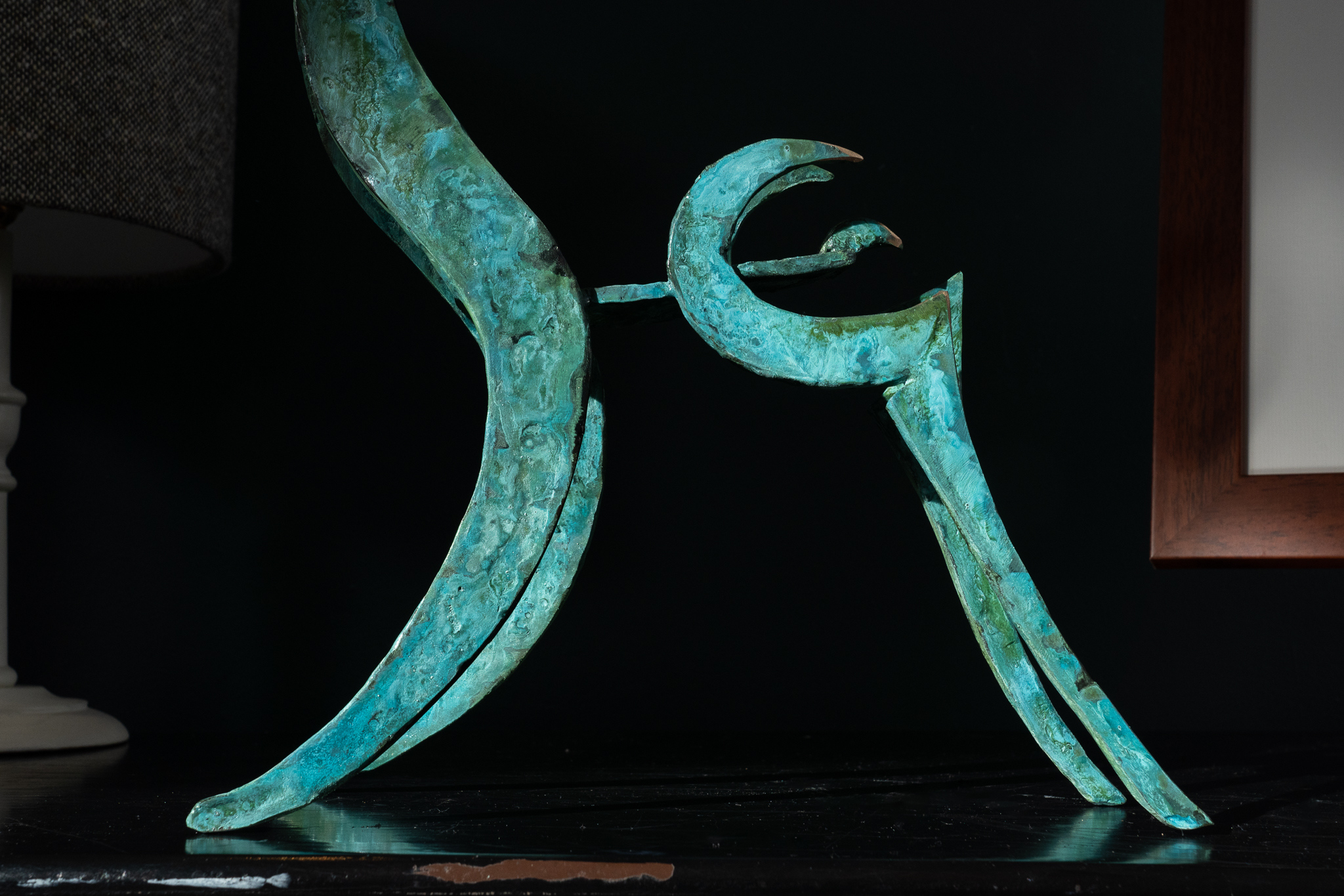 Seamus is one of Ireland’s leading bronze portrait sculptors. When not busy with commemorative life-size commissions, Seamus loves to focus on his stylized animal sculptures. One of his signature styles is this way of turning these two dimensional sculptural elements into what becomes an adorable three dimensional piece, full of personality and charm – and producing an incredibly strong silhouette. This particular style, his bronze goat, with regal stance and magnificent, swirling, horns, became an emblem for Seamus’ more stylised pieces. Fabulously collectable piece.