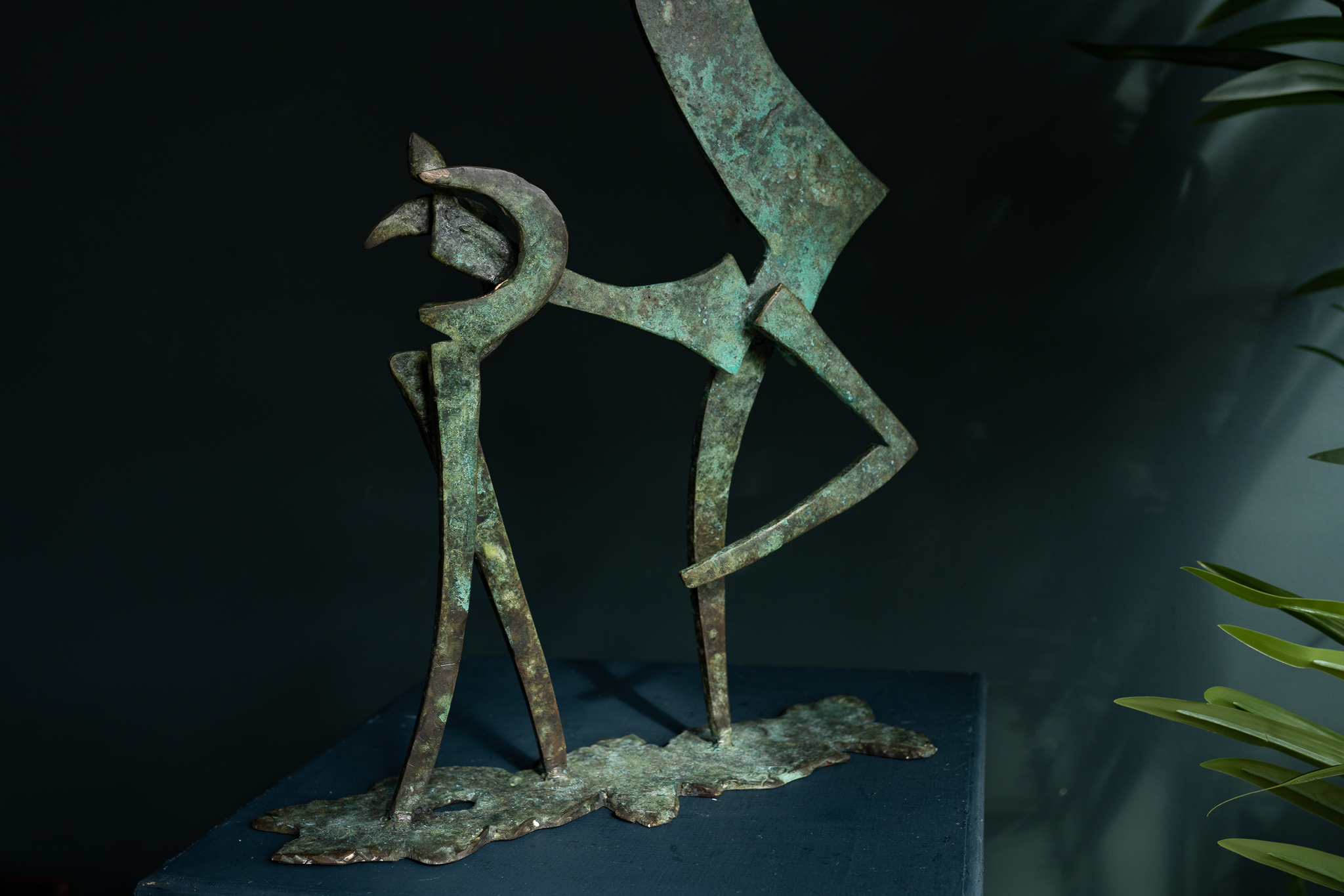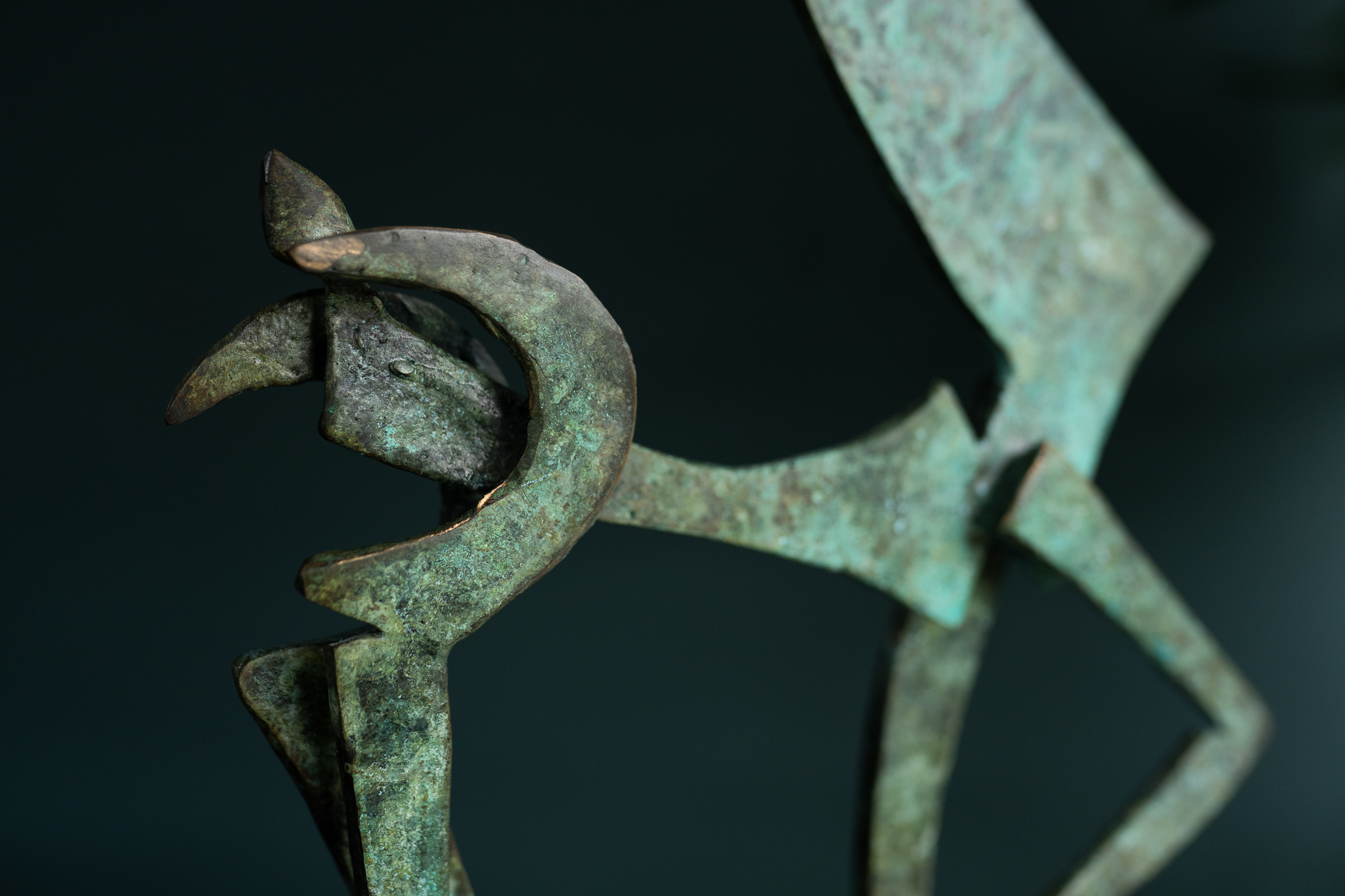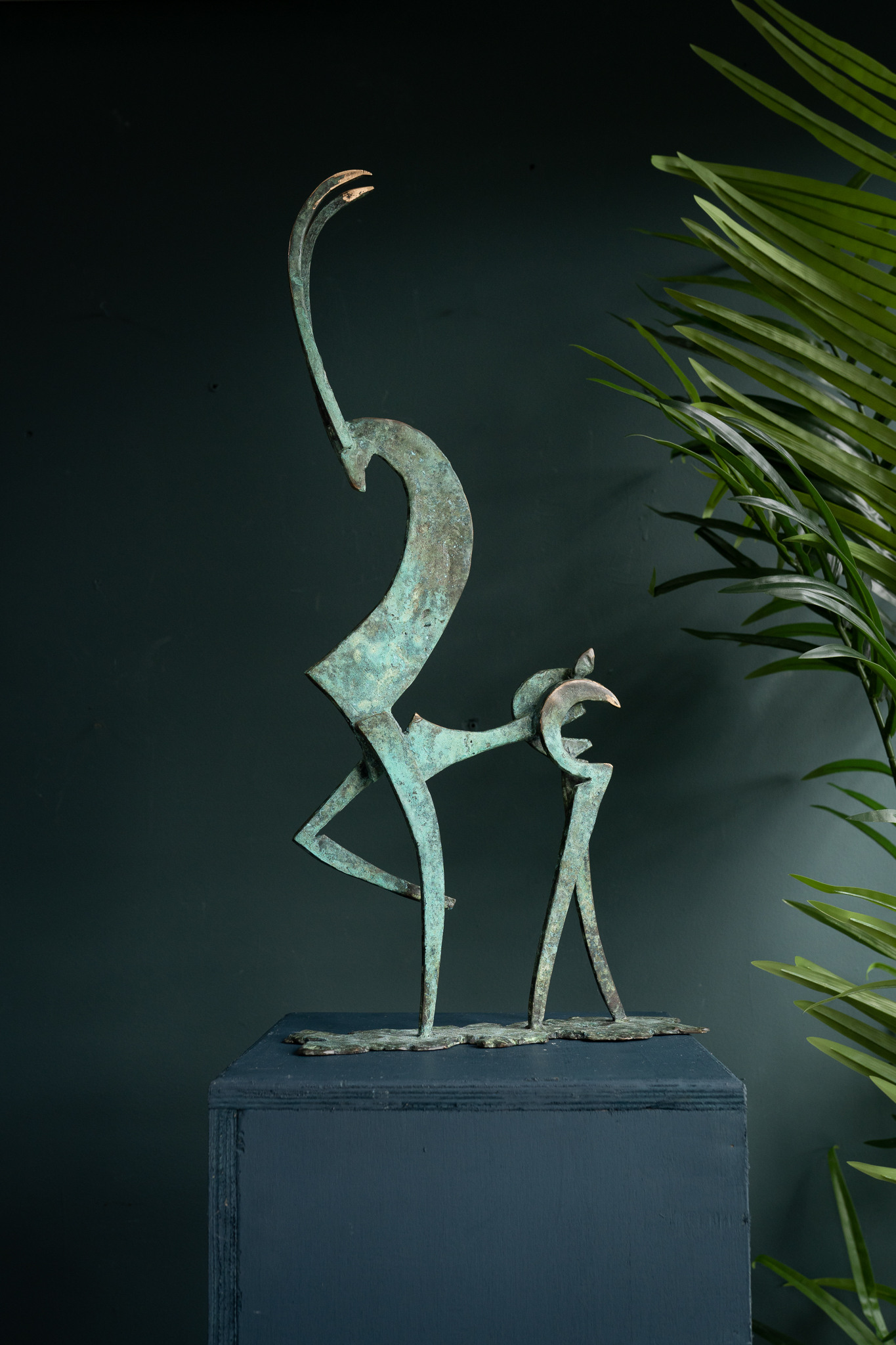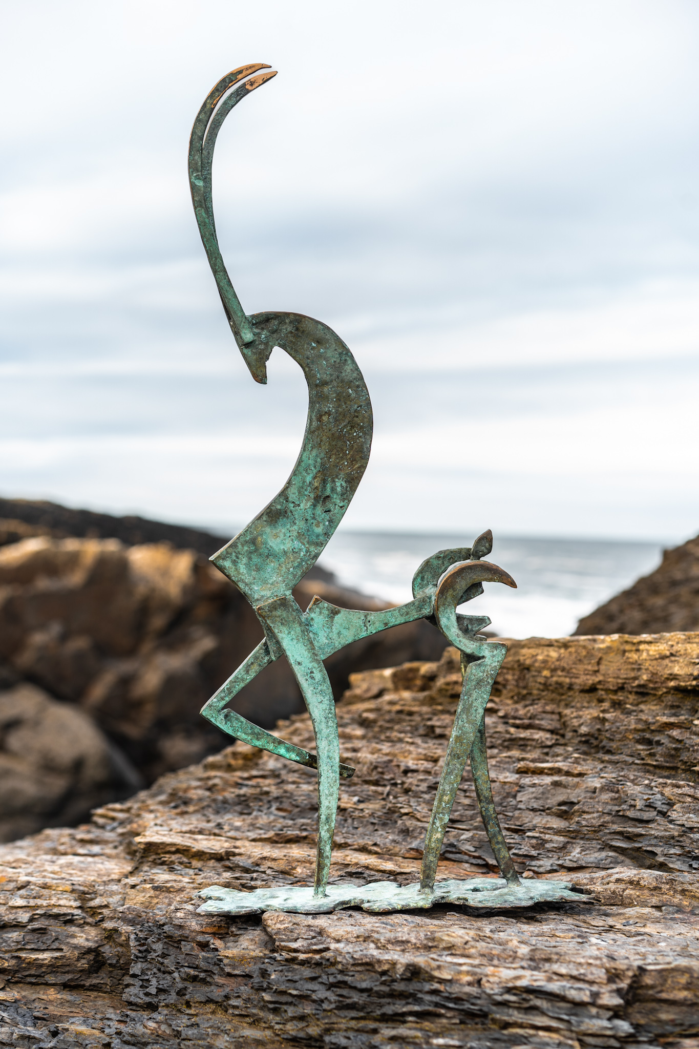 Beautiful, stylised, bronze goat in Seamus Connolly’s signature style, sculpted and cast into bronze by the artist himself in his own bronze foundries here in Kilbaha Village, Co. Clare. Standing tall and elegant and with a distinctly proud and regal stance, this beautiful, piece has been patinated in varying depths of green to create this almost weathered effect. Finished by shining the beautiful bronze edges of the horns, this is a spectacular statue by one of Ireland’s leading sculptors.