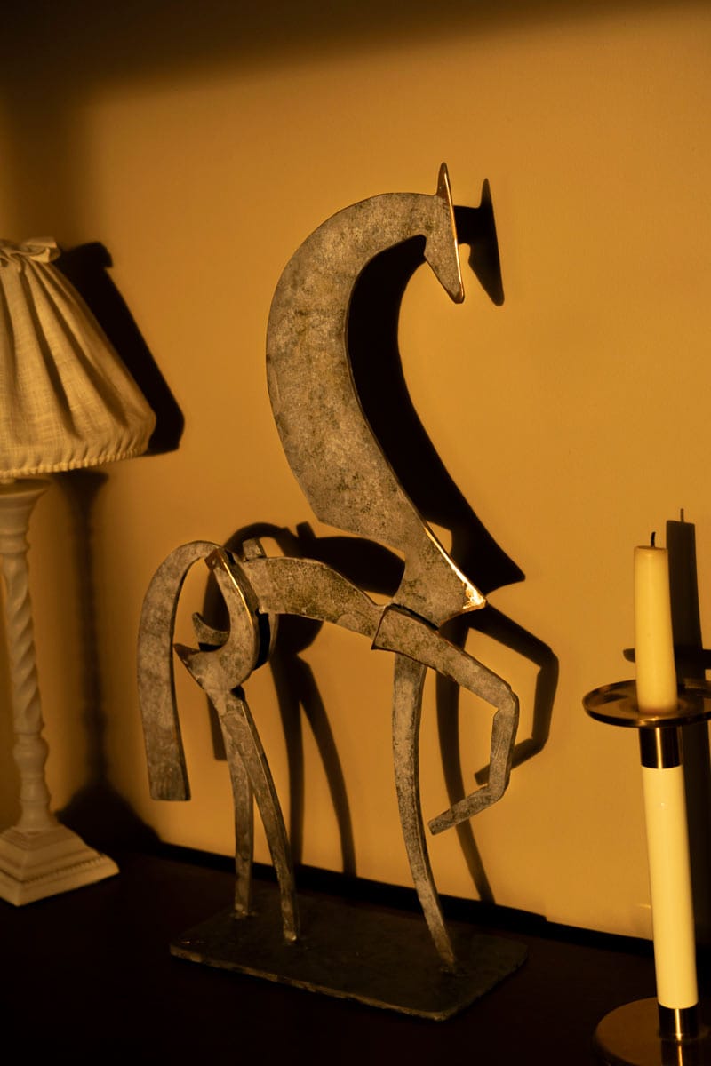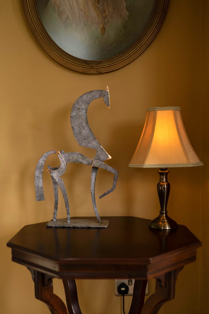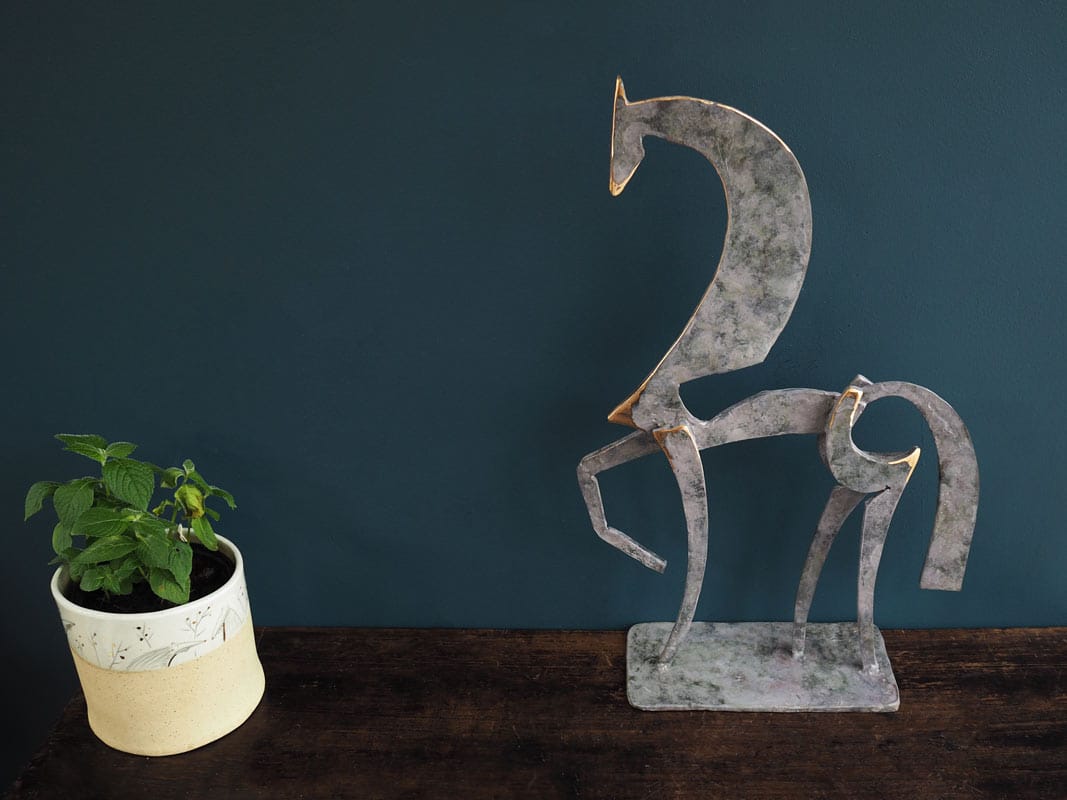 With every ounce of pride and aplomb, one would expect, this gorgeous horse really stands out with his right leg perfectly raised and his head held high, metal finished in a striking layered grey patina with pink-ish hues and standing at a rather impressive 20.5″ high. Another beautiful sculpture by Ireland’s leading bronze sculptor, Seamus Connolly. Very Collectable work.