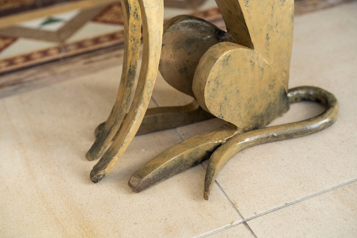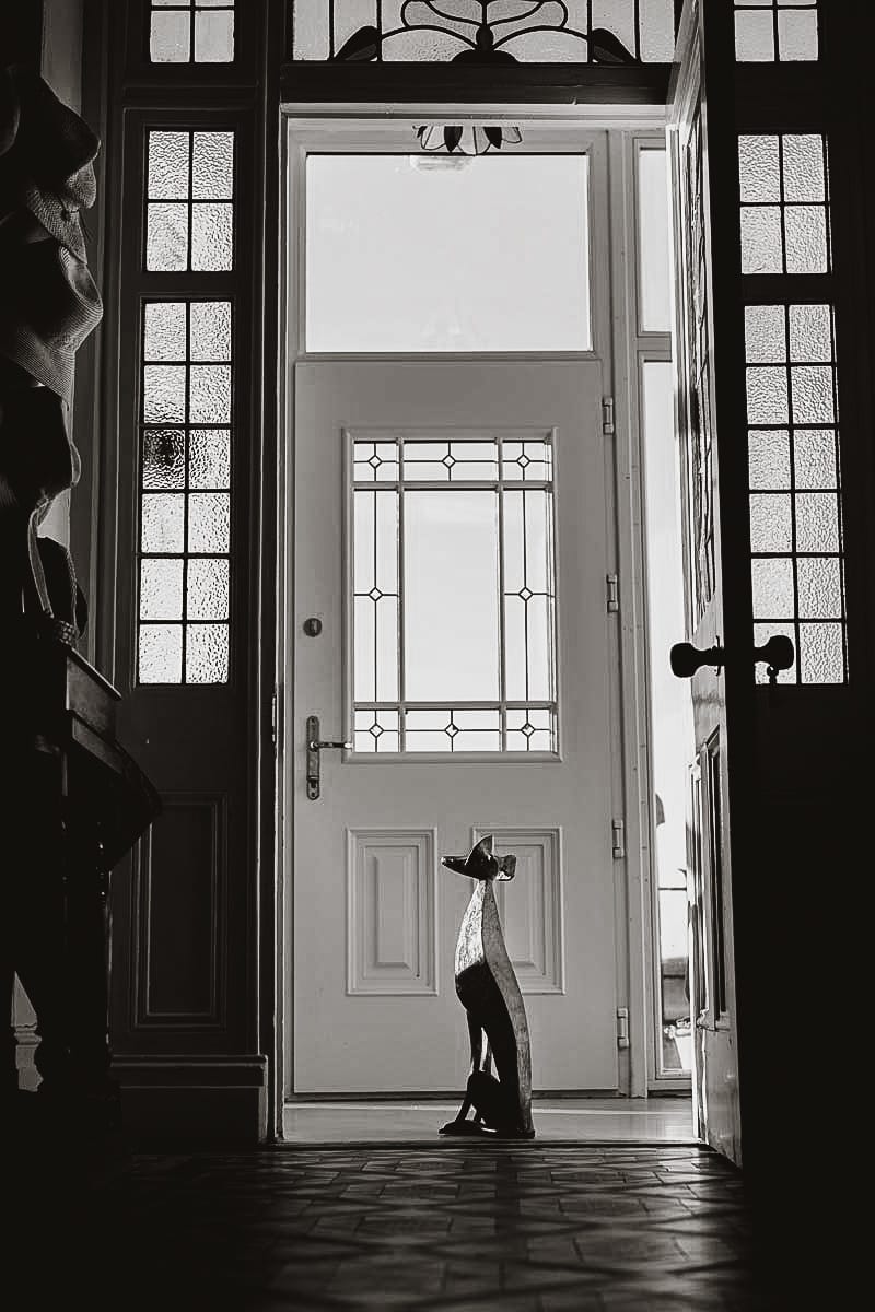 With the tilted head and cocked ears that only a whippet can master, this gorgeous doggie is just longing to be given a new loving home. Sculpted and cast in the foundry here in Kilbaha, this Connolly bronze makes a super impact; tall at 23″ high and metal finished with tones of grey and golden. This is a departure from Connolly’s two-dimensional stylized animals and is the newest whippet in a limited edition in this style – (whose predecessors have all now sold). Its a beauty!