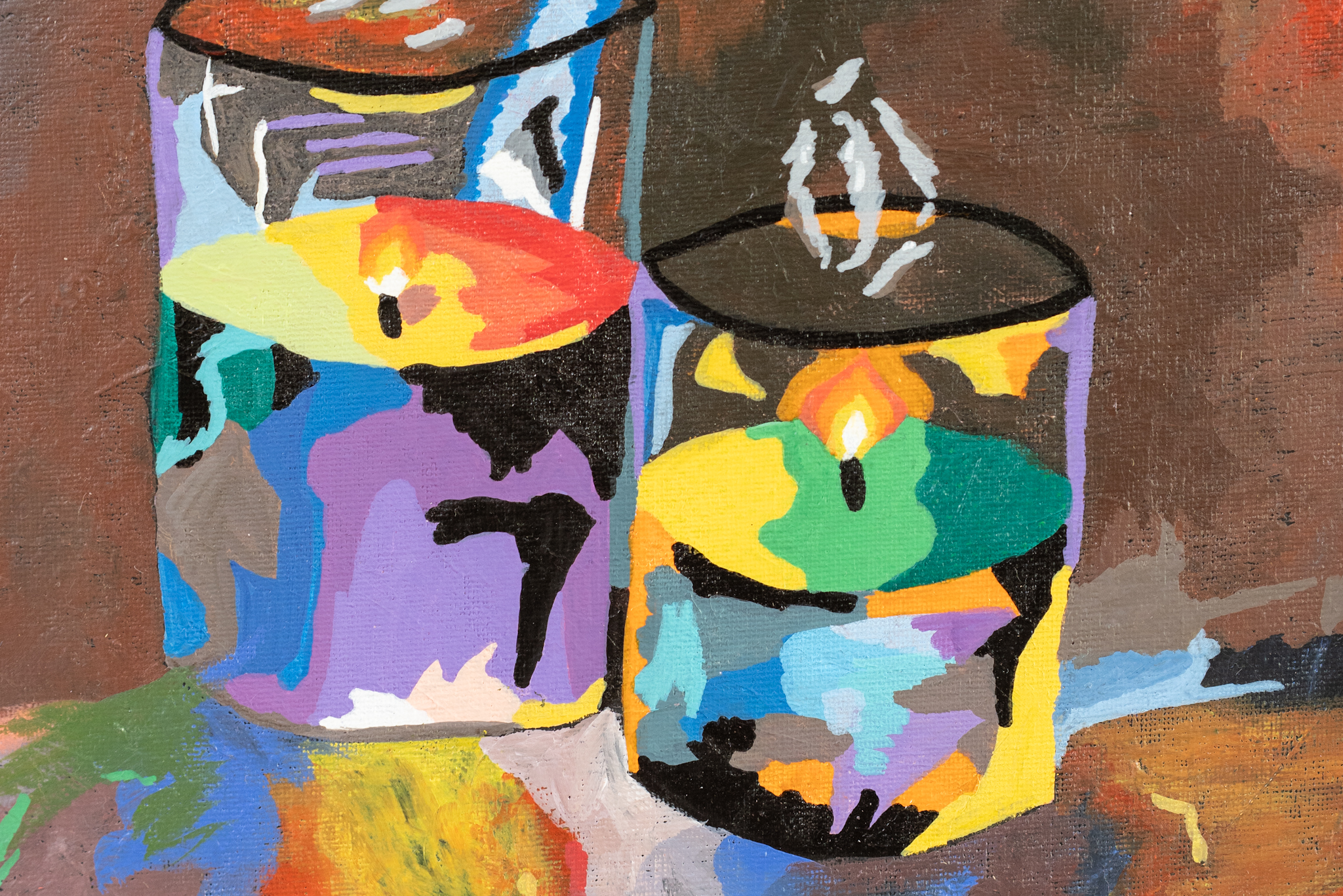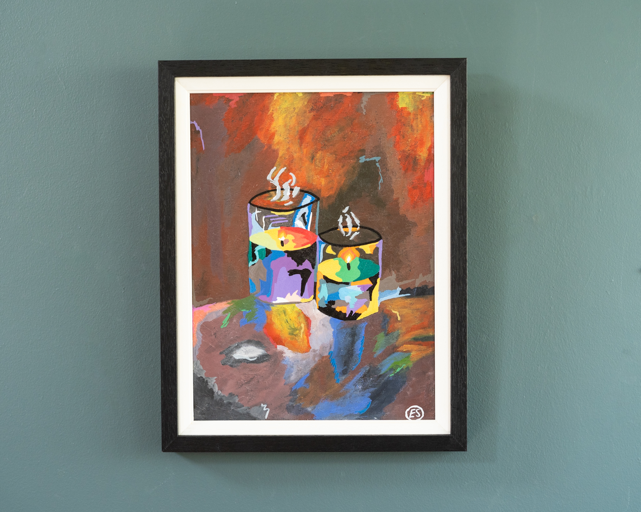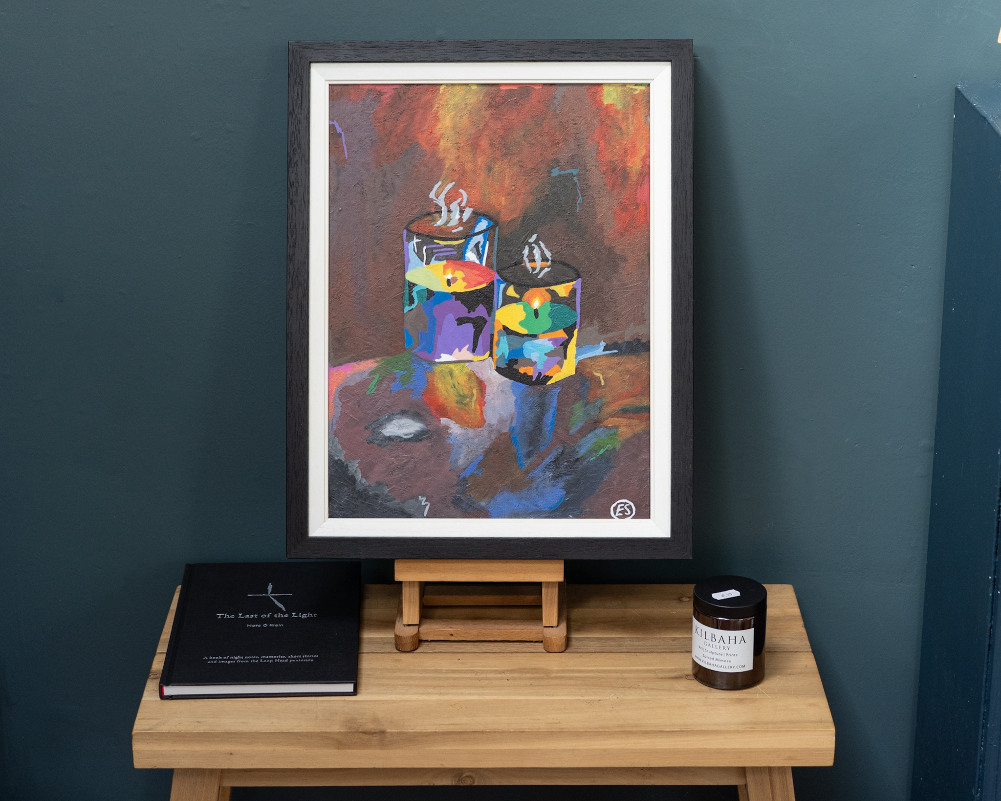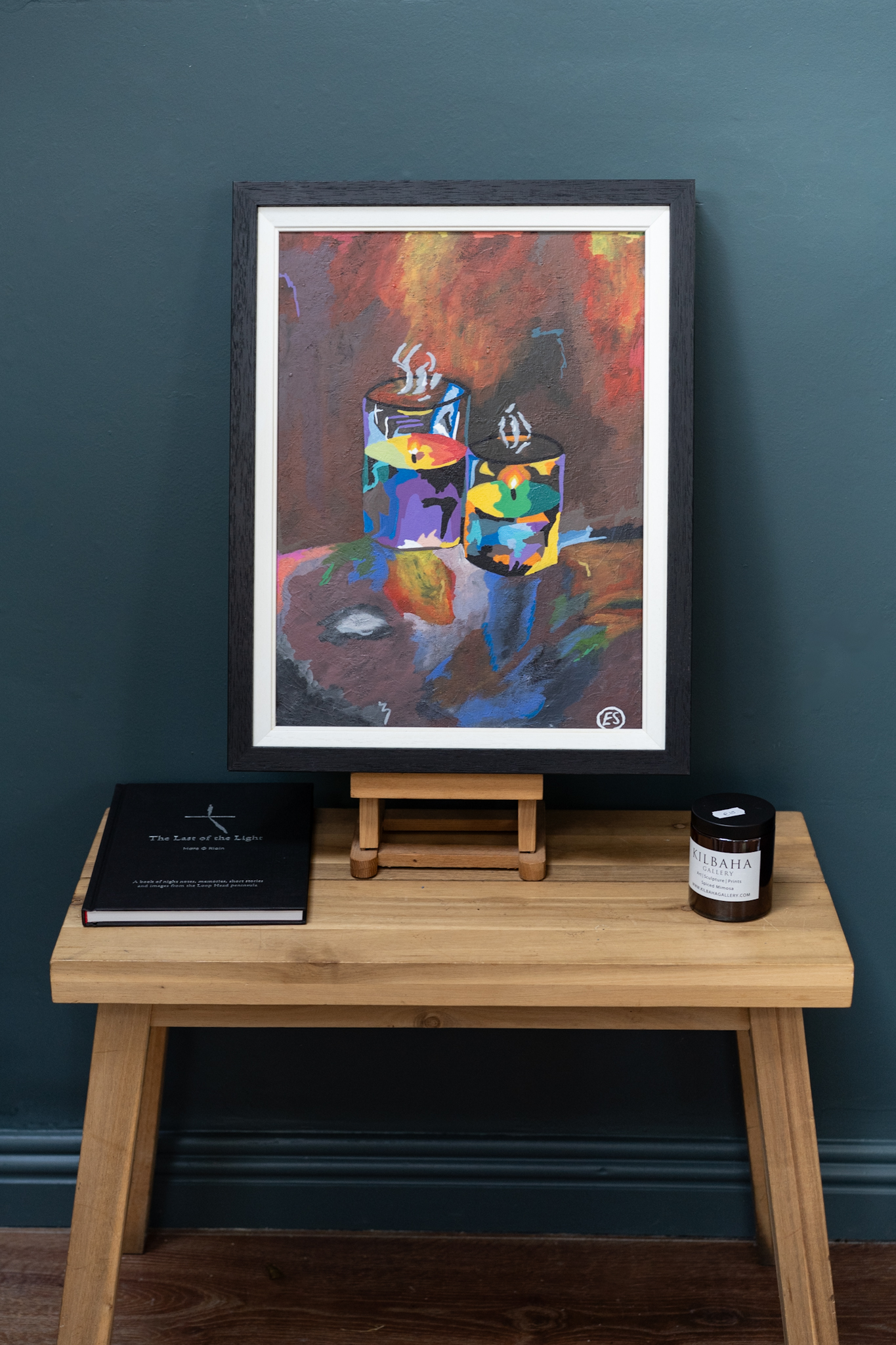 A gorgeous original piece by young artist Ellie Shields. ‘Calmness by Light’ – depicts two candles; their flickering light highlighting a multitude of colour and simultaneously, casting a lovely sense of calm.