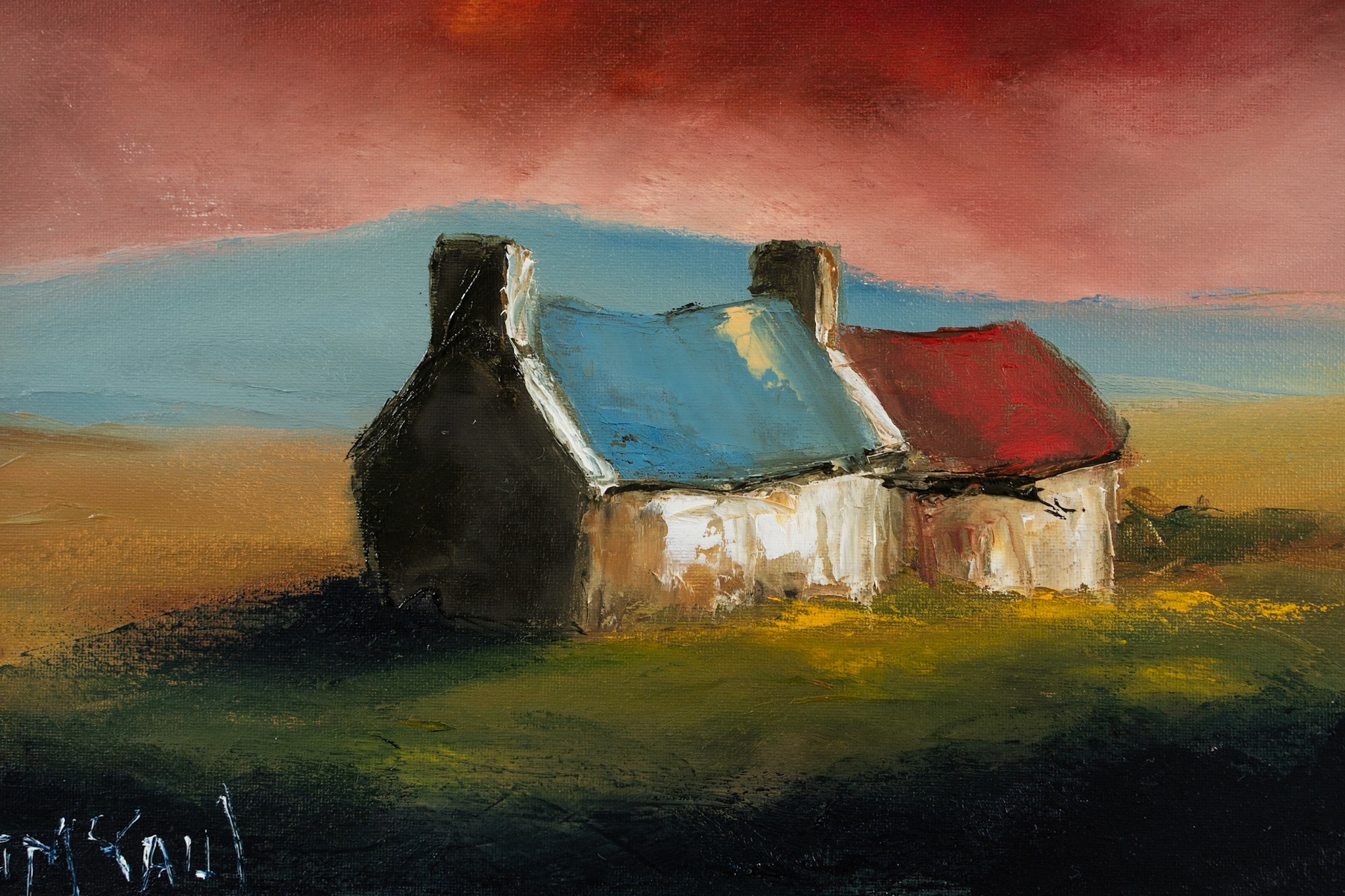 Irish contemporary art – framed – oil on canvas – McCaul – Farmhouse evening – Wild Atlantic Way – West of Ireland –