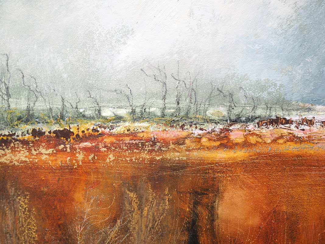 This painting is mesmerising. We love it so much! Master strokes by Eadaoin Harding Kemp here as she melds together the most gorgeous colours so cohesively and so true to the area, to the scene and the particular daylight that she is capturing. The palette she uses is a stunningly rustic selection of rusts, browns and greys that make this painting so atmospheric you almost want to walk through it, towards those ‘Cottages near Cross’ that you can see in the distance.