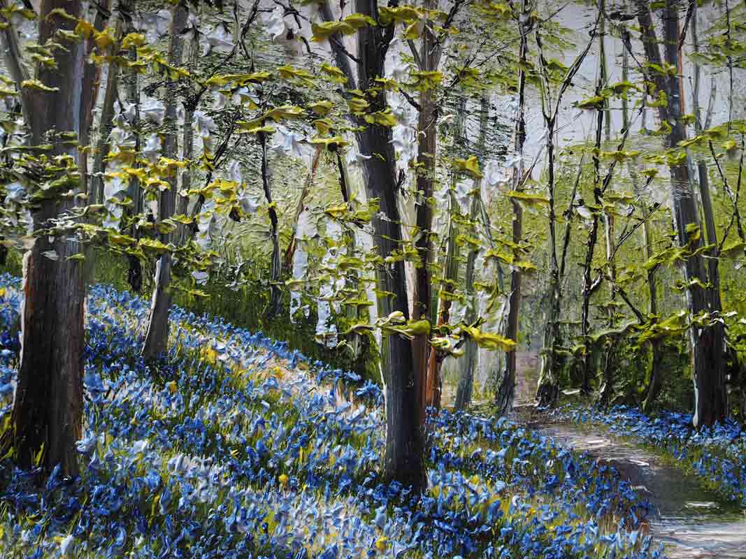 Renowned for his striking forest scenes, Eldred transports you from wherever you are in the world, to the sweet smelling, fresh air and total stillness of a forest walk. The light captured in his paintings is always nothing short of masterful. His ability to create with oils, what feels like a three dimensional image where depth and perspective and incredible detail, all come into play, is rather astounding.