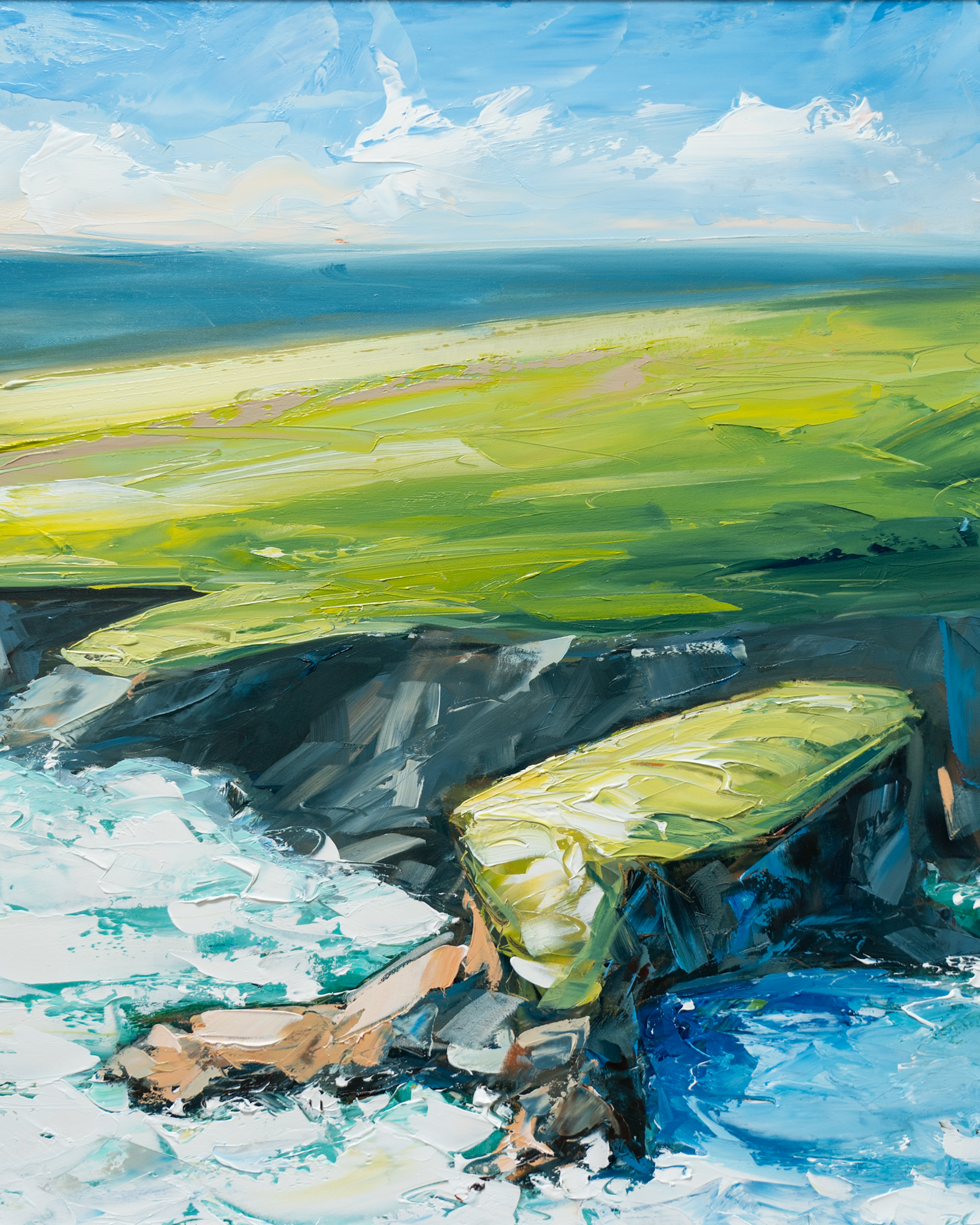 The powerful and majestic coastline along the Loop Head Peninsula, West Clare – combined with the beautiful, vivid palettes and fearless strokes of contemporary artist David Coyne – make for the most amazing paintings.