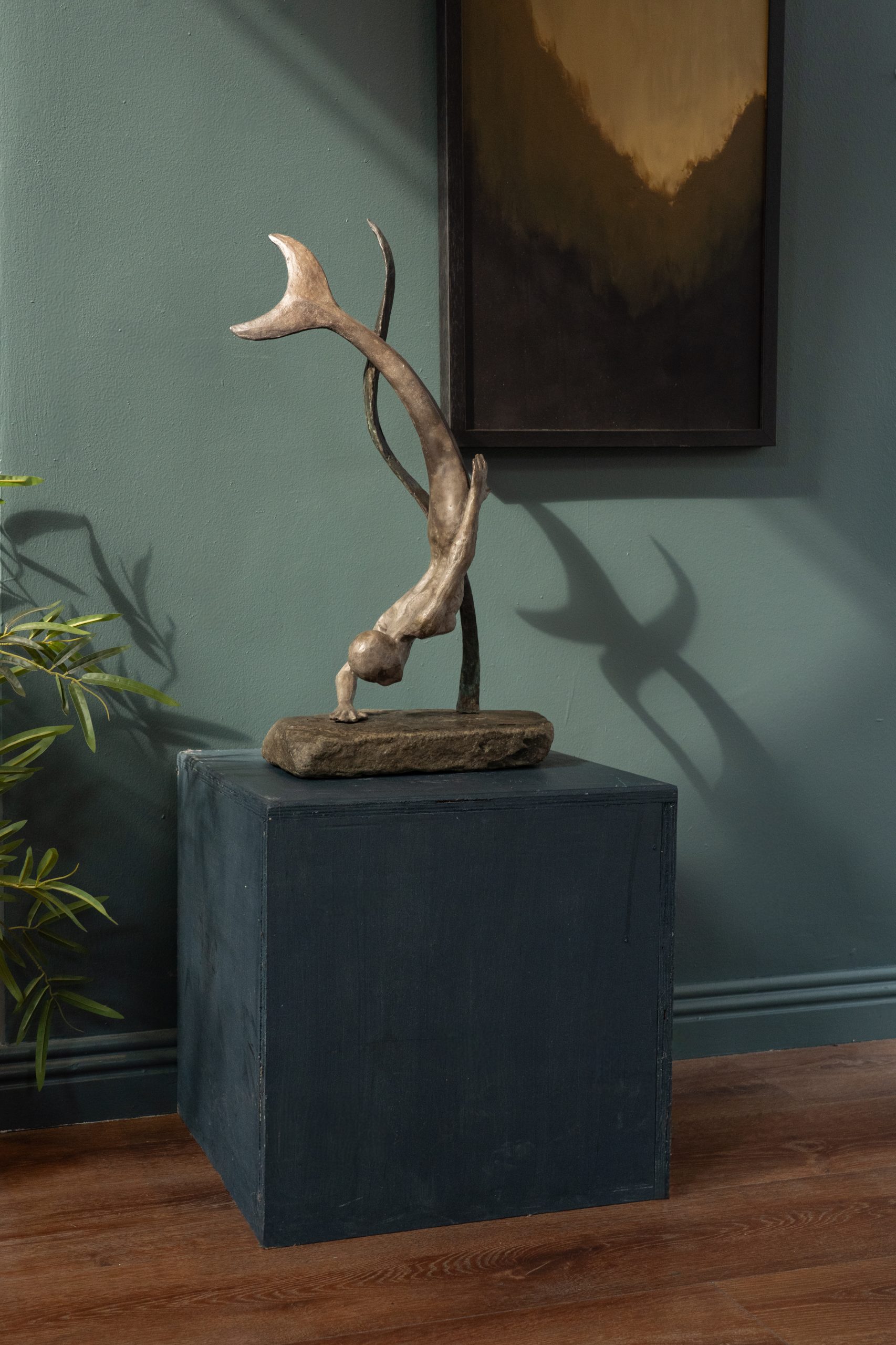 Having spent some time sculpting pieces that were associated with nature, the wilderness, the earths life cycle and indeed how all of that often interacted with our ancient mythology, Adam has turned his attention to the water with this beautiful and elegant Mermaid statue in bronze.