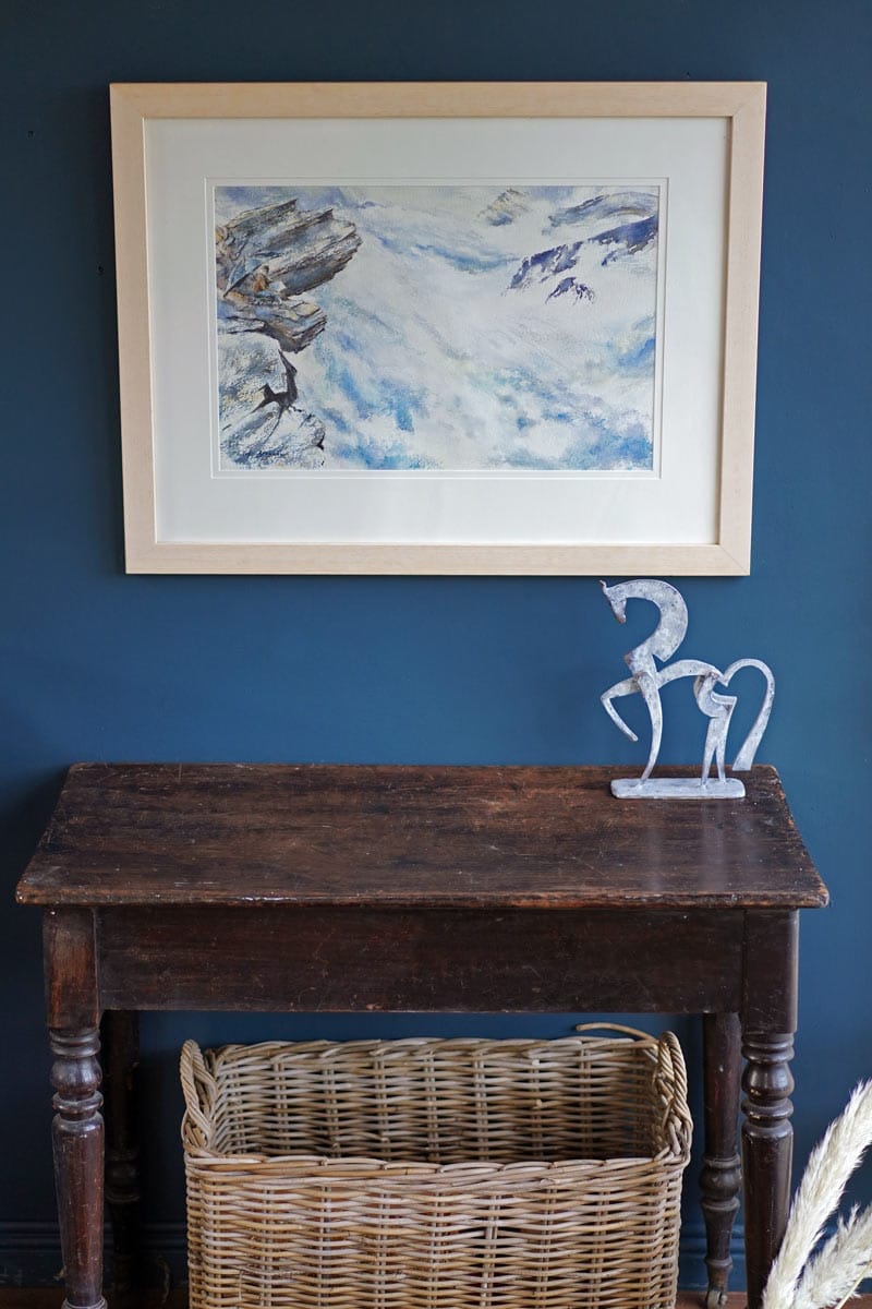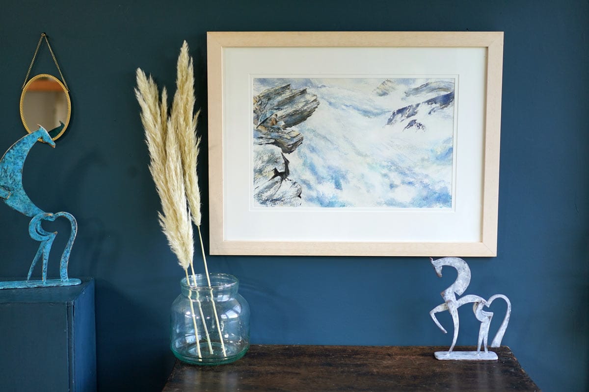 An area of geological phenomena, along our amazing and rugged West Clare coastline, hidden from most, but special to those ‘in the know’ is the extraordinarily shaped ‘Fisherman’s Point’ in Ross, Loop Head. Consisting of layered rock, in the most unusual shape that appears like a big wave – this rock (in the far right of this painting) is a famous point with fishermen going back many generations. Captured powerfully by artist Phil Brennan, the delicate nature of the watercolour is almost in contradiction, in some ways, to the stormy seas and writhing waves that are being depicted within.