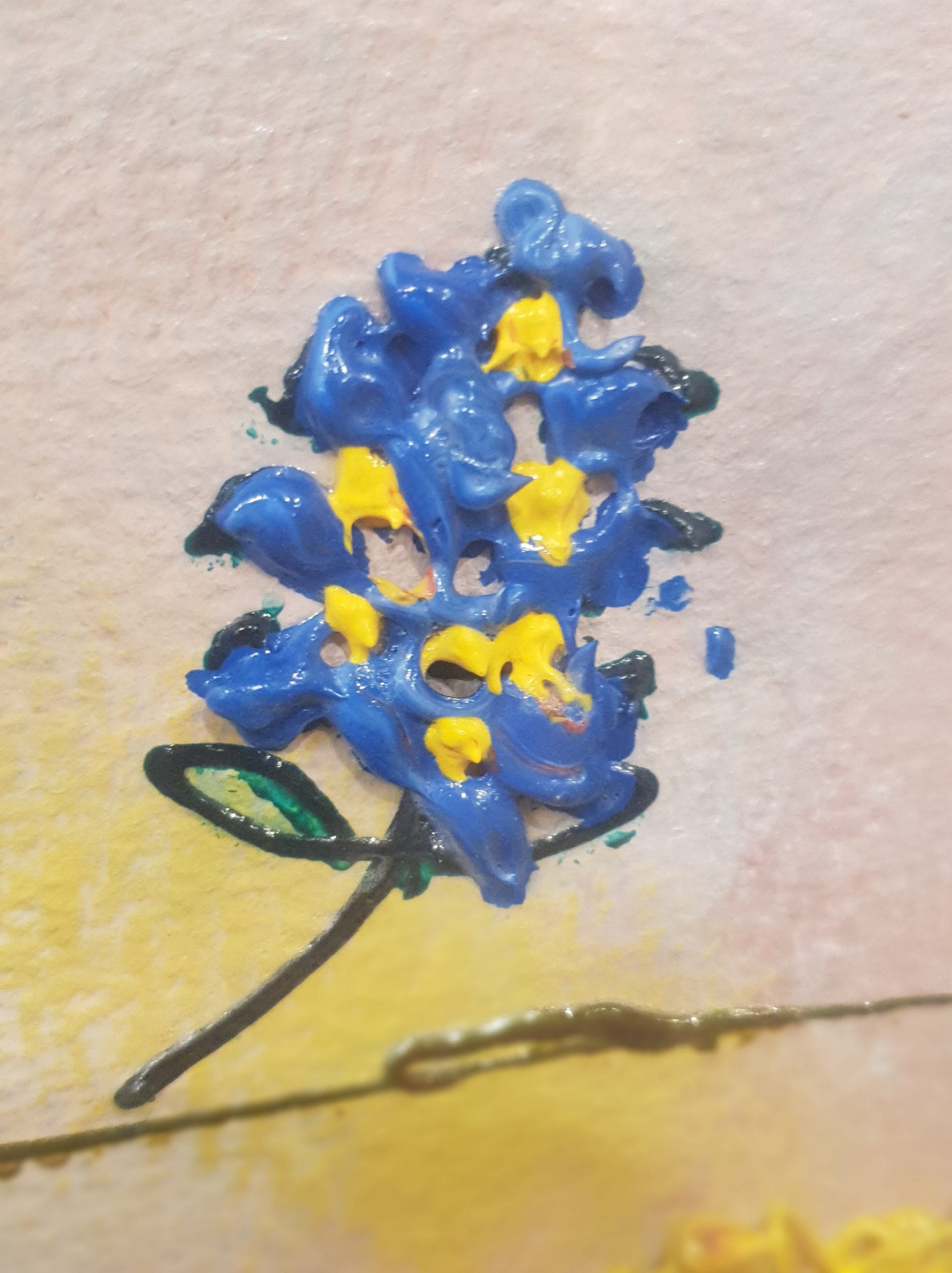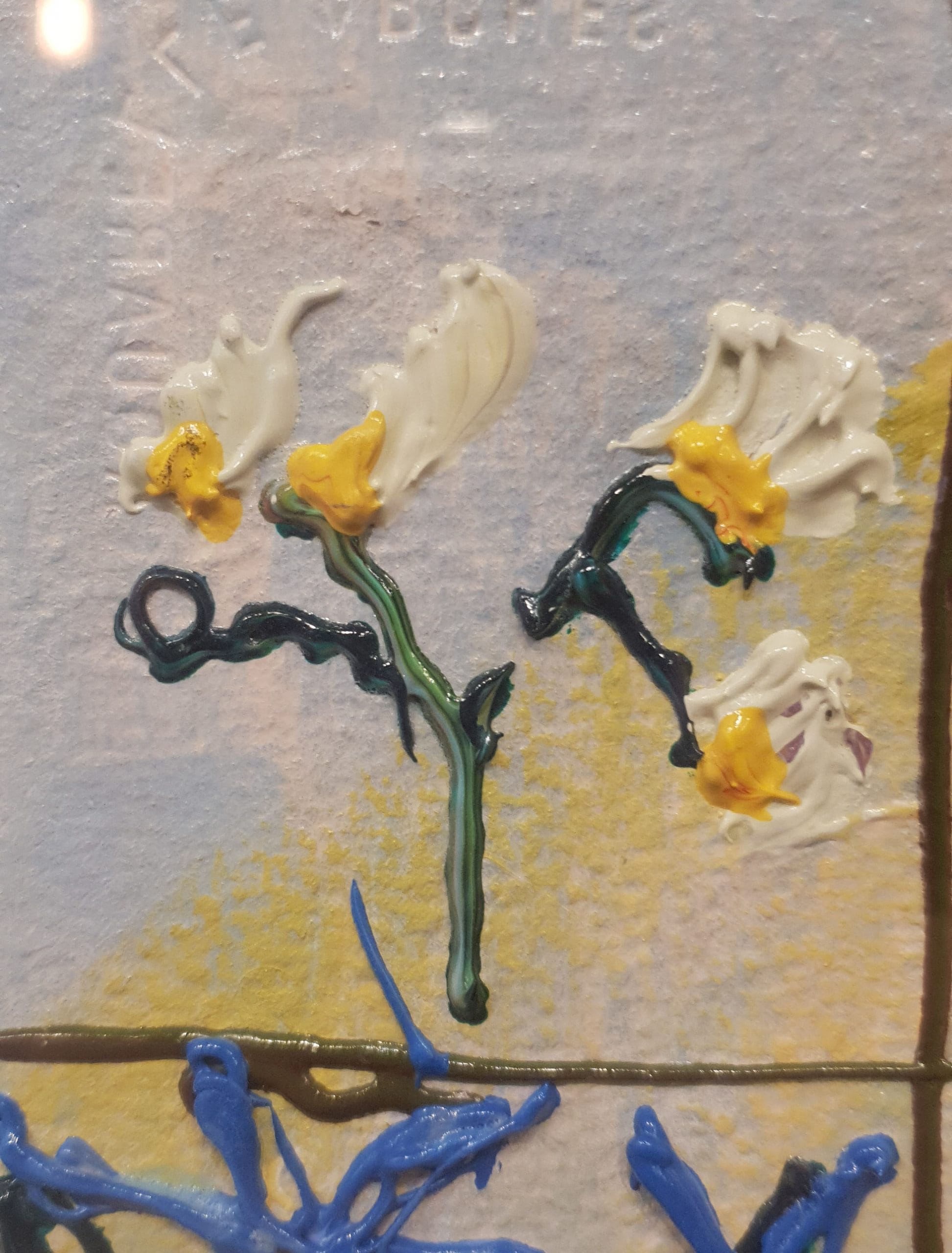 One of our current favorite pieces in the gallery, ‘Flower Portal’ by Carmel T Madigan, is another example of her immense versatility and creativity. Layered oils on parchment, this beautiful piece of original art is an ode to the wildflowers of West Clare, painted cleverly in the style of that of a scrapbook page, adorned with the most beautiful of specimens of local flora. This piece is a wonderful size and price.