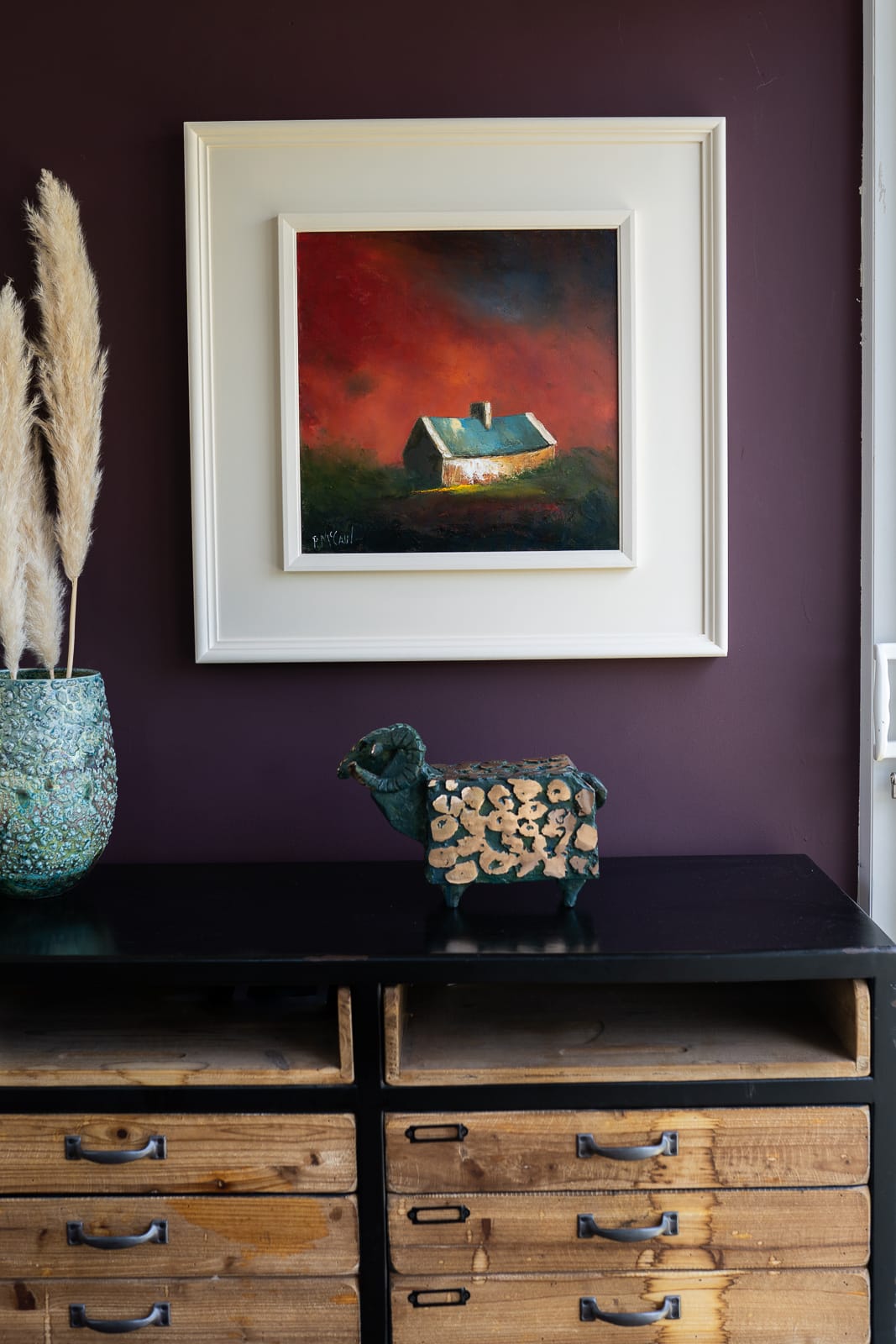 This Padraig McCaul original makes a breath-taking statement. The impact of the strong burnt orange and deep reds depicted in the evening sky is truly awesome. Padraig McCaul’s signature style of warm but punchy colour tones, combined with his minimalistic approach to the subject matter, leaves no room for distraction and draws a rather powerful reaction.