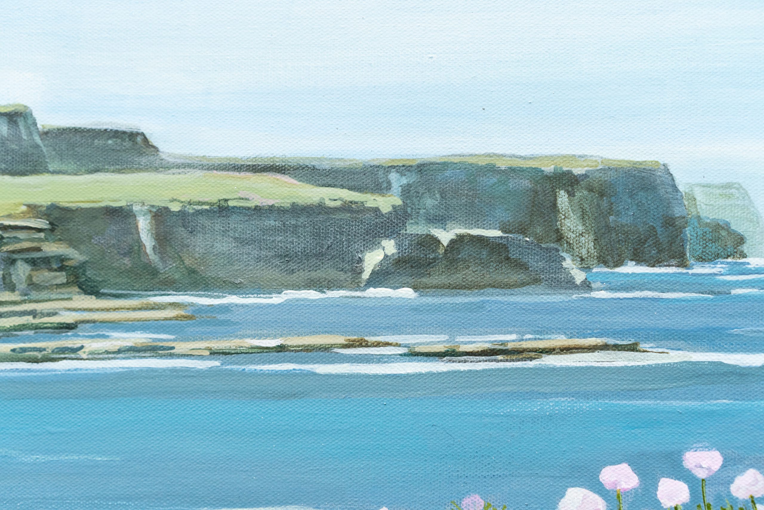 This gorgeous original acrylic by Ruth Wood, depicts an impressive view, across Kilkee Bay on the Loop Head Peninsula, West Clare.