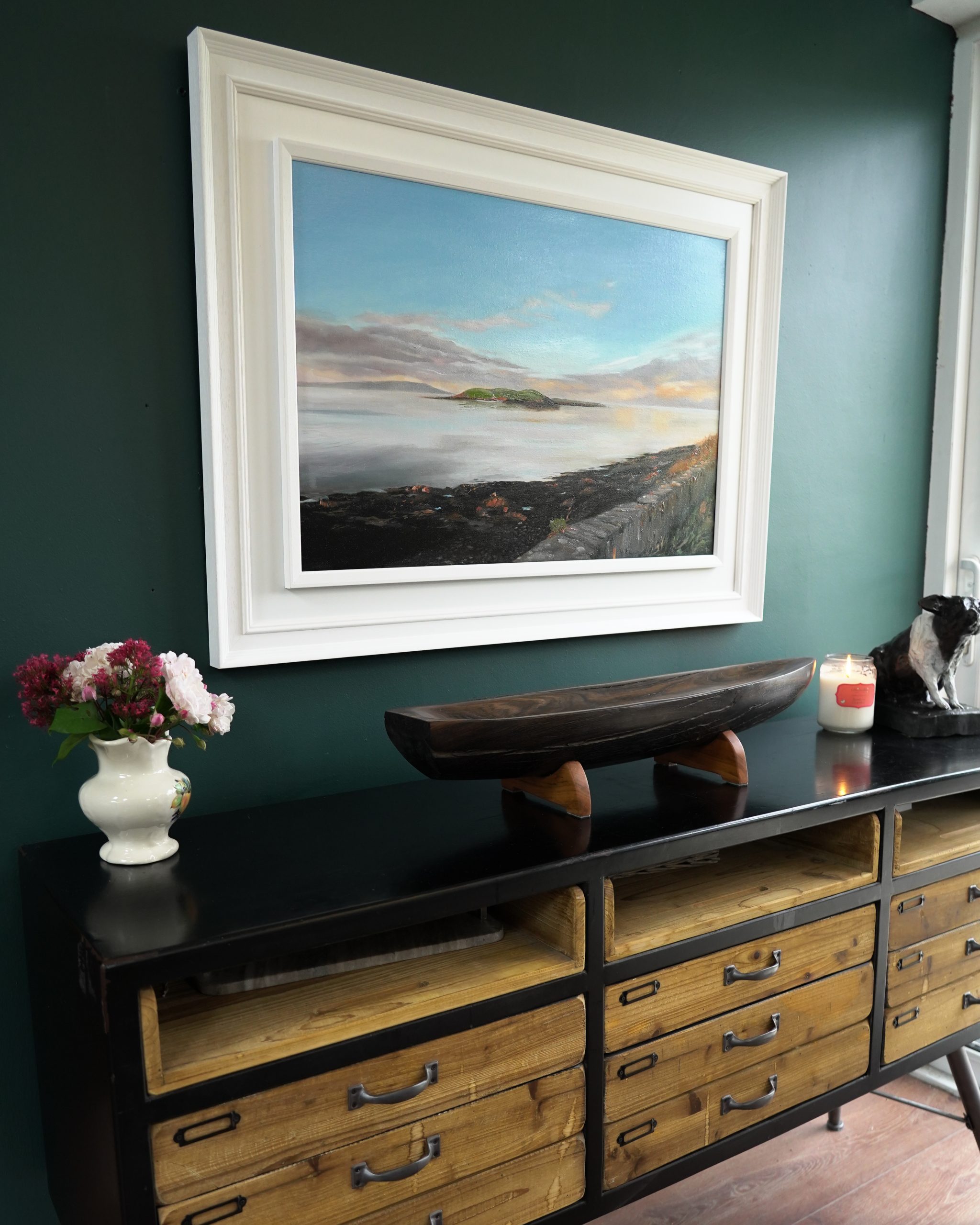 Irish contemporary art – artist signing their work as ‘D’ – West Clare artist – oils on canvas – Original Oil Painting  – artists view – hog island – collectable work