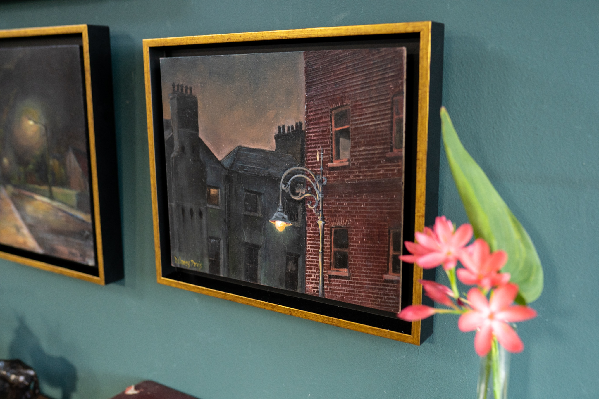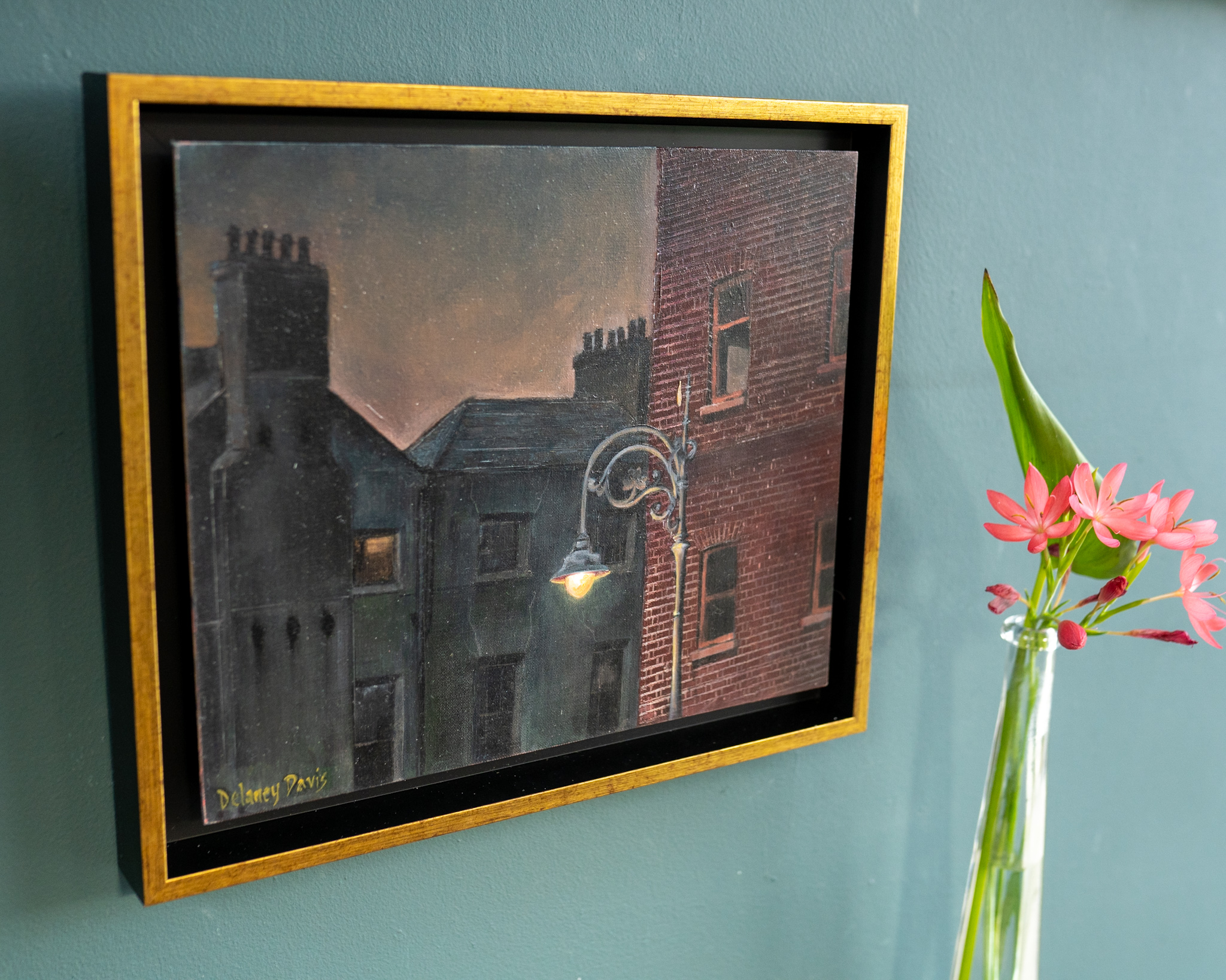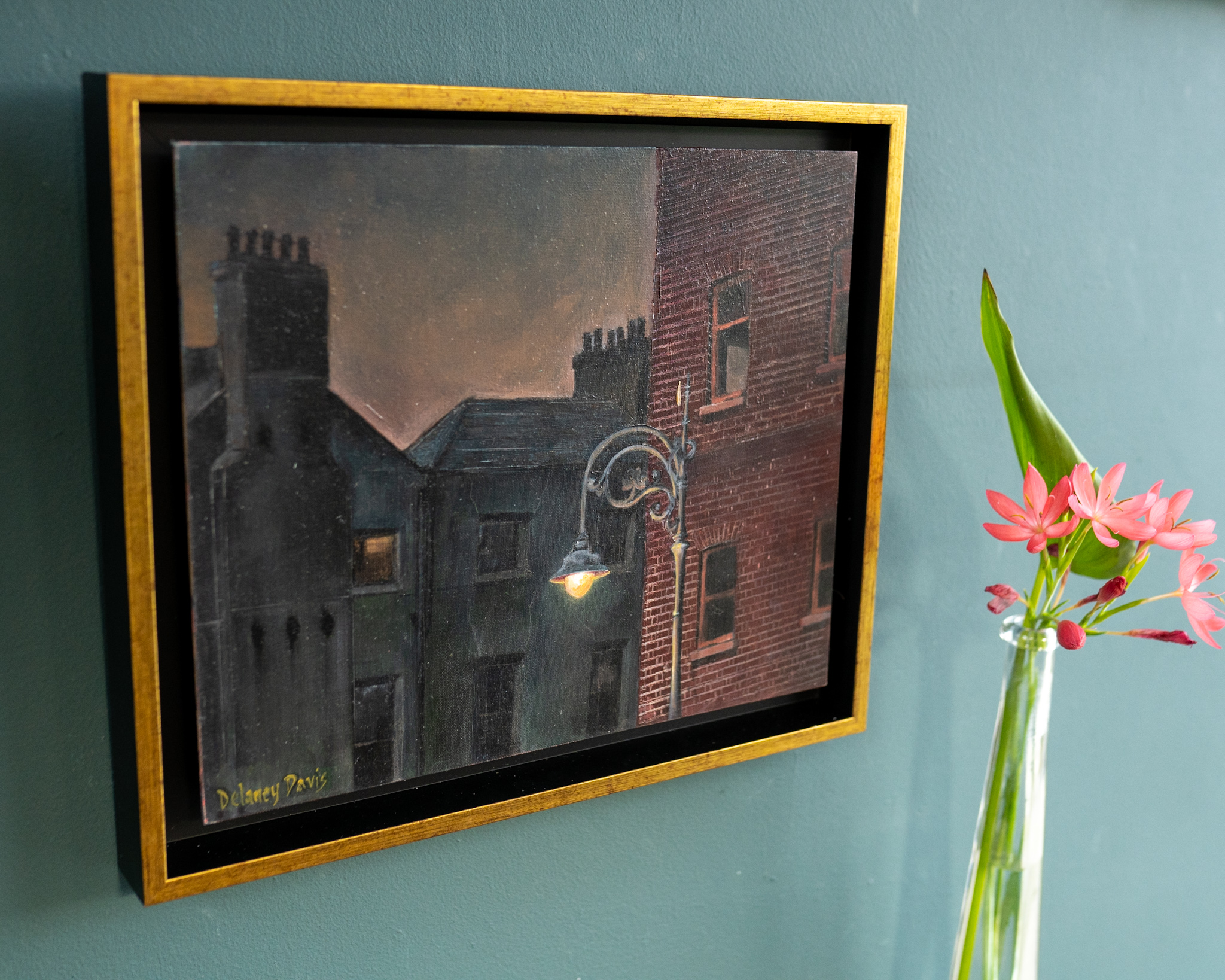 Drawn to painting urban cityscapes, there is such a fascinatingly honest and authentic feel to Delaney’s work. She likes to choose locations and subjects that are generally overlooked by most of us going through our busy days. She sees beauty in the, perhaps, less obvious features, in the darkness, in the shadows, in the gritty and the industrial, from roadsides, to overhead wires to dark alleyways. Her work is wonderfully contemporary and fantastically collectable. Any of Delaney’s paintings would look superb in either a super, contemporary, modern space – as well as being equally charming in a cosy office or study or traditional living space.