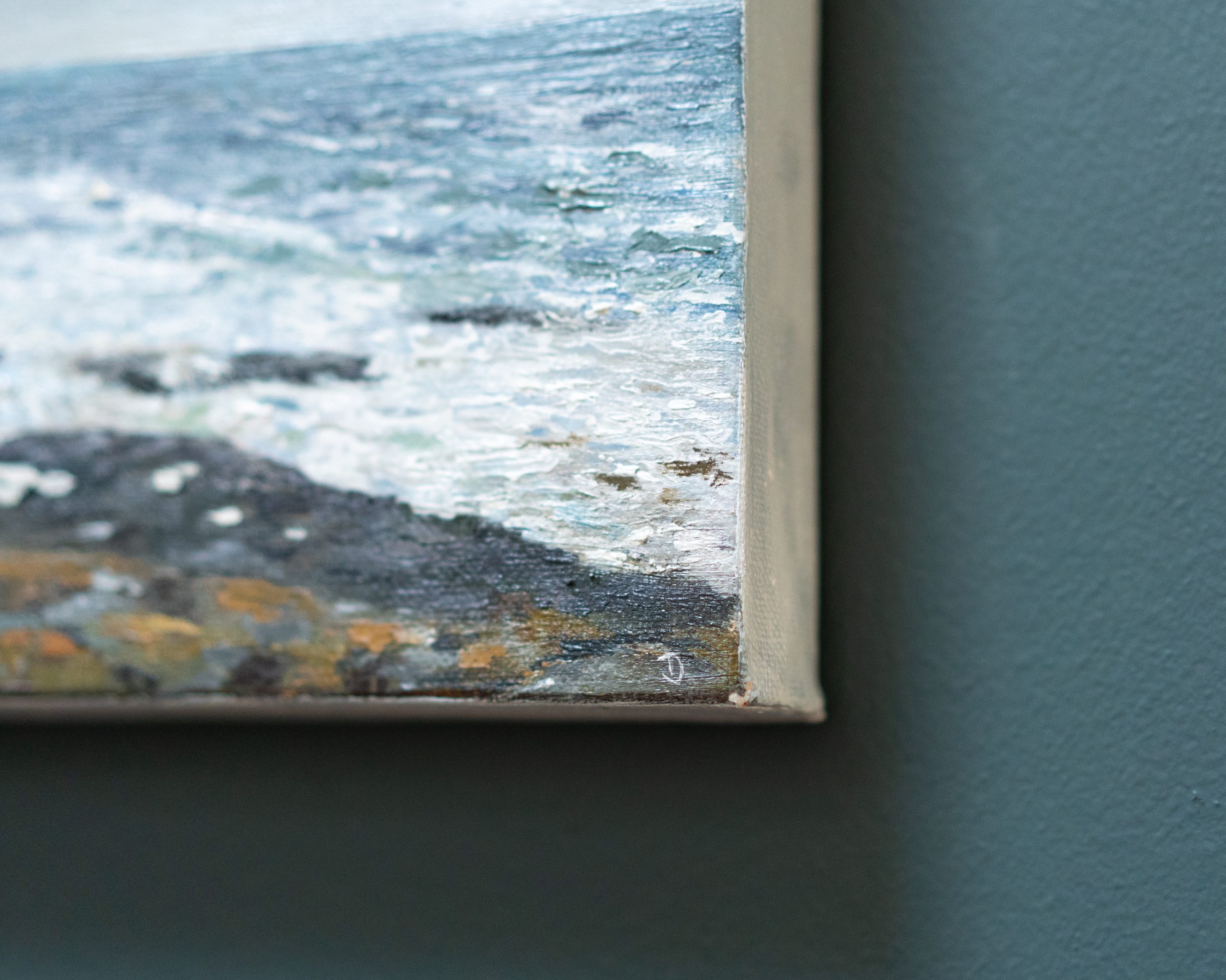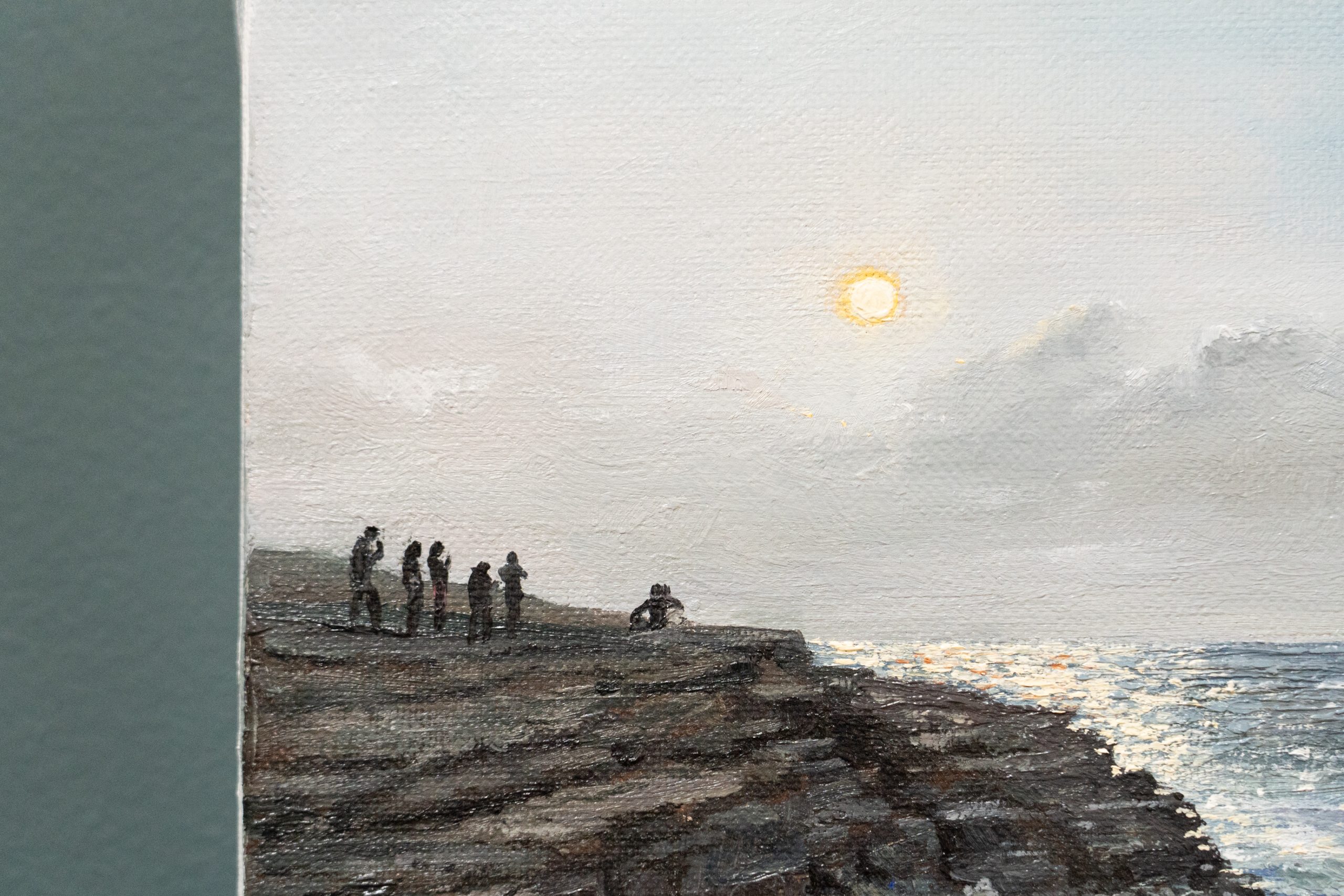 This extraordinary, contemporary artist captures here in oils, the most beautiful atmosphere, people gathering, the warmth and happiness, the sun on the water, the lichen on the rocks; another beautiful piece of work.