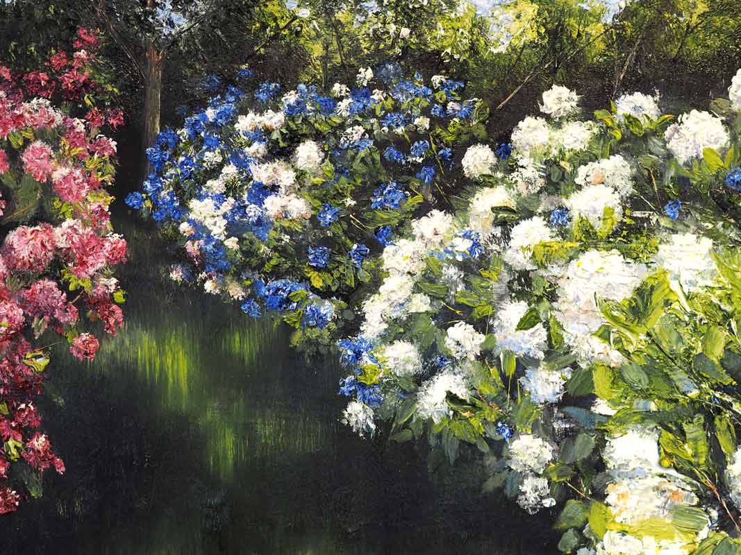 Known for his incredibly realistic depictions of nature, Mark Eldred’s floral and forest paintings have become hugely sought after. Here, his representation of Hydrangeas in bloom, is a gorgeous throw back to our mothers, grandmothers or friendly neighbours front gardens and to this day – the Hydrangea continues to play a big role on the Irish gardening landscape. This beautiful painting by Mark Eldred is almost nostalgic in that respect – and you can almost touch the big petal blooms.