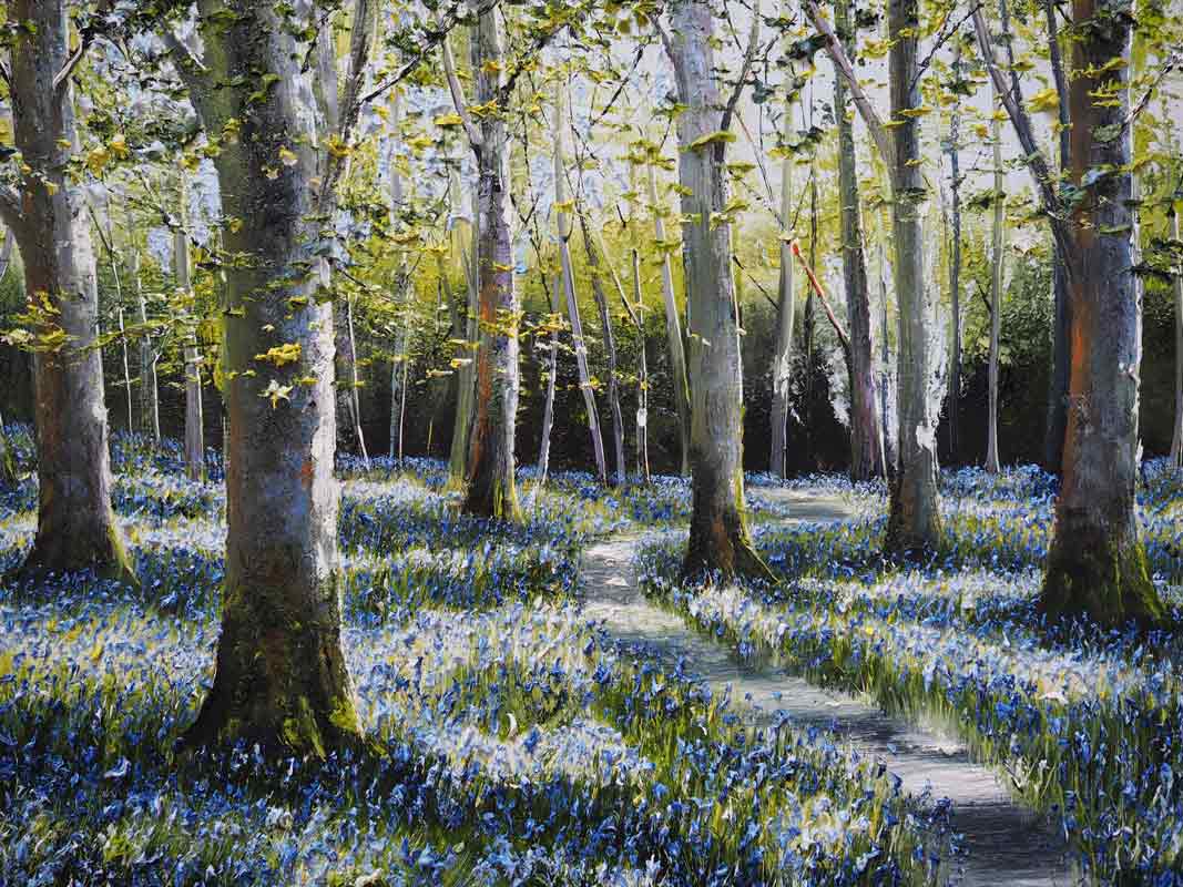 Renowned for his striking forest scenes, Eldred transports you from wherever you are in the world, to the sweet smelling, fresh air and total stillness of a forest walk. The light captured in his paintings is always nothing short of masterful. His ability to create with oils, what feels like a three dimensional image where depth and perspective and incredible detail, all come into play, is rather astounding.