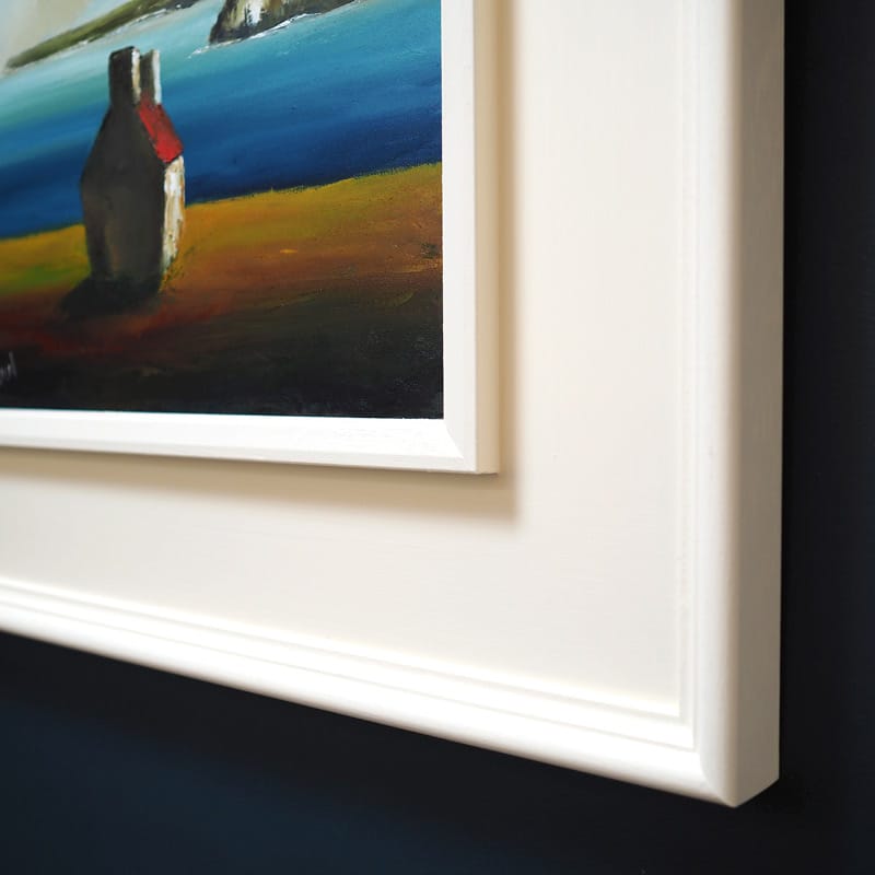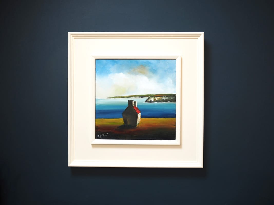 Living and running a Gallery on a peninsula such as we are, the term ‘On the Edge’ certainly rings very true. The rugged West Clare coastline is a constant in our lives, the sea our familiar friend, and overlooking the Atlantic everyday, being exposed to its ever changing tides and moods, makes for a varied way of life. McCauls depiction of a cottage on the edge, is a peaceful and calm view that draws you right into the painting.