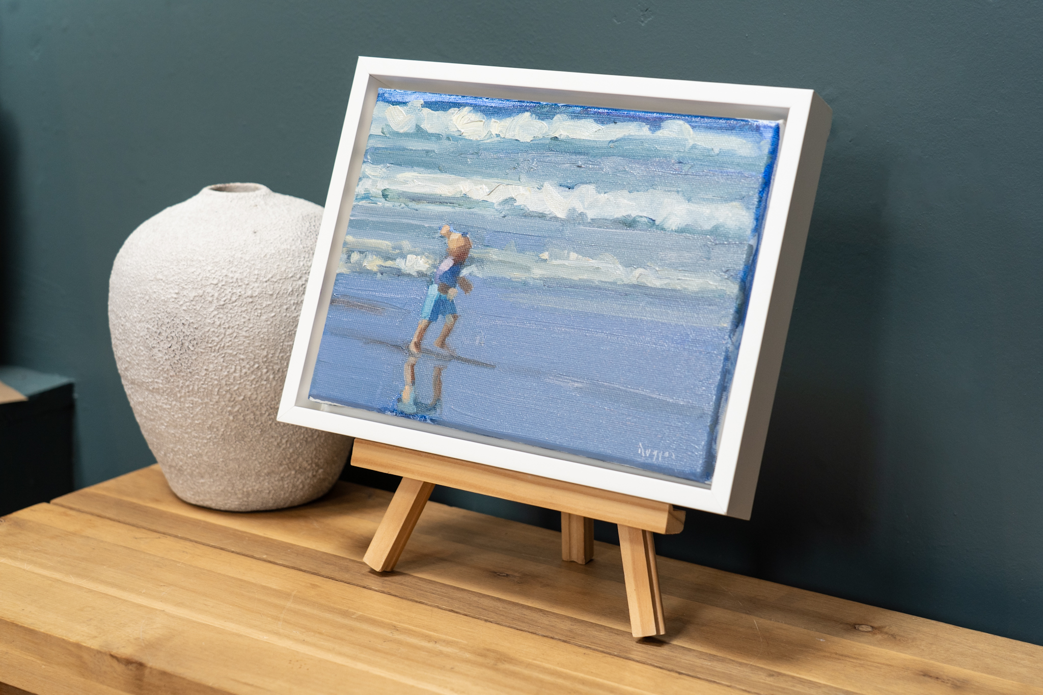 Stunning original painting of a child on the shore by one of Ireland’s celebrated contemporary artists Bairbre Duggan.