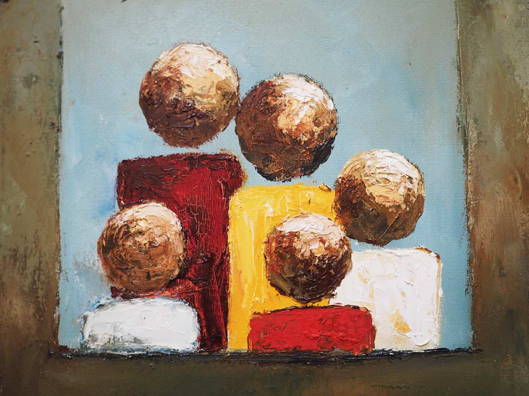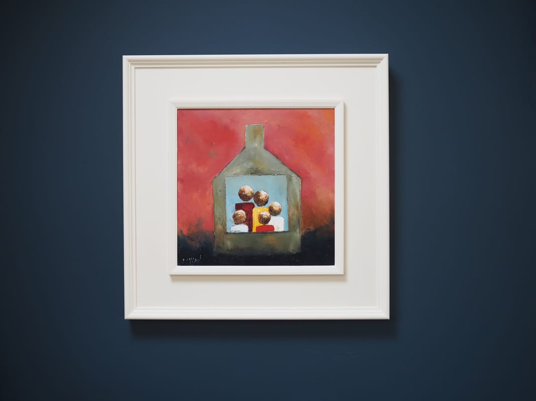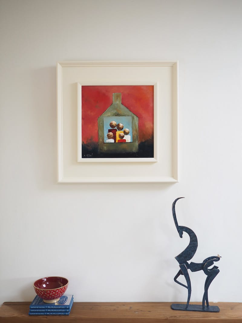Best known for his atmospheric landscapes, his incredible colour palettes, his rusty roofs and his curious, island sheep, it is interesting that even when he produces something quite different, such as his stylised people seen here, it is always still instantly recognisable as a McCaul painting. There is something masterful about the way he puts colours together and like all of his paintings, they jump off the wall with vibrancy. This one, called ‘Our Home’ is quite self explanatory in terms of subject matter; but the colours and abstract nature of it are truly striking.