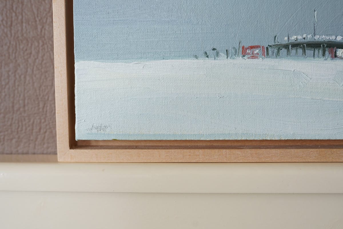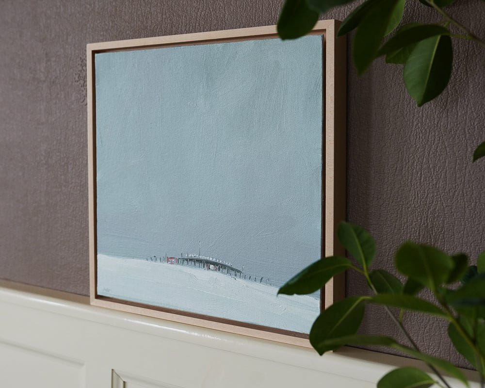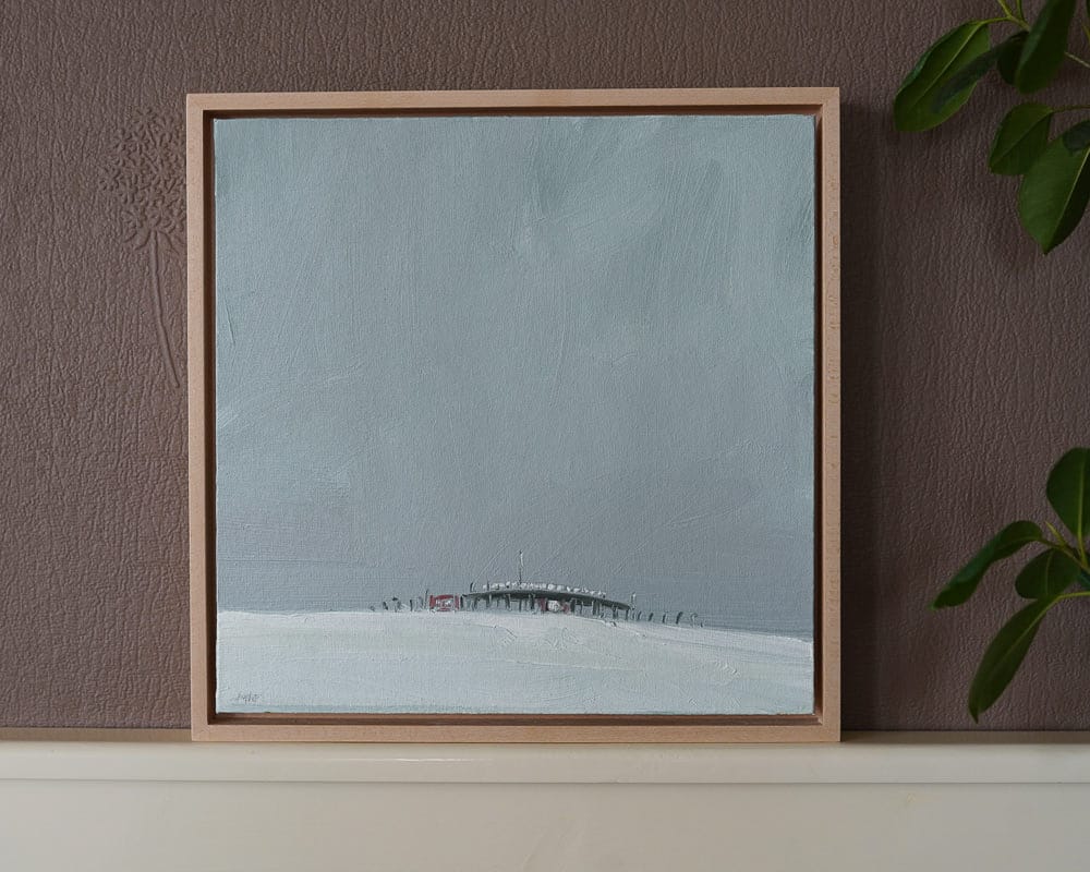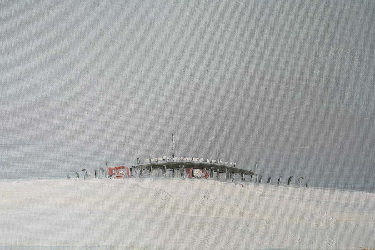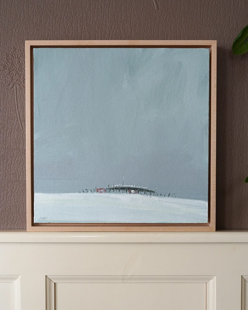 Kaye is a master of depicting distance and perspective in her paintings. Using oils to cleverly create an ambience, an atmosphere, to build a scene, to convey a deep weather situation, to bring you right there – and then somewhere in the distance, you spot the focal point. In this instance, the Outer Radar Building, Shannon Airport. Here she combines her love of industrial buildings with her love of open spaces.