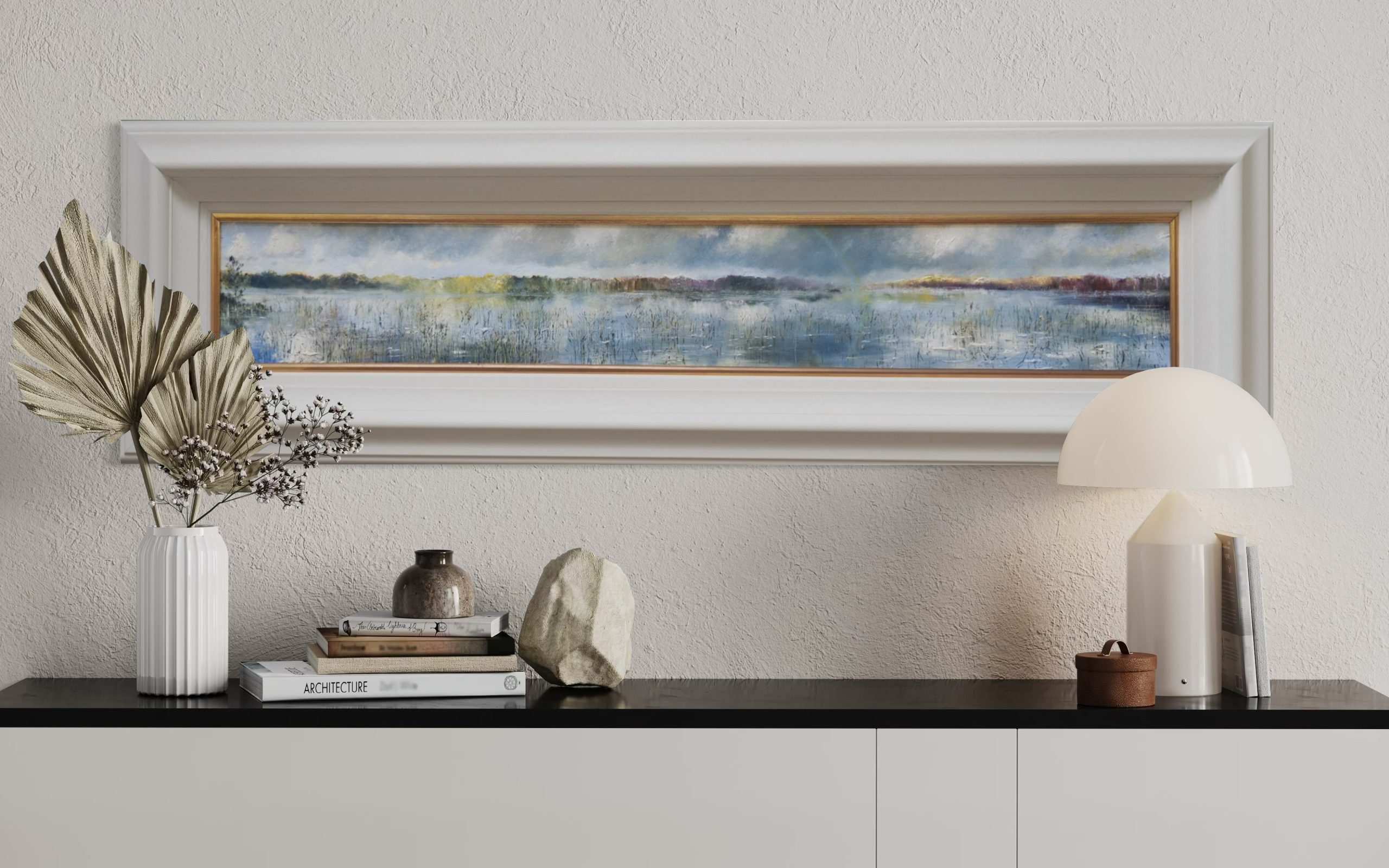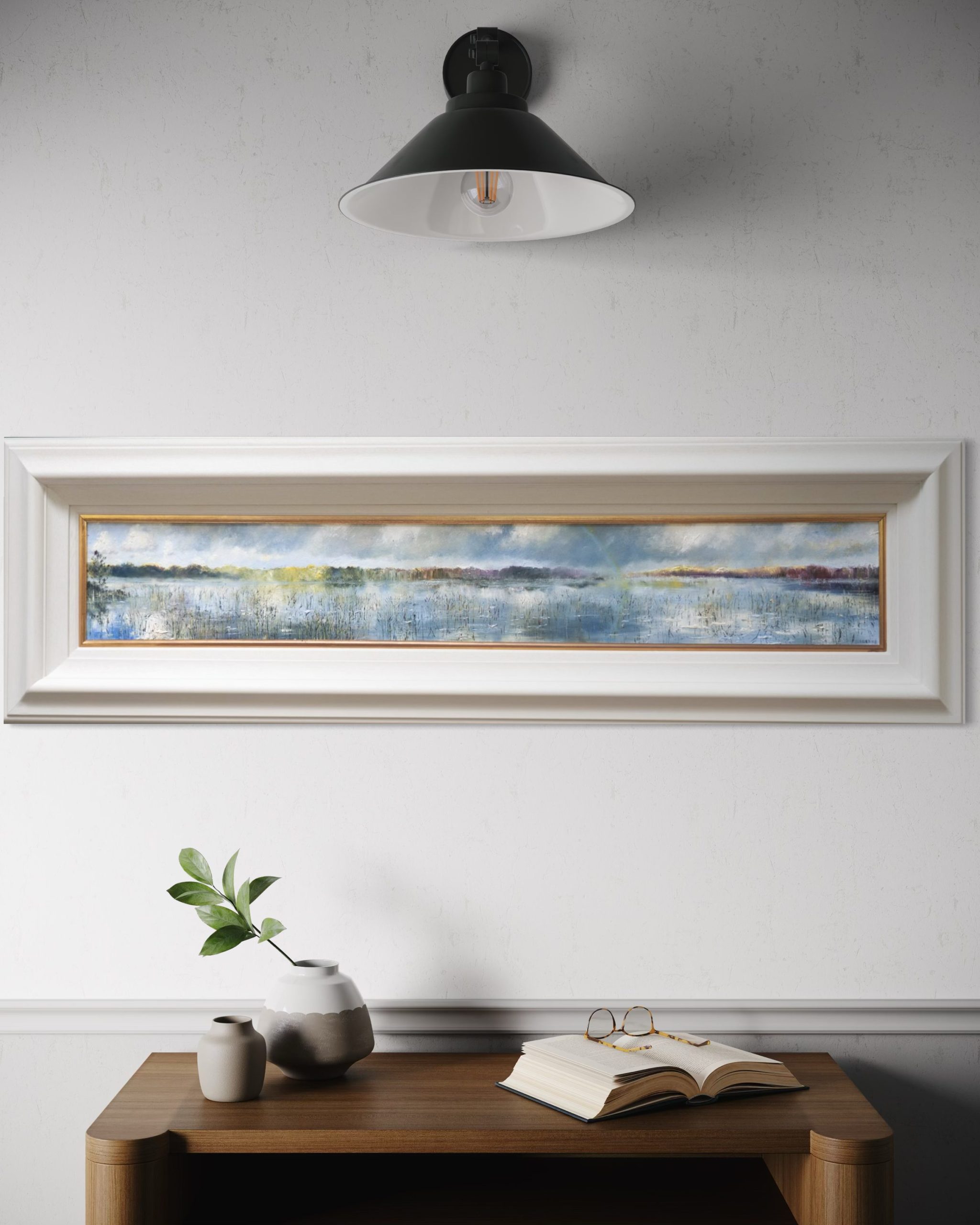 56″(143cm) x 17″(43cm) – long landscape shape – measurements include the frame