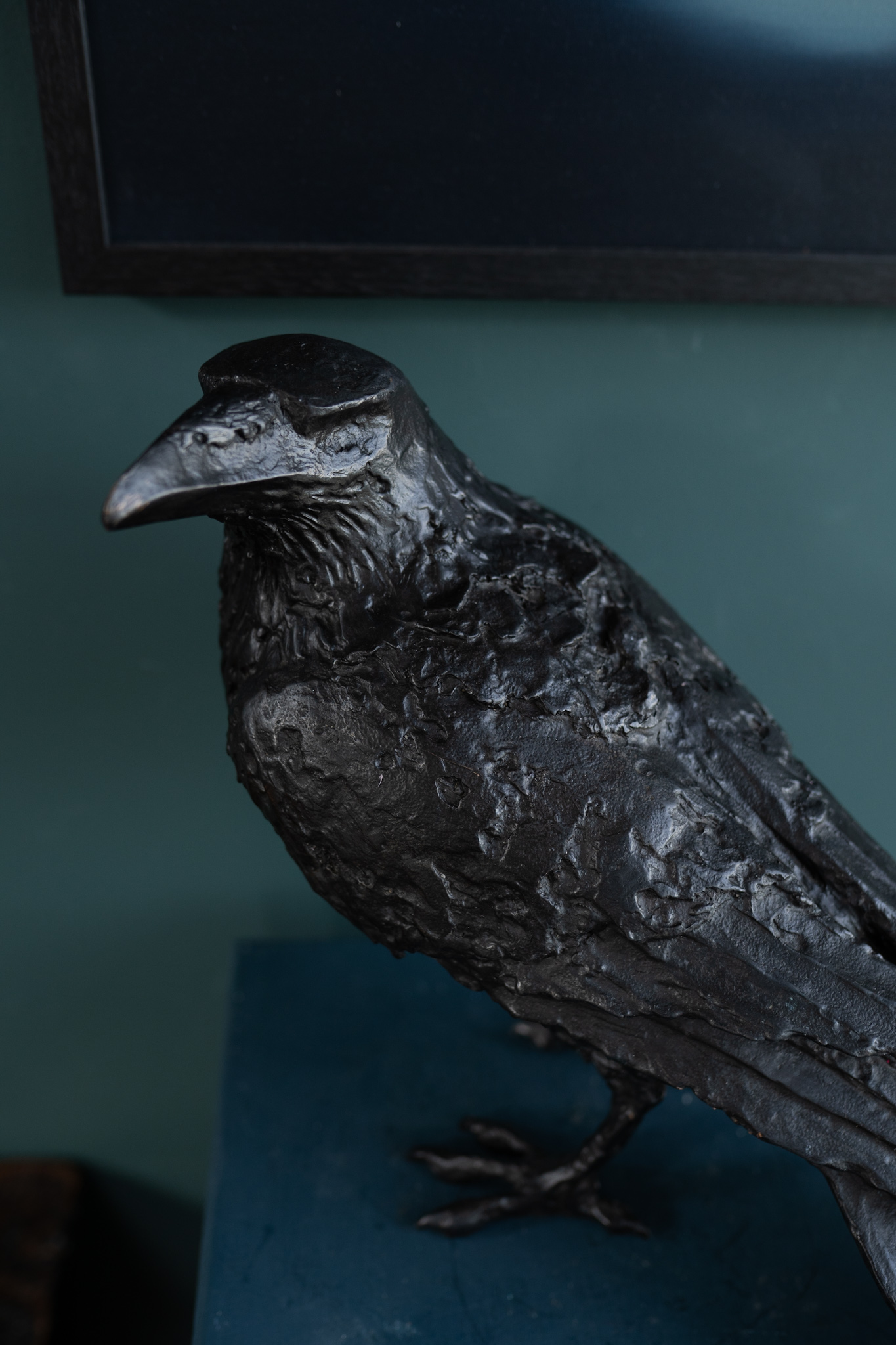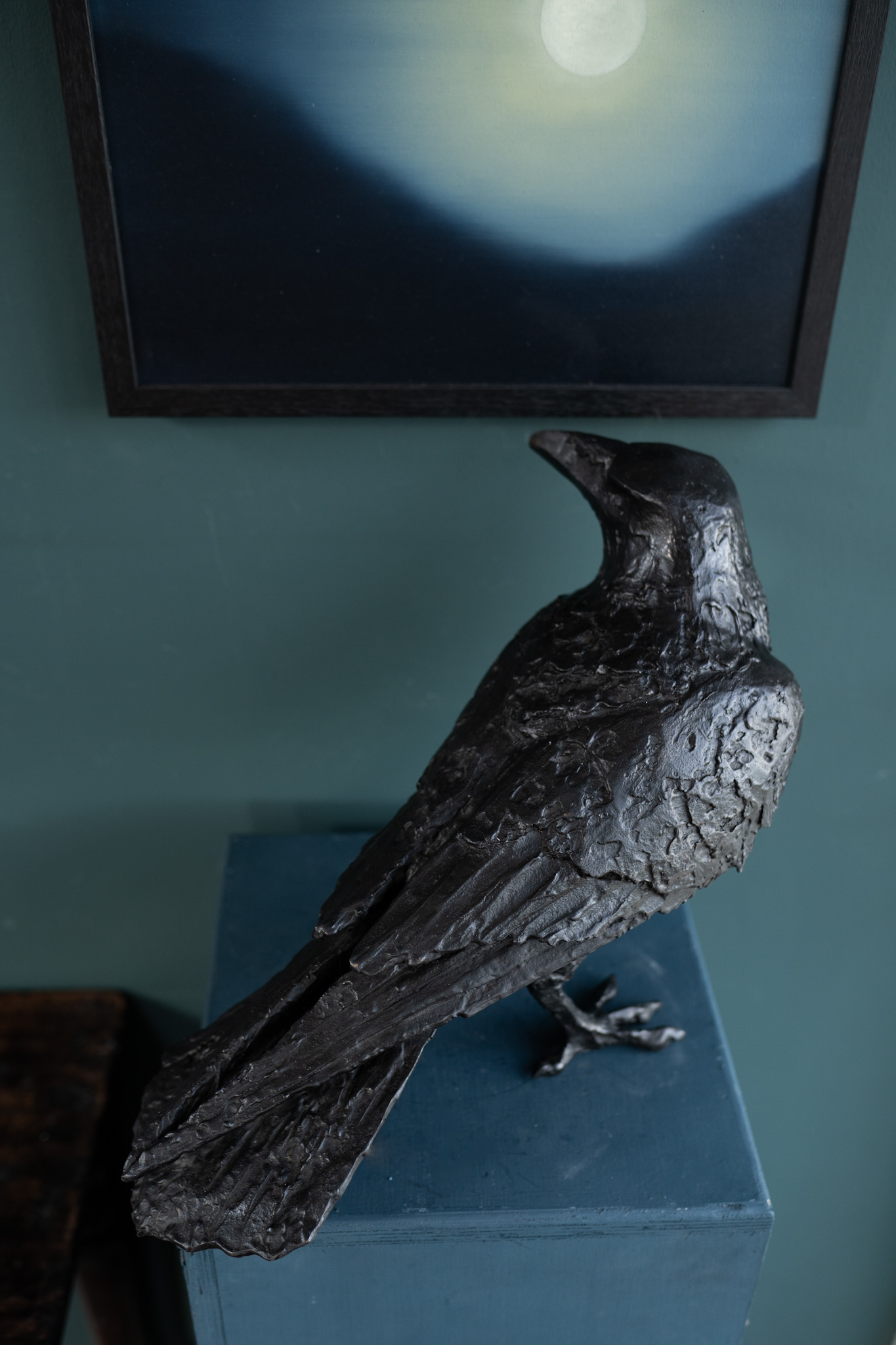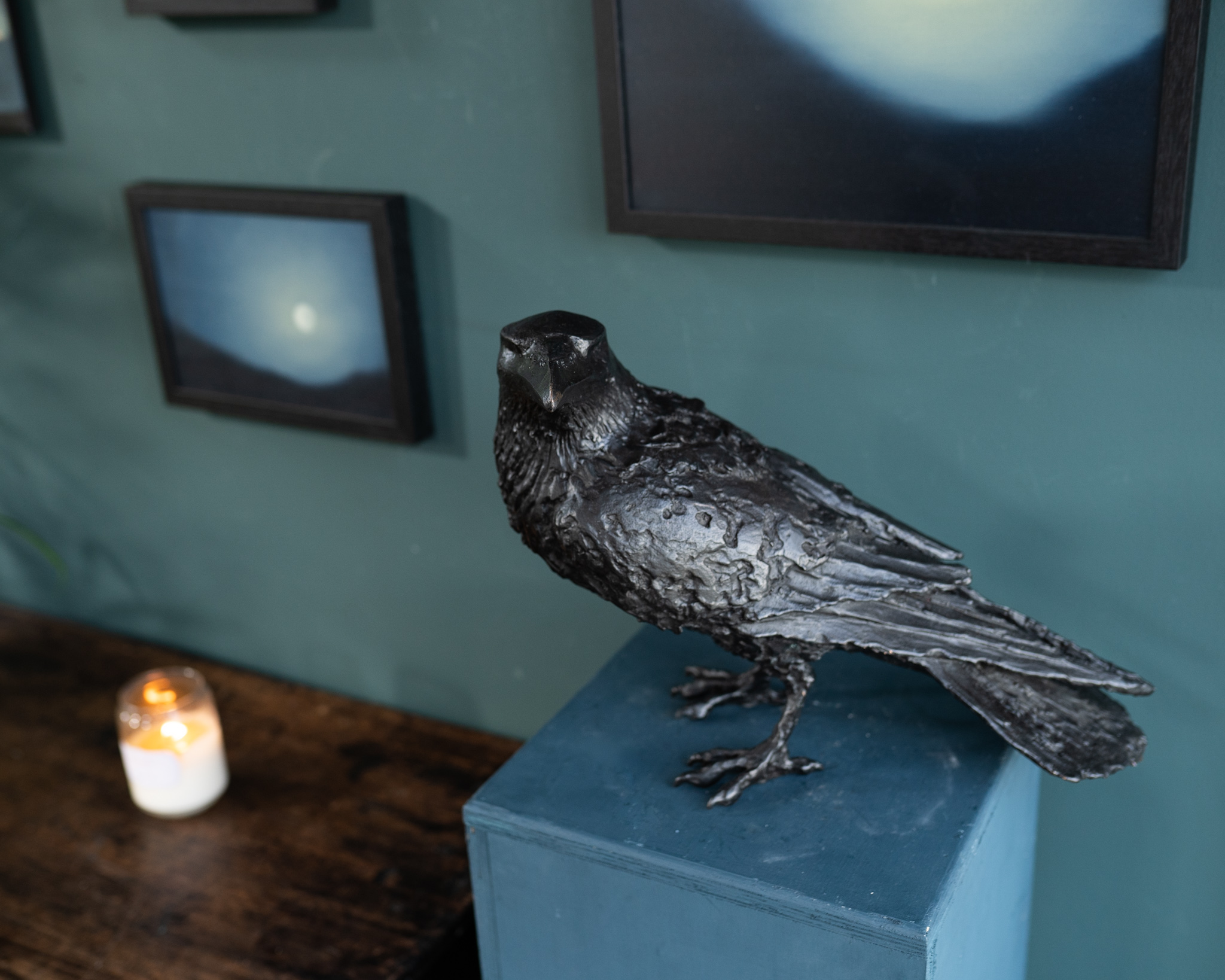 Artist and sculptor Adam Pomeroy has created this beautiful and incredibly striking, life-size, bronze raven. Everything from its stance, its shape, the turn of the head, the texture of its bronze feathers; everything is beautifully and meticulously sculpted, and metal finished by the artist’s own hands. This rather heavy piece of bronze sculpture would look absolutely incredible in an entrance hall, a foyer or indeed outside on a column or pillar. You could also imagine this looking extremely impressive in a study, or office space.