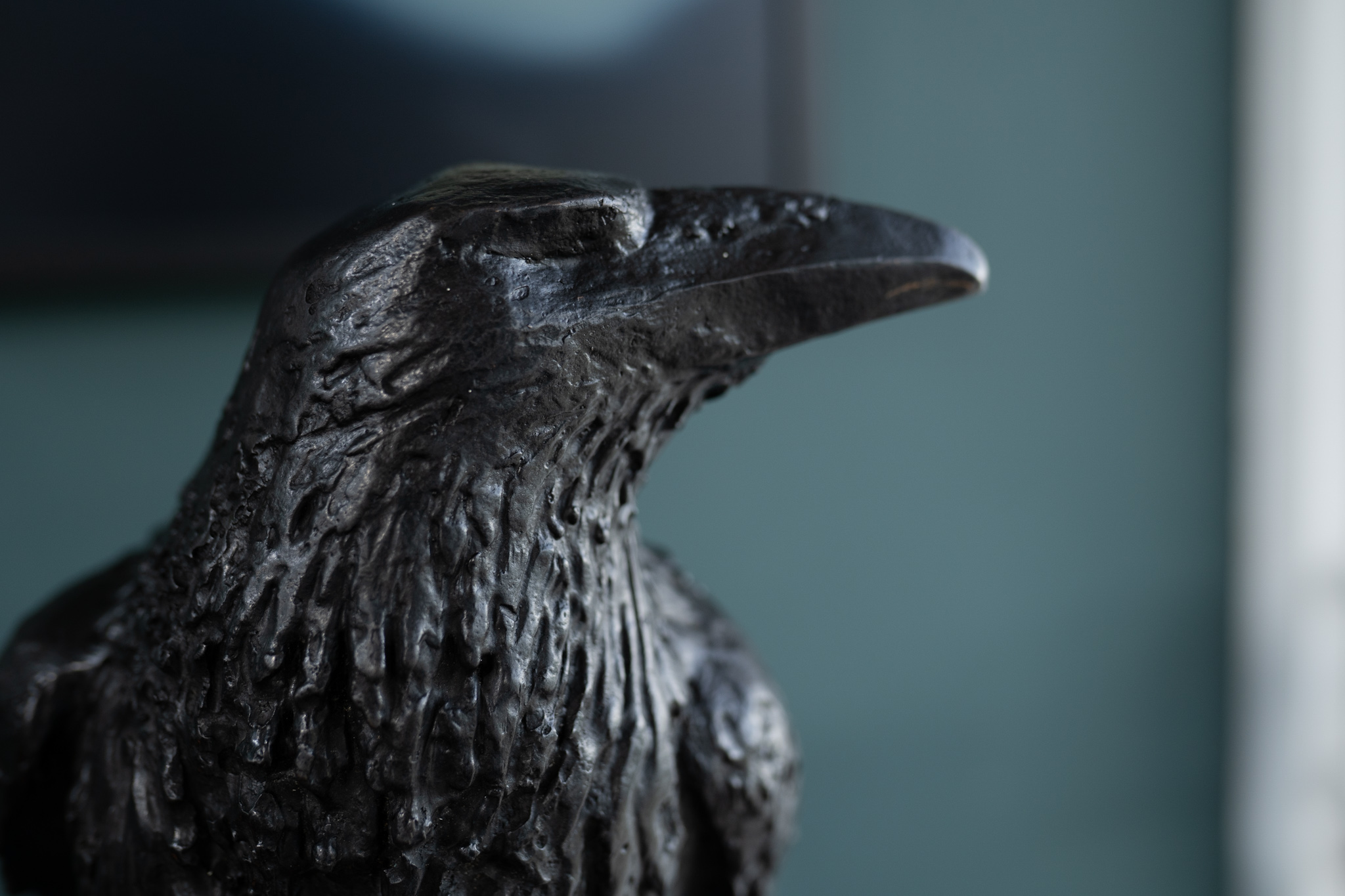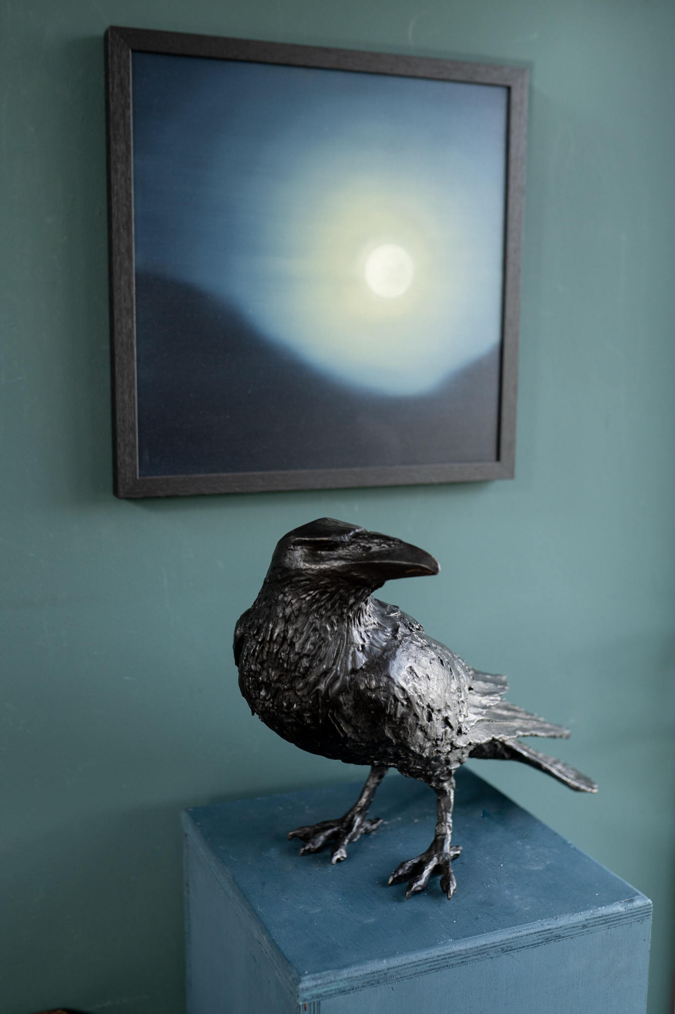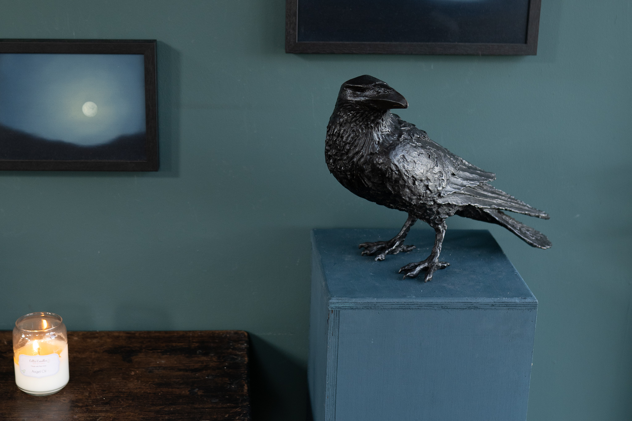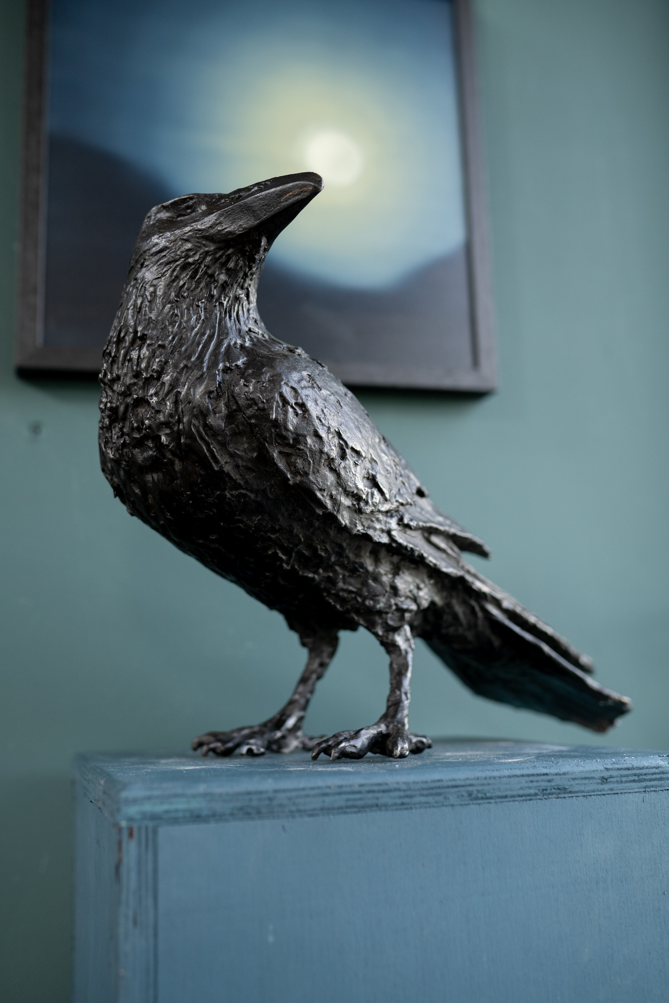 Artist and sculptor Adam Pomeroy has created this beautiful and incredibly striking, life-size, bronze raven. Everything from its stance, its shape, the turn of the head, the texture of its bronze feathers; everything is beautifully and meticulously sculpted, and metal finished by the artist’s own hands. This rather heavy piece of bronze sculpture would look absolutely incredible in an entrance hall, a foyer or indeed outside on a column or pillar. You could also imagine this looking extremely impressive in a study, or office space.