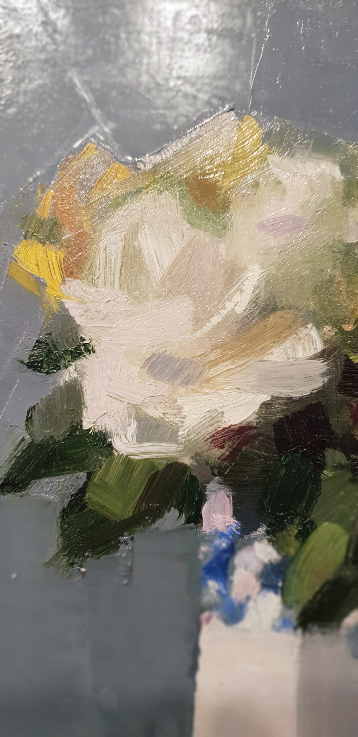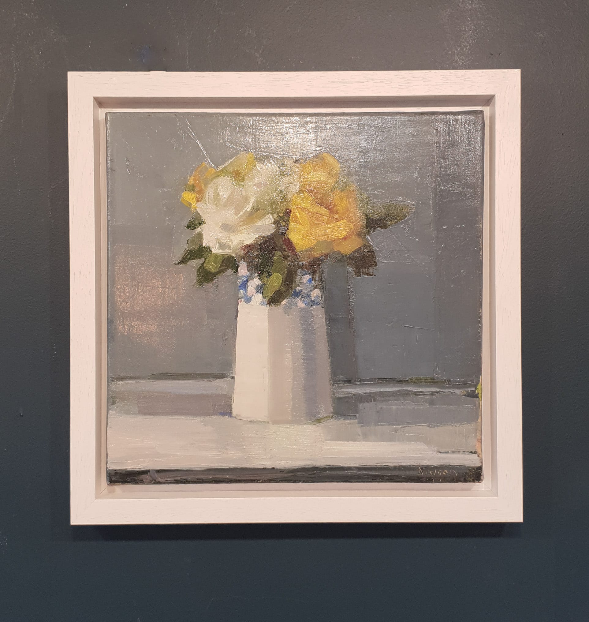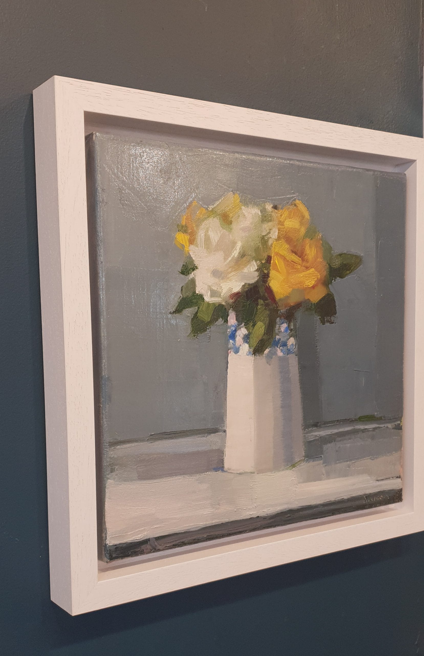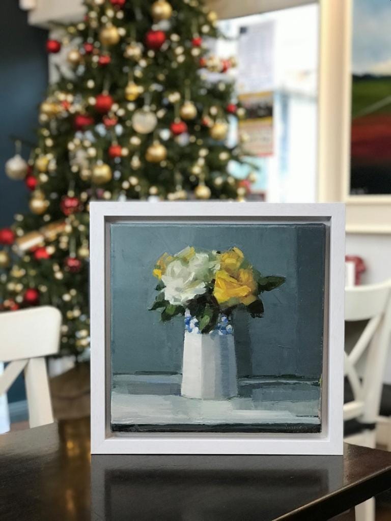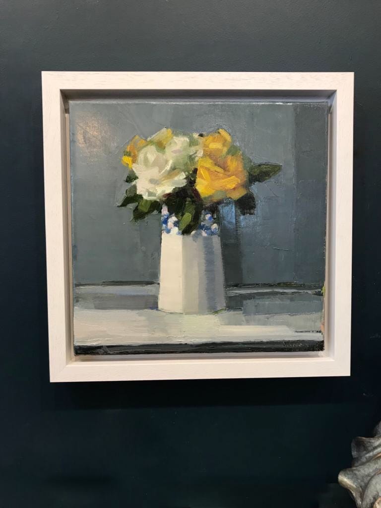 Here, with deliberate brush strokes but rather a delicate colour palette and gorgeous light and shade, is the original oil on canvas entitled YELLOW ROSE – a quiet yet impactful still life.