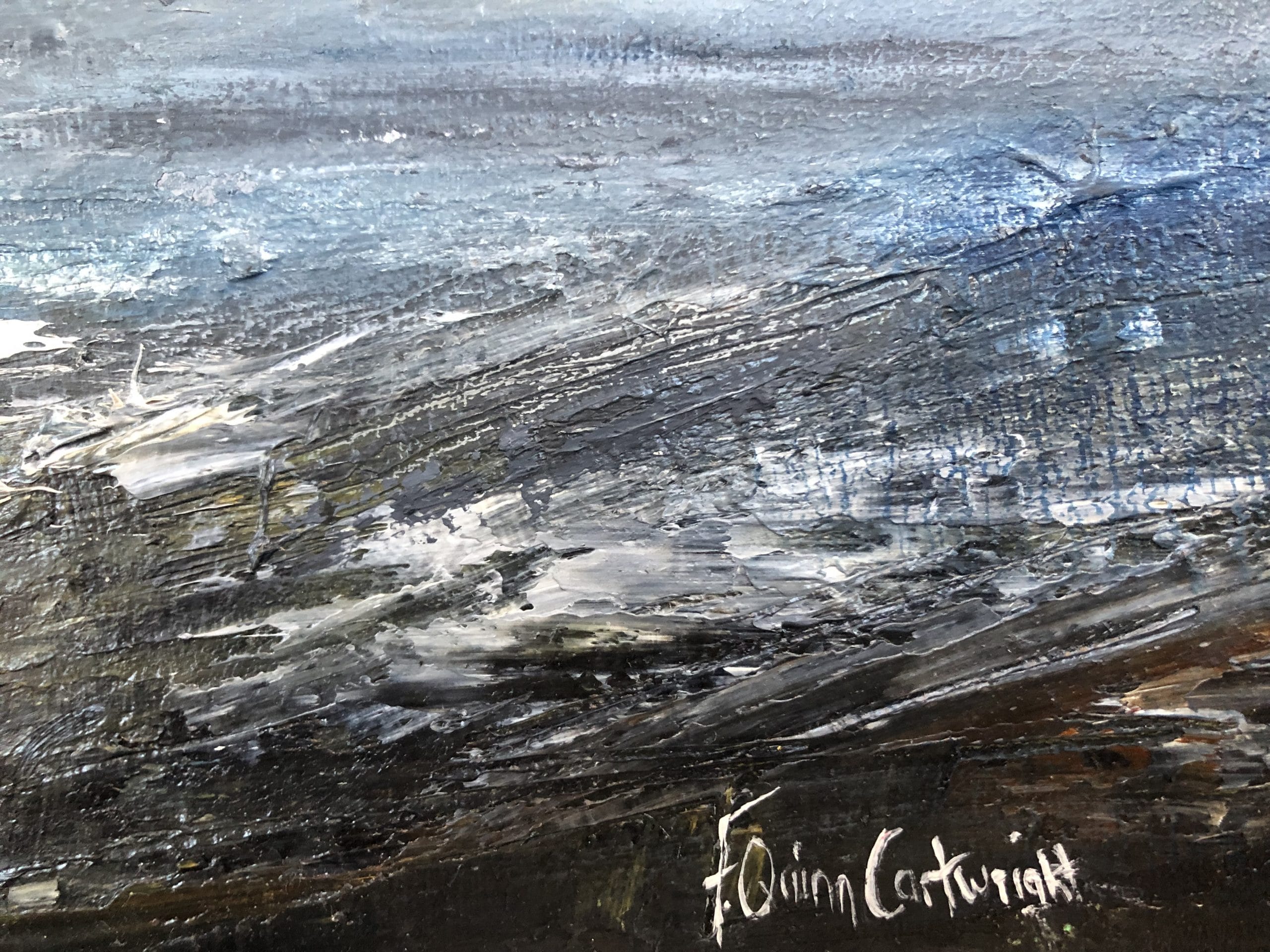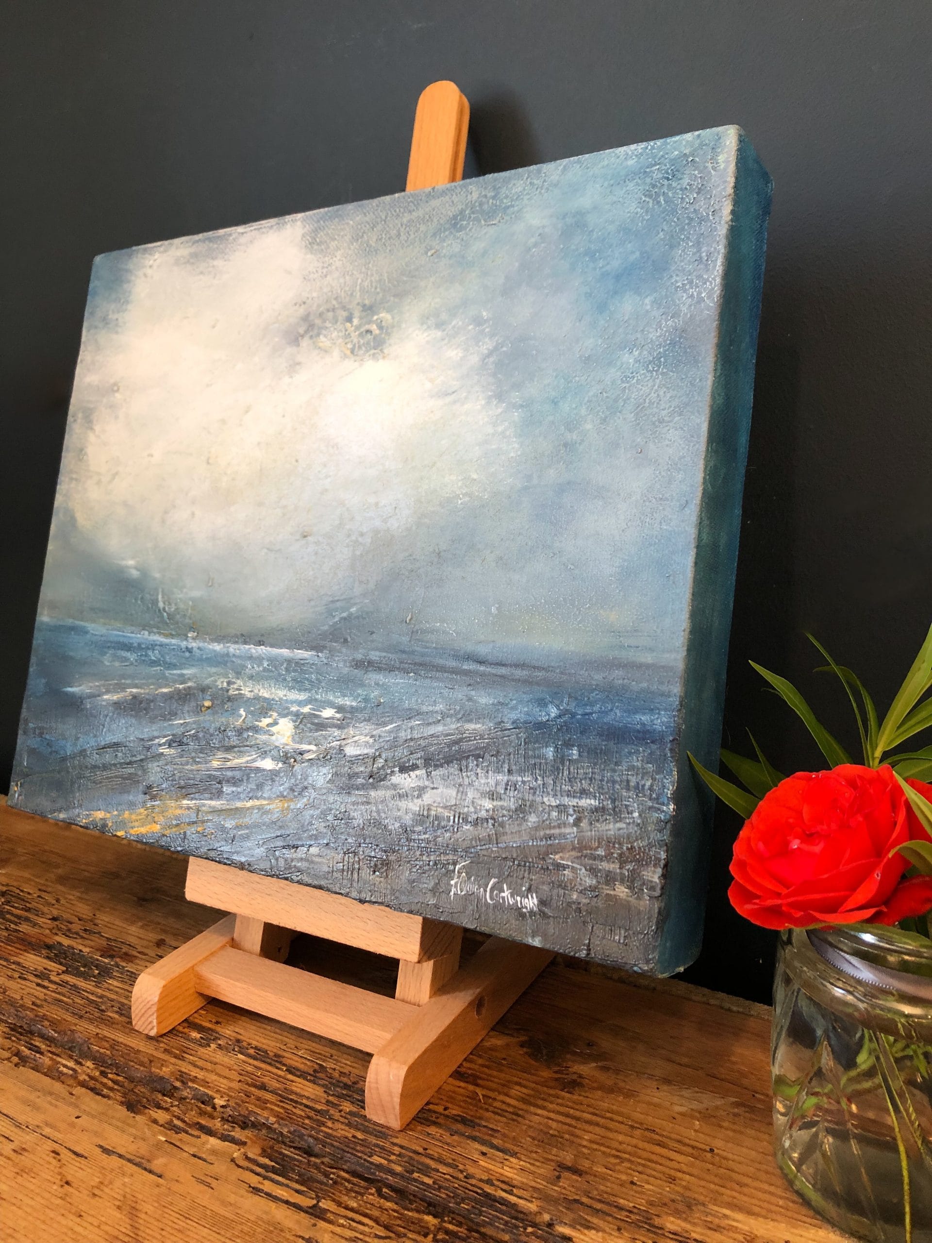 They say that small is beautiful? For this original oil on canvas by Fiona Quinn Cartwright, it particularly rings true. One of my absolute favourite little oils in the whole gallery, this stunning canvas (unframed) is full of vibrancy, the most gorgeous variation of deep blues, whites, sea greens and dark rocks. It is vibrant, full of movement and quite literally almost jumps off the walls at you. Would be a perfect present for any art lover – great size, great price and indeed a wonderful appeal across the board.