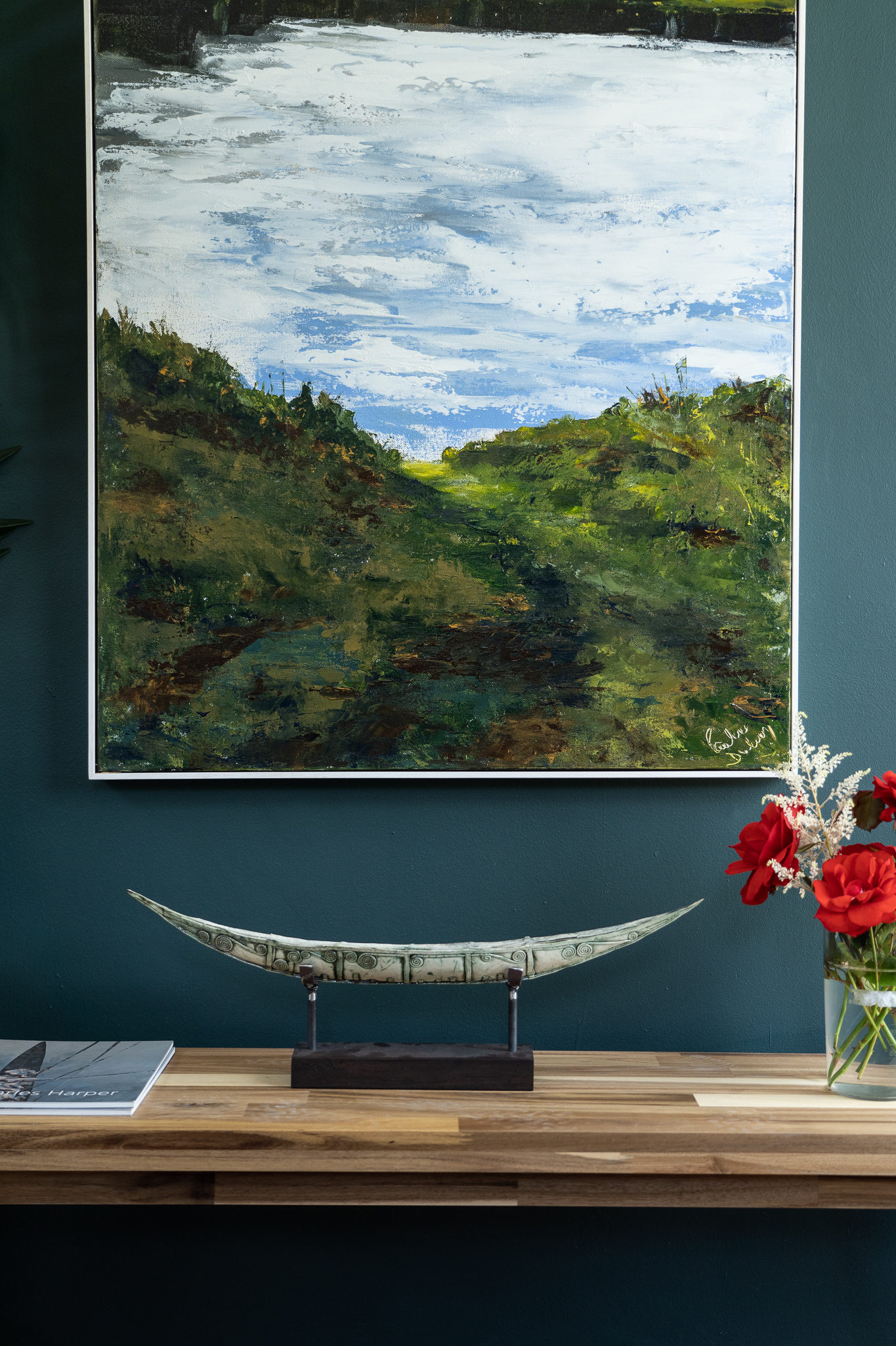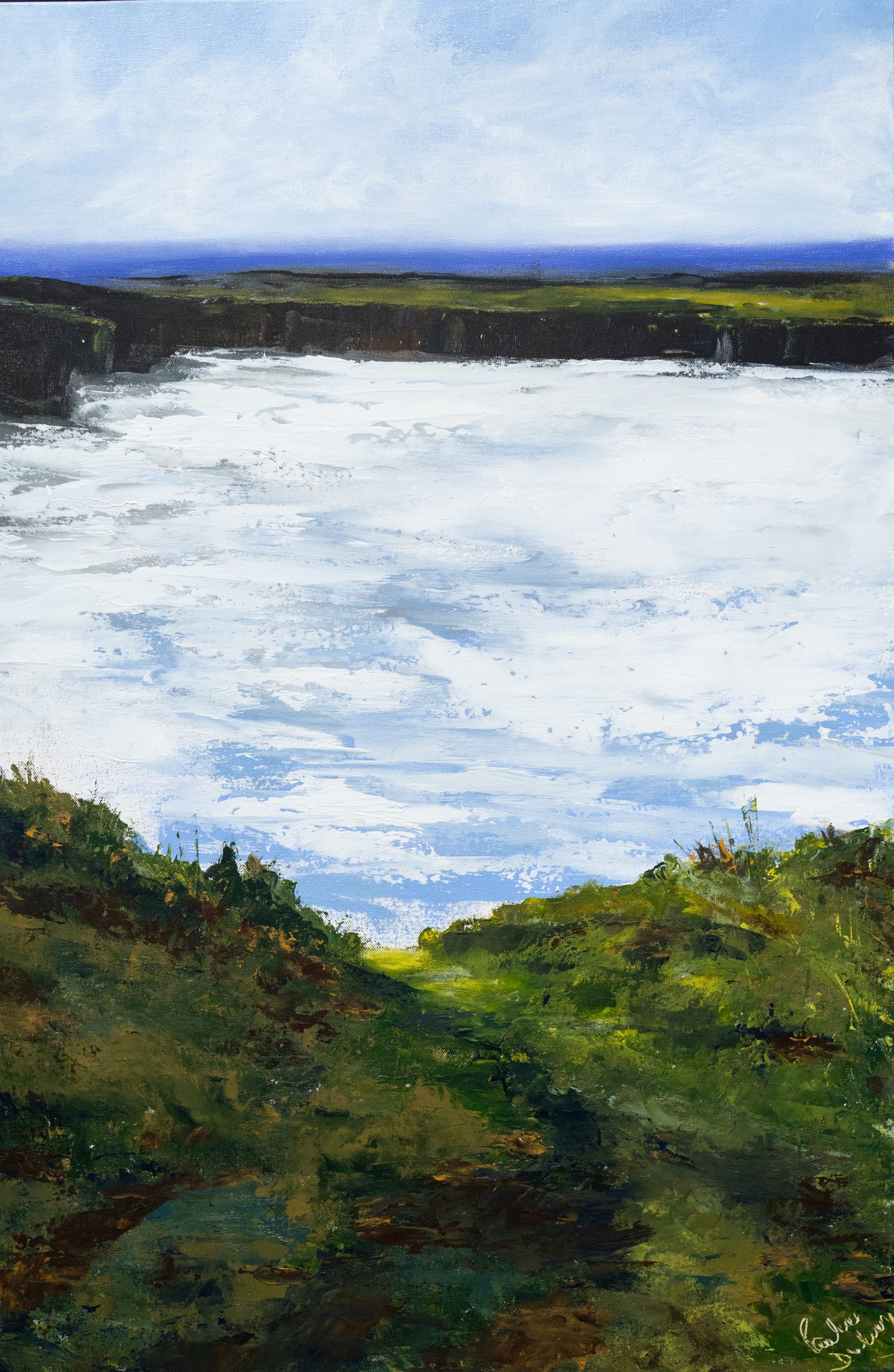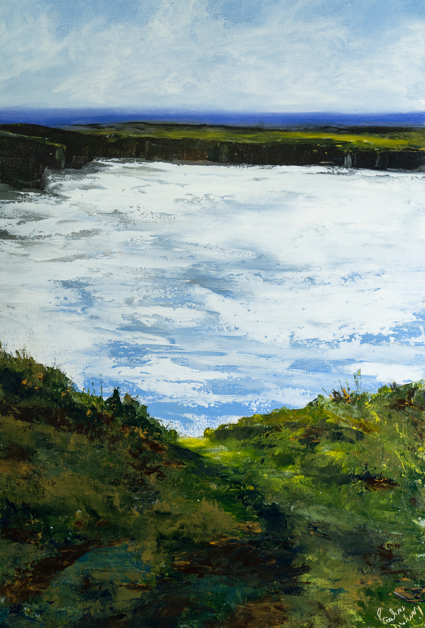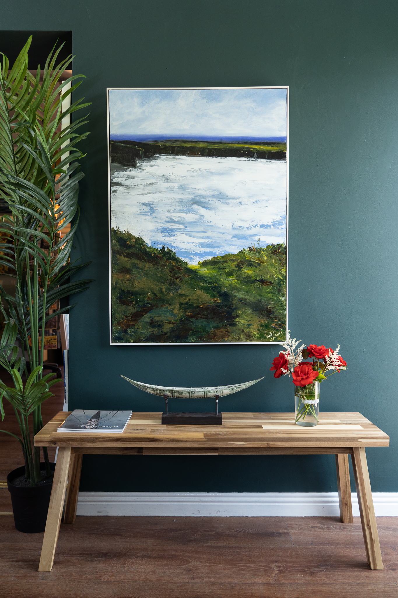 Artist Pauline Dunleavy is known for her love of nature and of exploring her beautiful locality around Co Clare. She loves to walk the countryside around her and visit the many, sometimes, lesser-known beauty spots for inspiration. With her own distinctive style and a gorgeous palette of colours that she loves to use, which always emanates feelings of warmth and familiarity, this painting, ‘Clare Coastline’ is a perfect Pauline Dunleavy piece of art to own. You can almost breathe in the gorgeous and crisp, fresh air of the Atlantic Ocean.