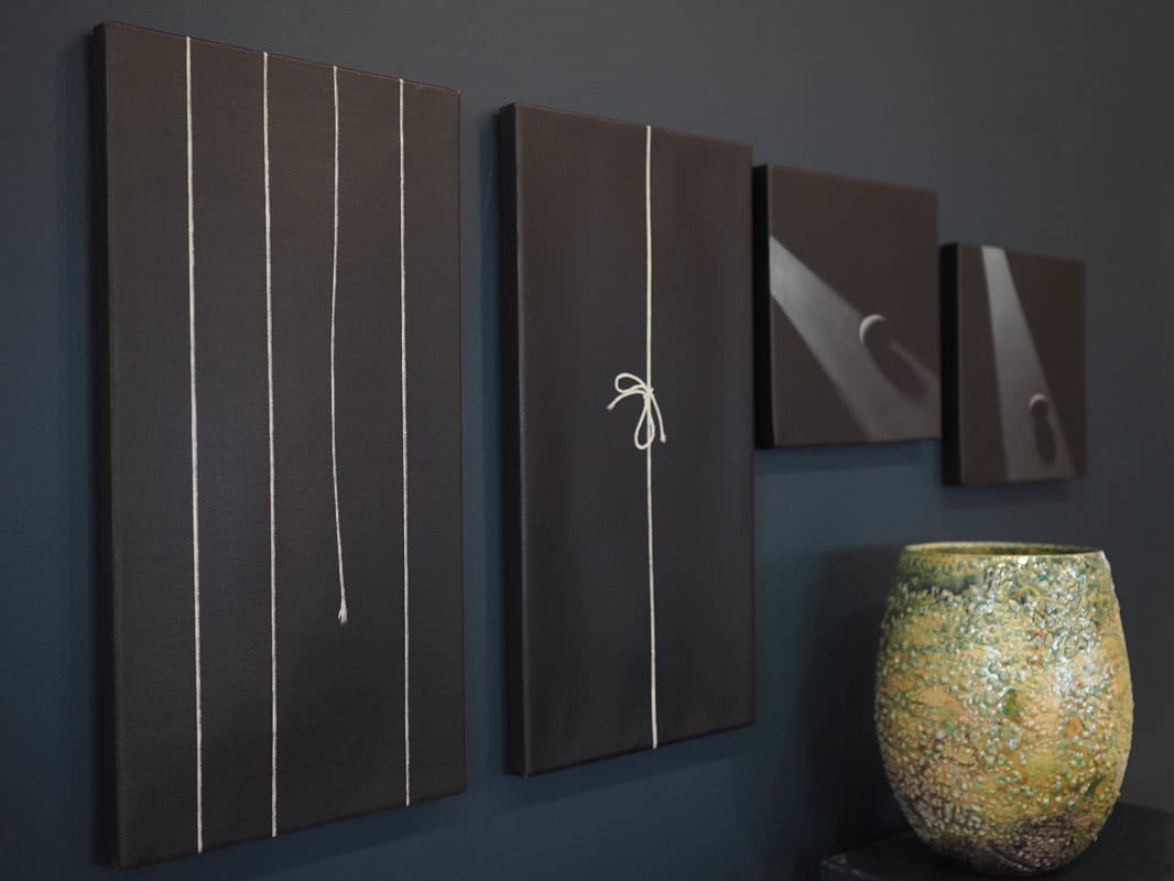 - Adam Pomeroy is a figurative artist. His work includes still-life, landscape, portrait, figure painting and sculpture. A series of stunning biblical paintings, which Adam worked tirelessly on over the course of a few years, currently hang in various Cathedrals around Ireland. Adam’s work is both investable and highly collectable. In Adam’s signature style of items emerging from darkness, this gorgeous depiction of string, painted in order to represent the severance one feels during times of loss and grief after losing a loved one, is a perfect size and price point with which to start your Adam Pomeroy collection today. Ideally this painting would be purchased alongside its sister piece, which depicts the knot before being pulled asunder. Both paintings pictured here.