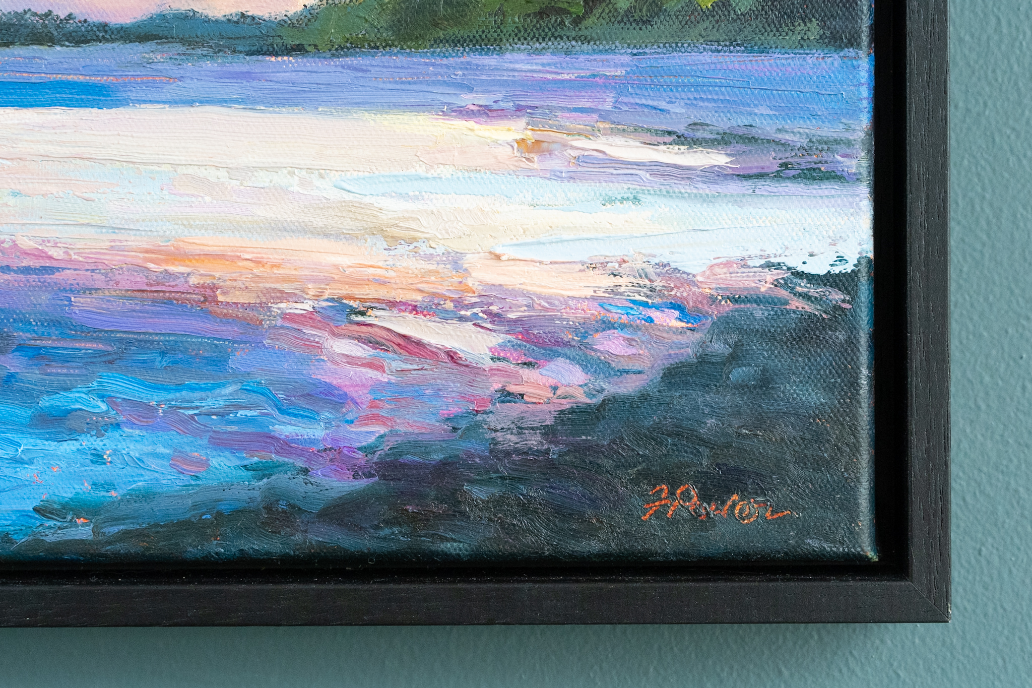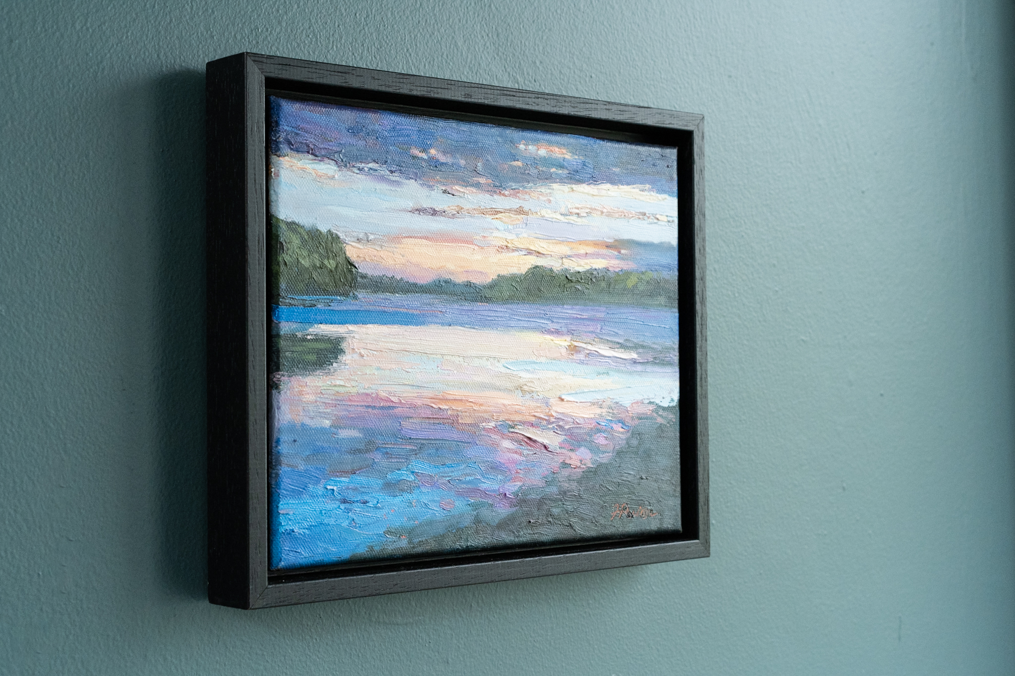 Impressionism of this quality is what the magic of art is all about. Those delicate, brush strokes, the true knowledge and expert handling of colour, the obvious dabs and strokes, which up close are blocks of colour, but from a distance fall into place as the most beautiful, evocative oil painting of the clouds and the sky during an evening sunset – its quite exciting. This small but exquisite painting would make an exciting and beautiful addition to any home.