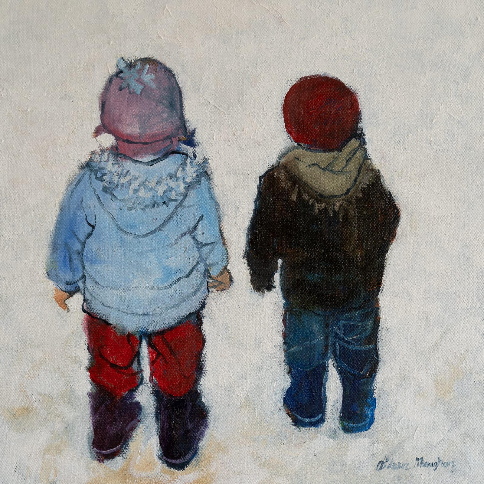 Oil on canvas – framed artwork – Aideen Monaghan – Moments in Time – Endless Wonder – Siblings – Delicate Oil Painting –