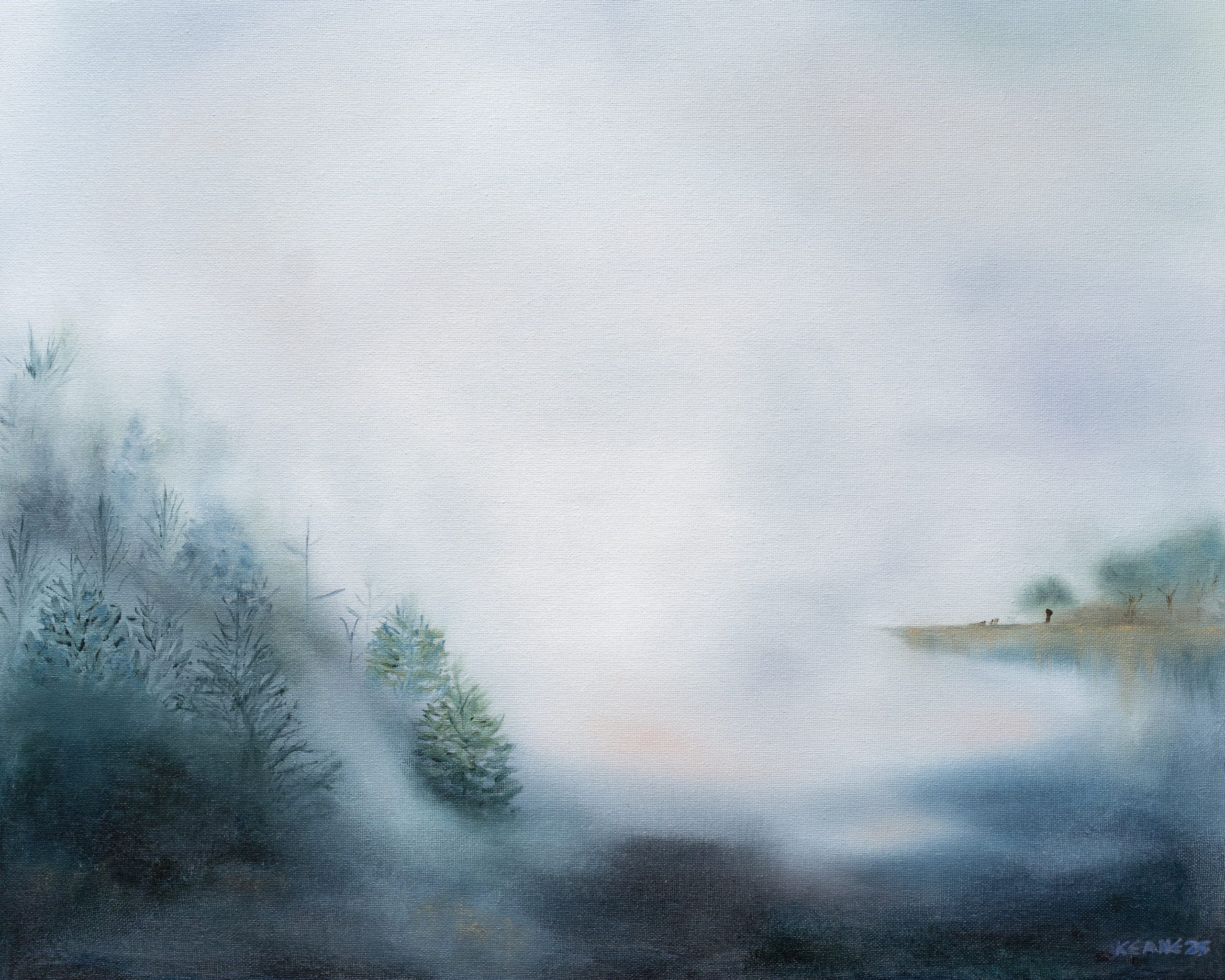 A Silent Morning – What a beautiful, quiet and serene landscape, Mary Rose has captured here in oils; beautiful trees emerging gently and peacefully from the foggy, dewy mist. You can almost inhale the freshness in the air.